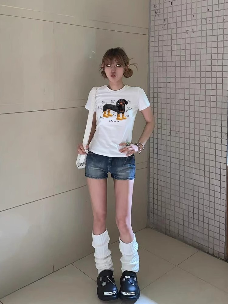 ![[1*1 Pure Cotton Regular Style] Printed Straight Shoulder Regular Short Sleeve High Elasticity New Summer Slim Fit](images/zmwp7290_01.jpg)