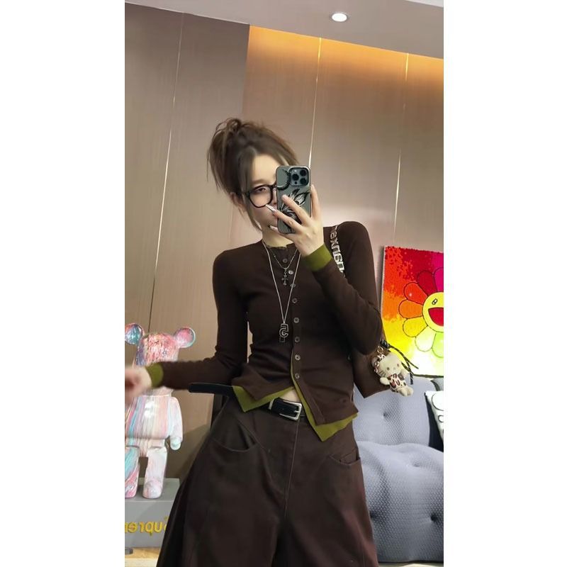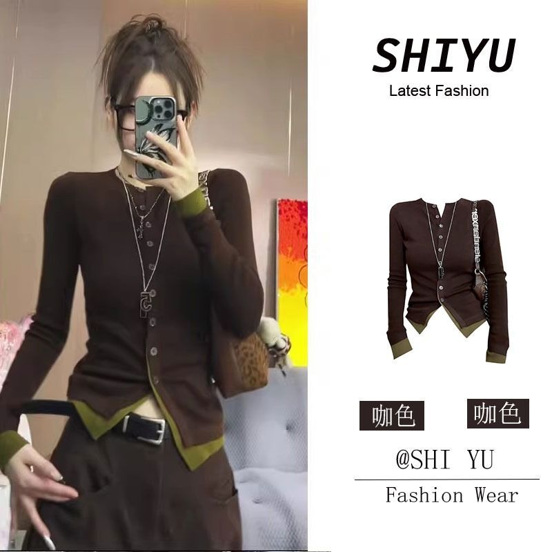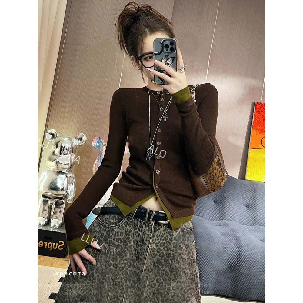 ![MR [Shipped] Early Autumn Outfit: Faux Two-Piece Knit Cardigan for Women, Spring and Autumn Chic](images/mrwg/mrwg1686e_02.jpg)