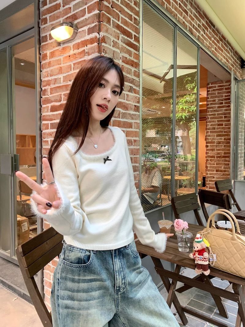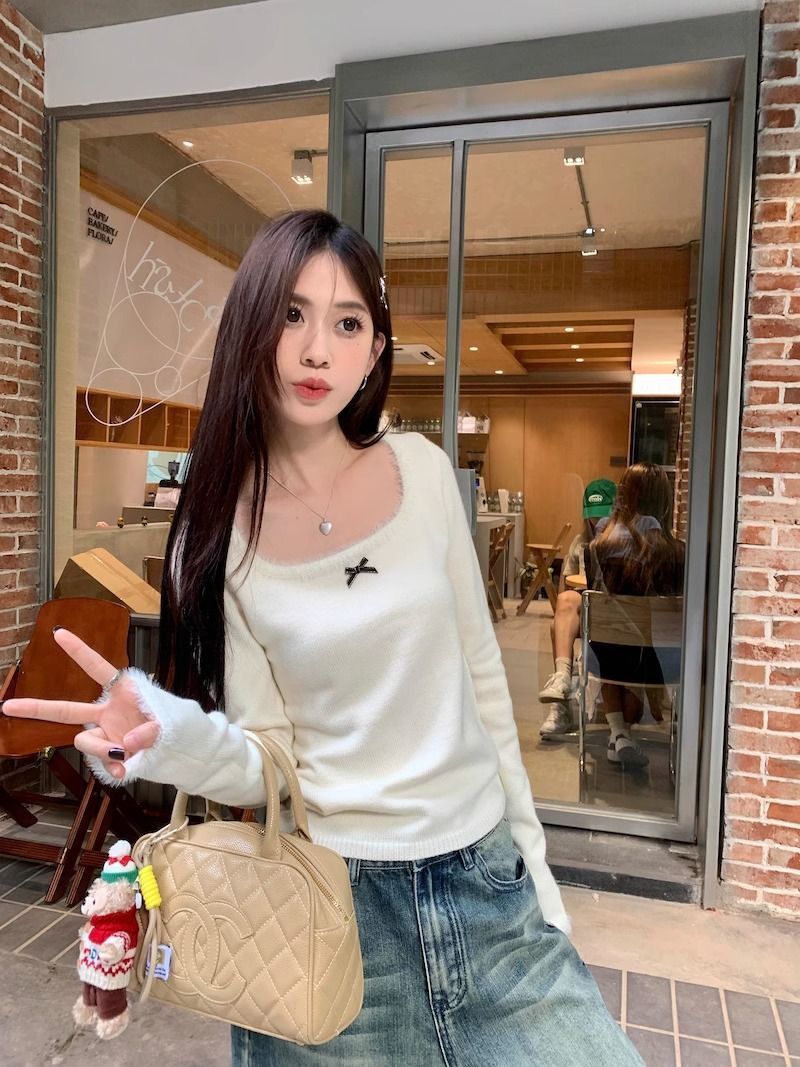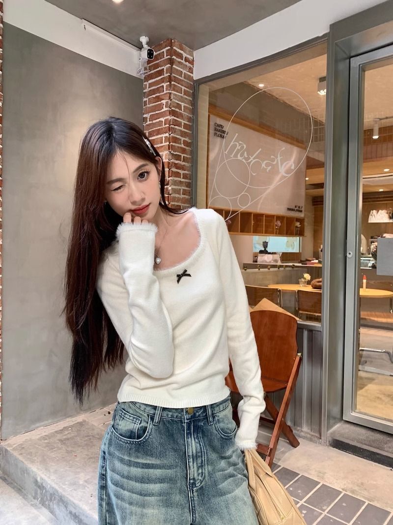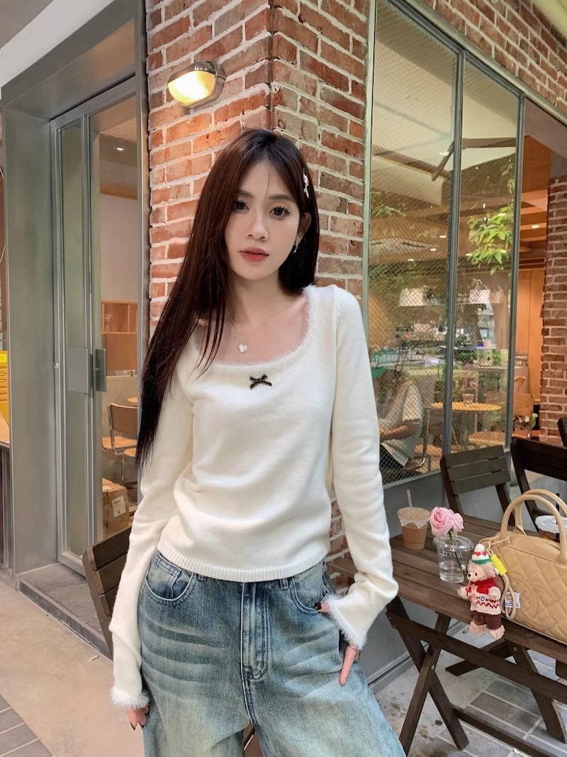 ![MR [Original Recipe] Niche Bow-Tie Base Layer Top for Women, Autumn/Winter, White, Low-Neck, Slim Fit, Short Style](images/mrwg/mrwg738e_04.jpg)