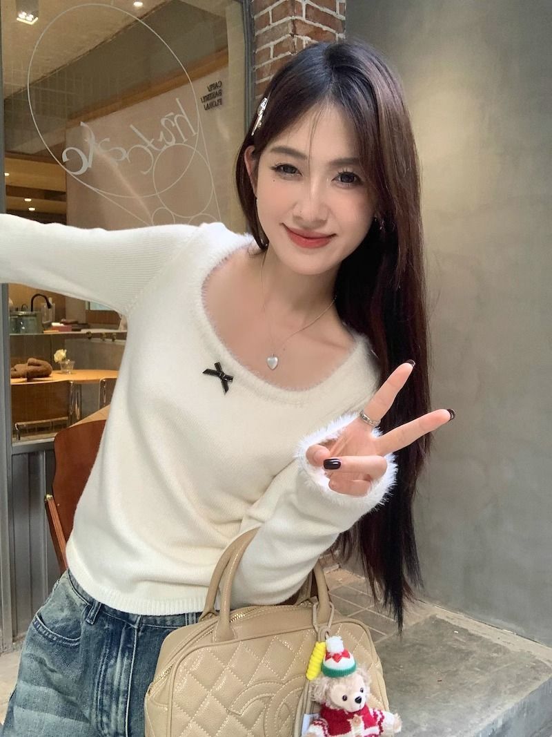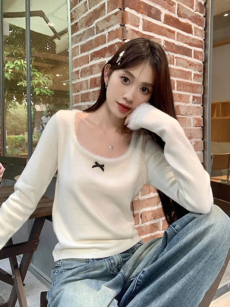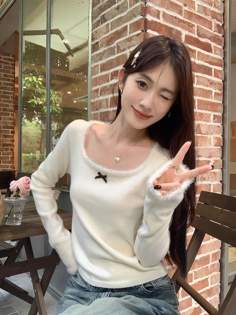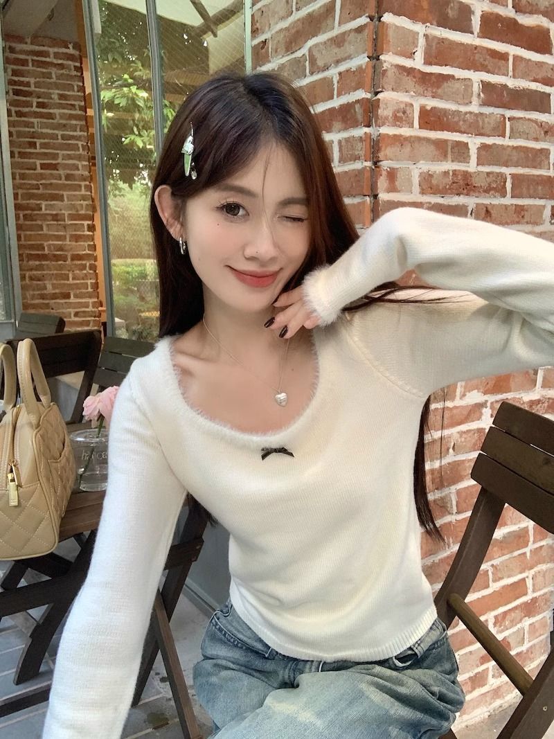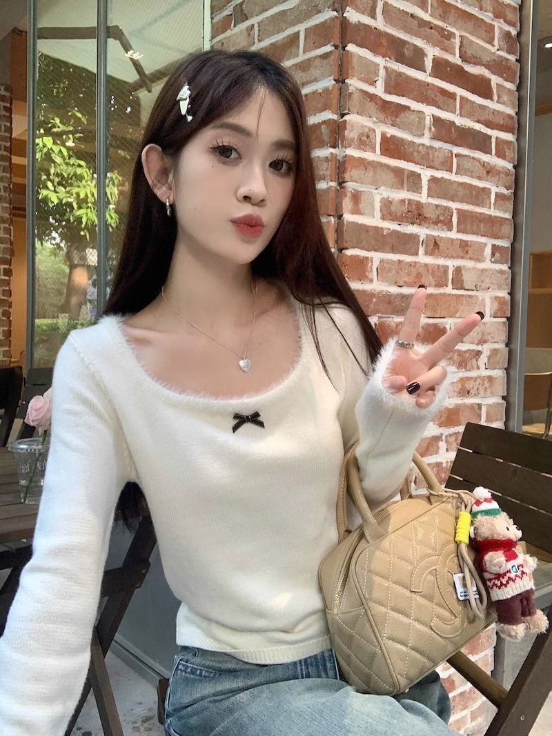 ![MR [Original Recipe] Niche Bow-Tie Base Layer Top for Women, Autumn/Winter, White, Low-Neck, Slim Fit, Short Style](images/mrwg/mrwg738e_03.jpg)