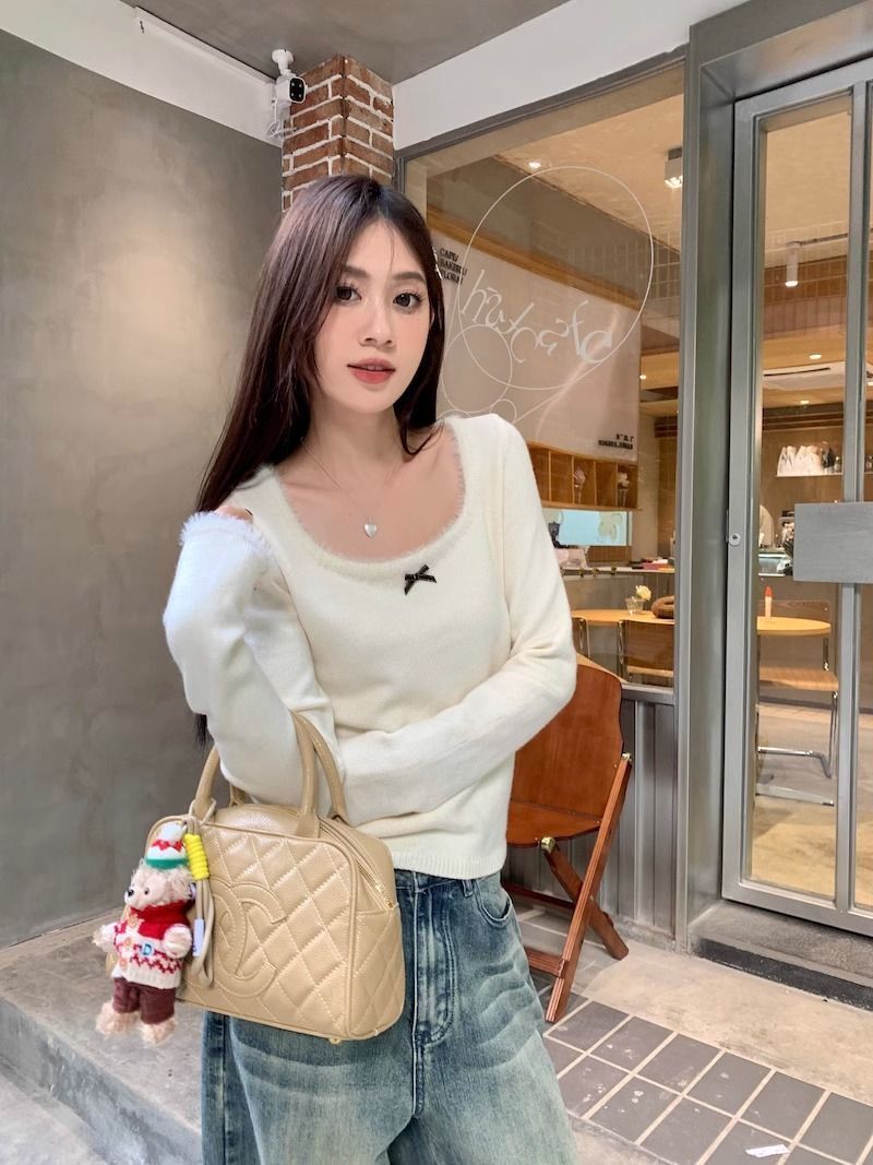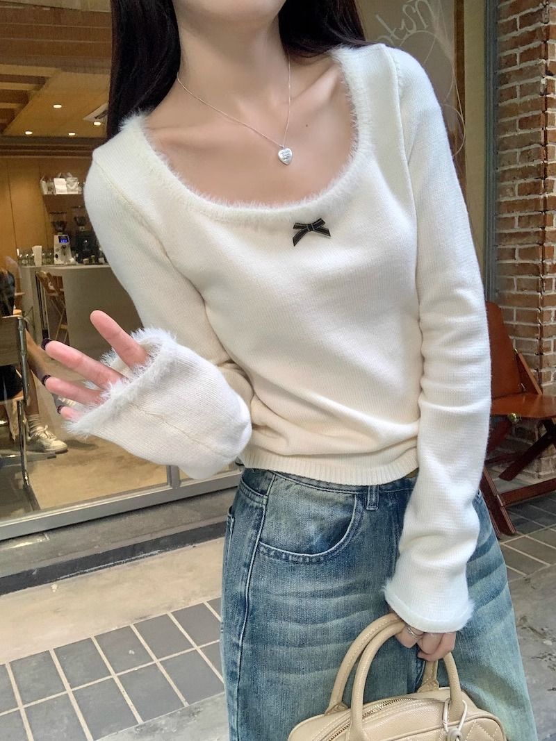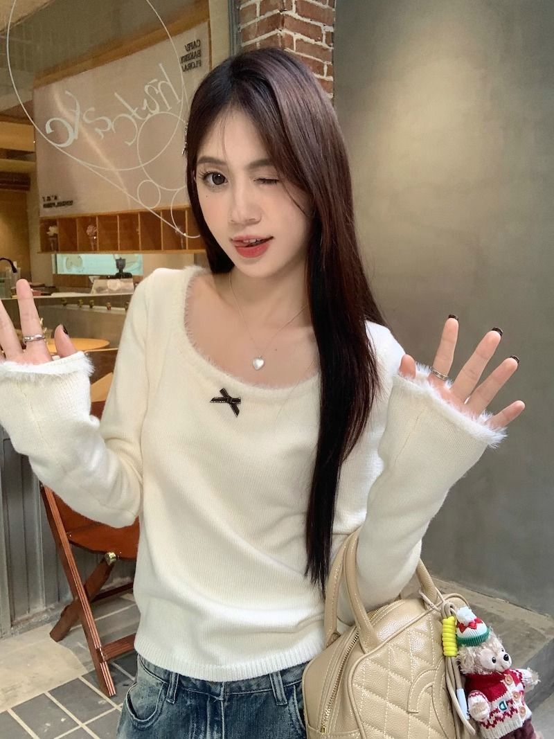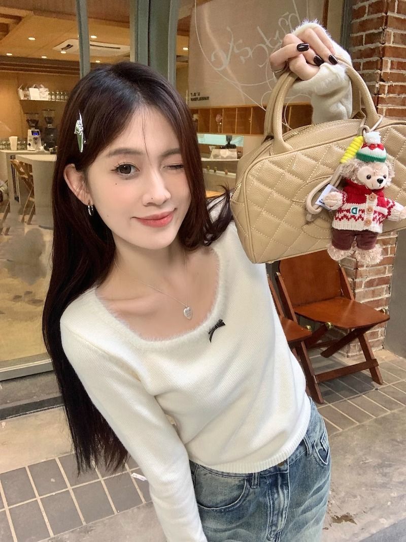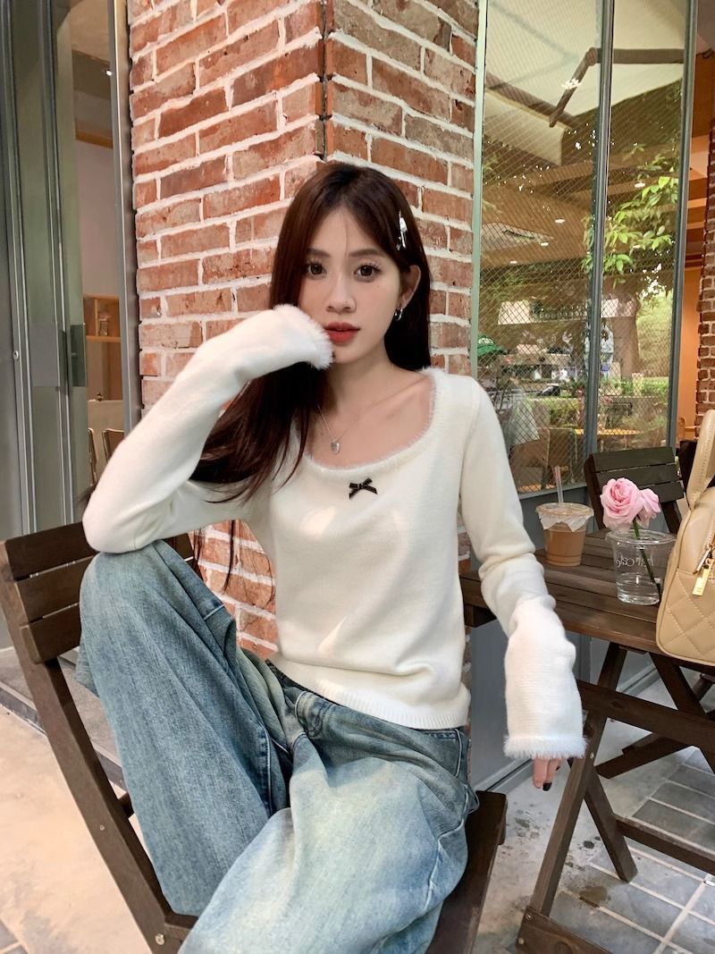 ![MR [Original Recipe] Niche Bow-Tie Base Layer Top for Women, Autumn/Winter, White, Low-Neck, Slim Fit, Short Style](images/mrwg/mrwg738e_03.jpg)