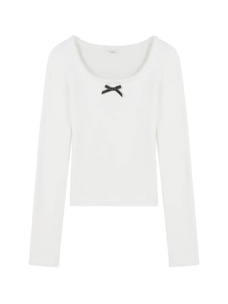 ![MR [Original Recipe] Niche Bow-Tie Base Layer Top for Women, Autumn/Winter, White, Low-Neck, Slim Fit, Short Style](images/mrwg/mrwg738e_02.jpg)