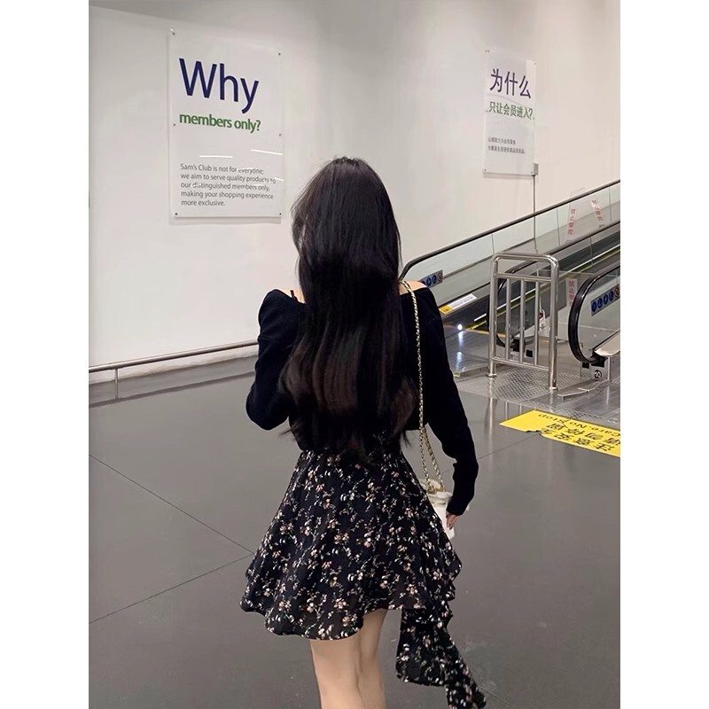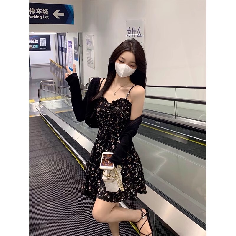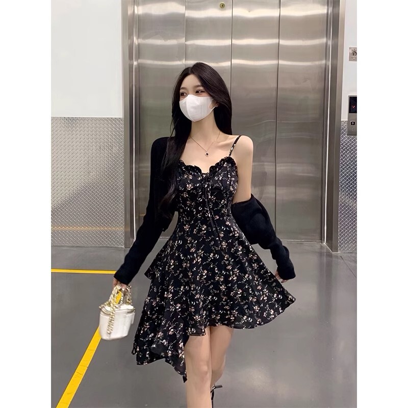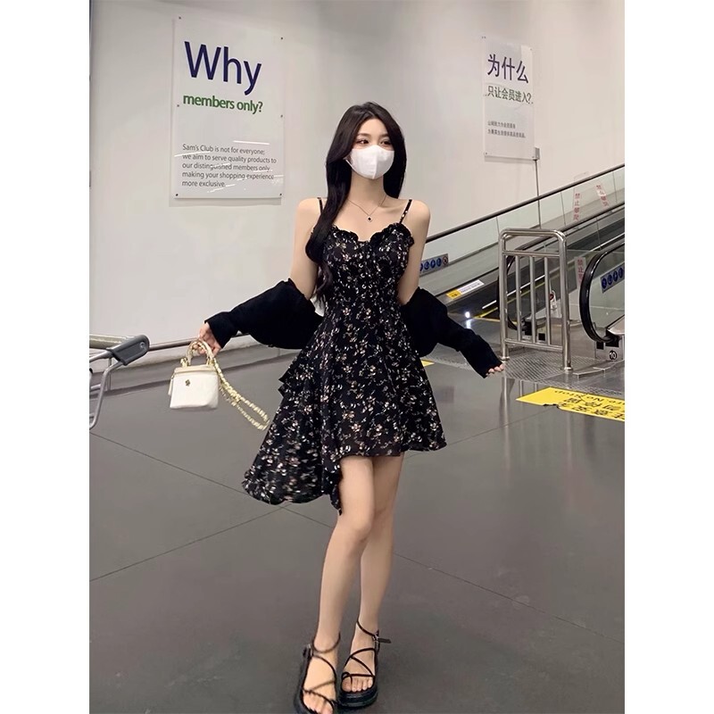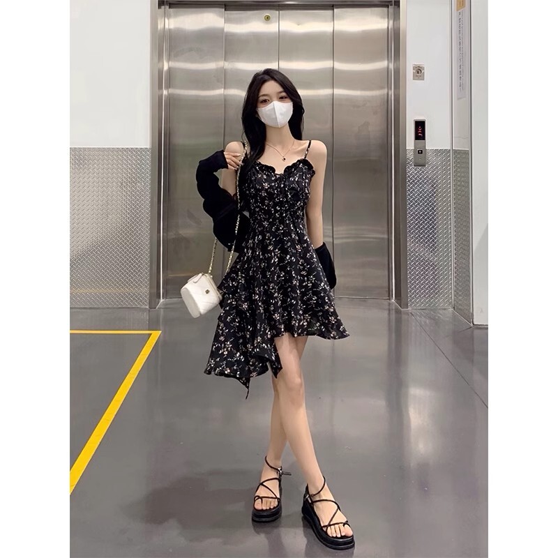 • Plus-size French-style sexy slip dress, summer irregular short skirt, unique design floral dress for women.