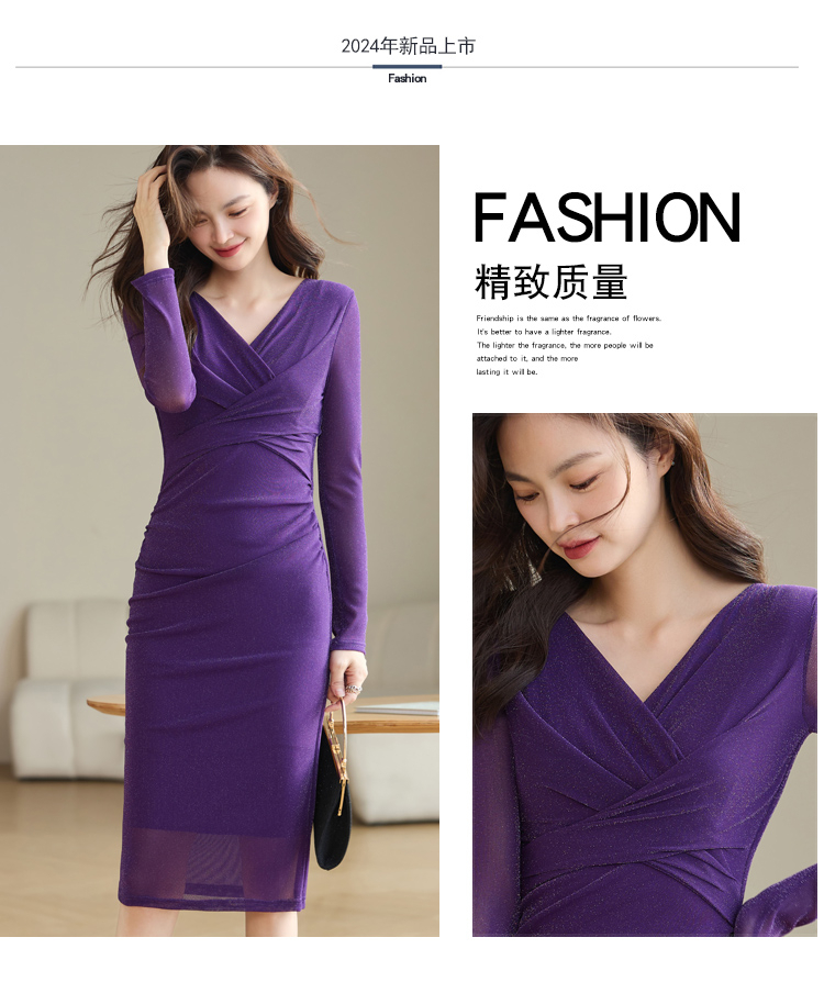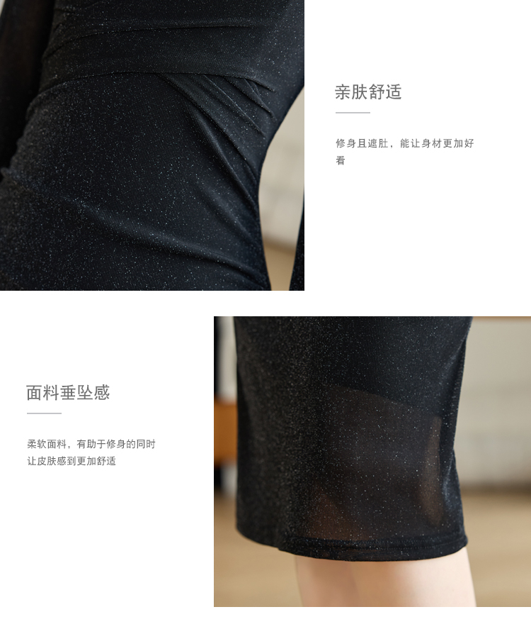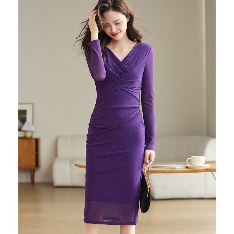 • Bodycon maxi dress, knee-length, fitted waist, slimming, women's spring/autumn 2025 new style, long-sleeved mesh.
