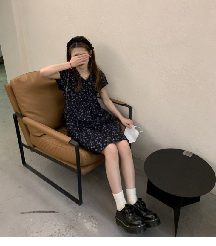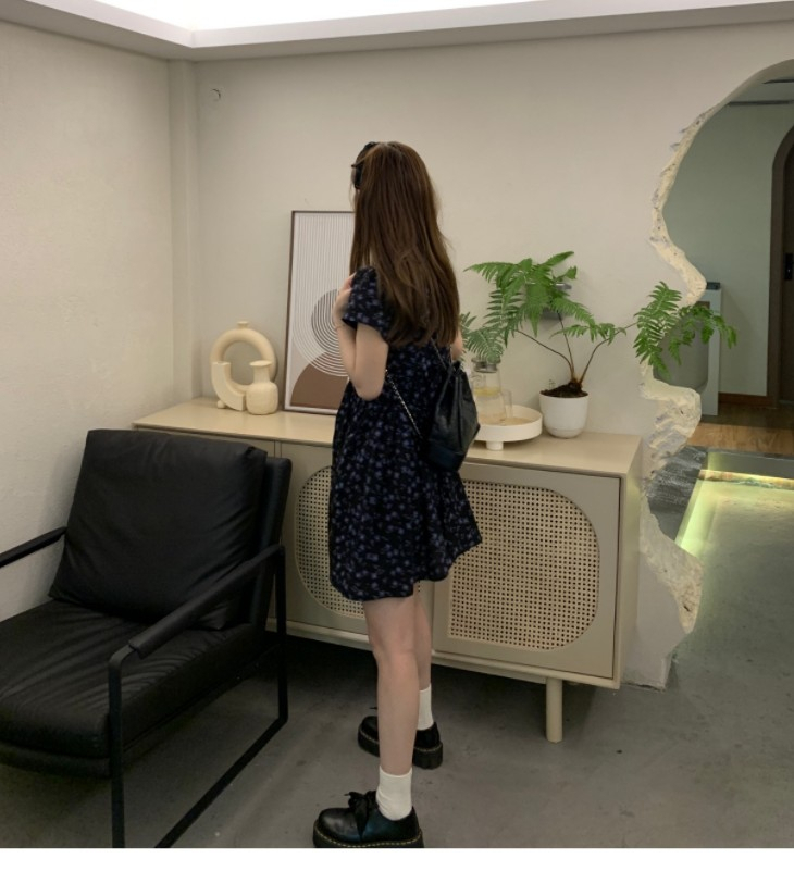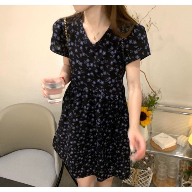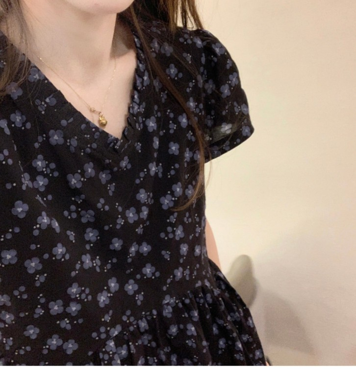 • Black petite dress, 2024 new style, summer floral tea dress, French style, lisianthus, slim fit, Mori girl look.