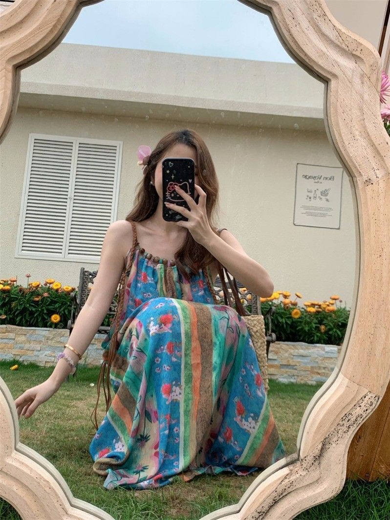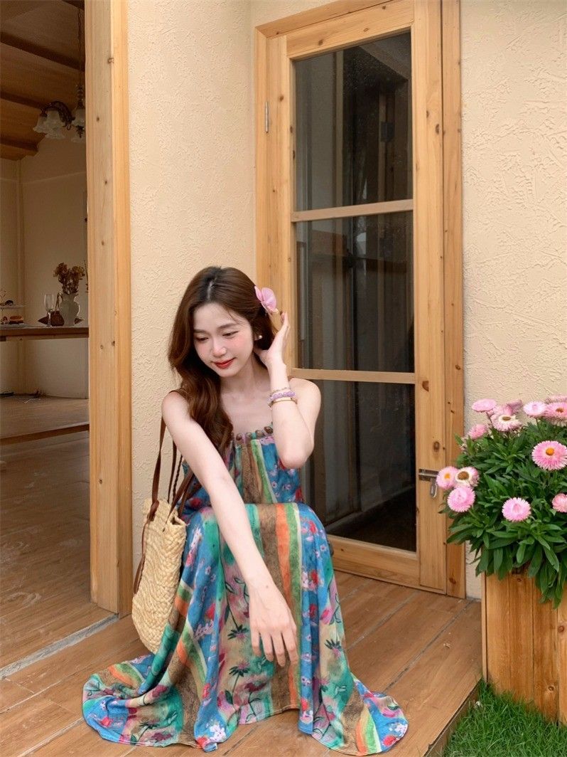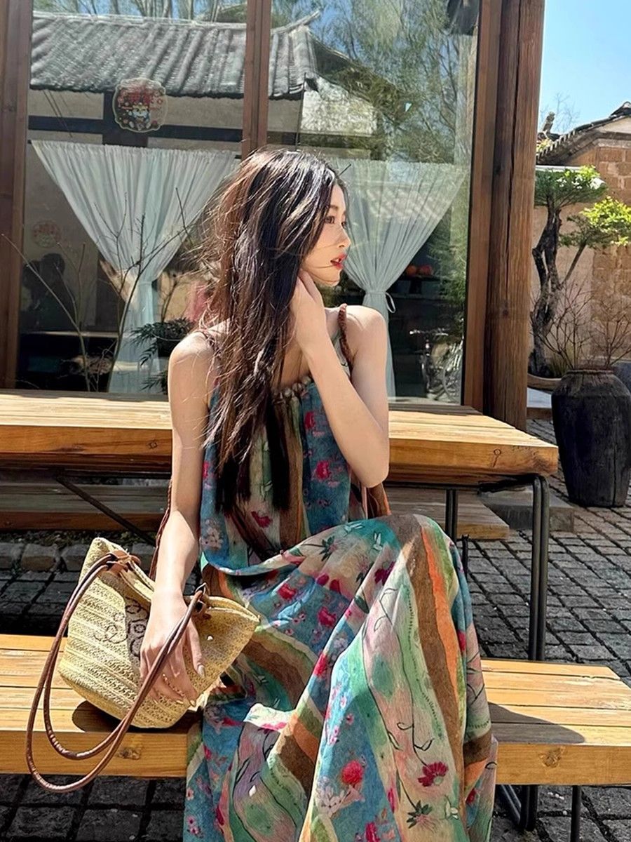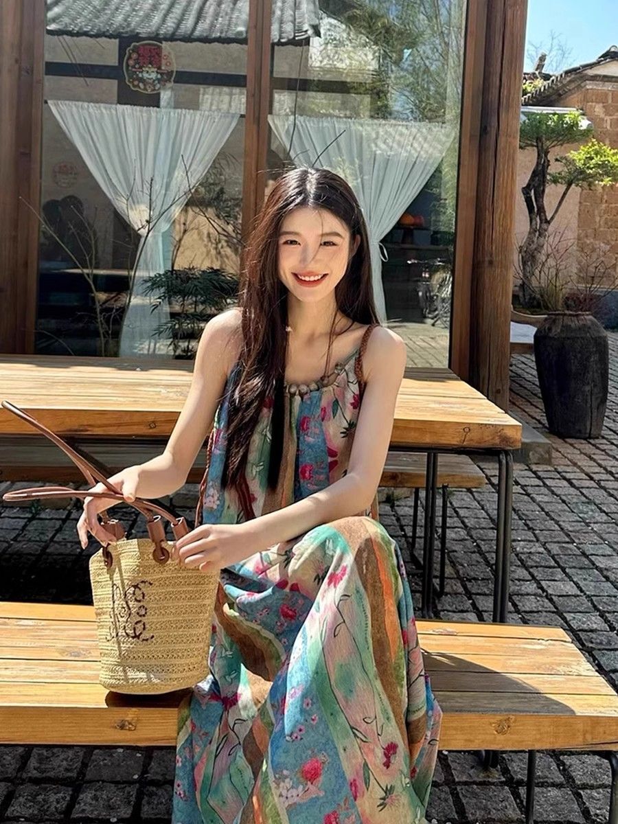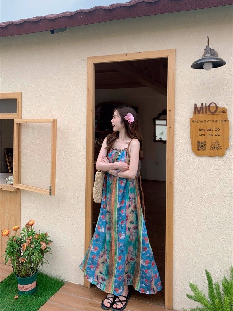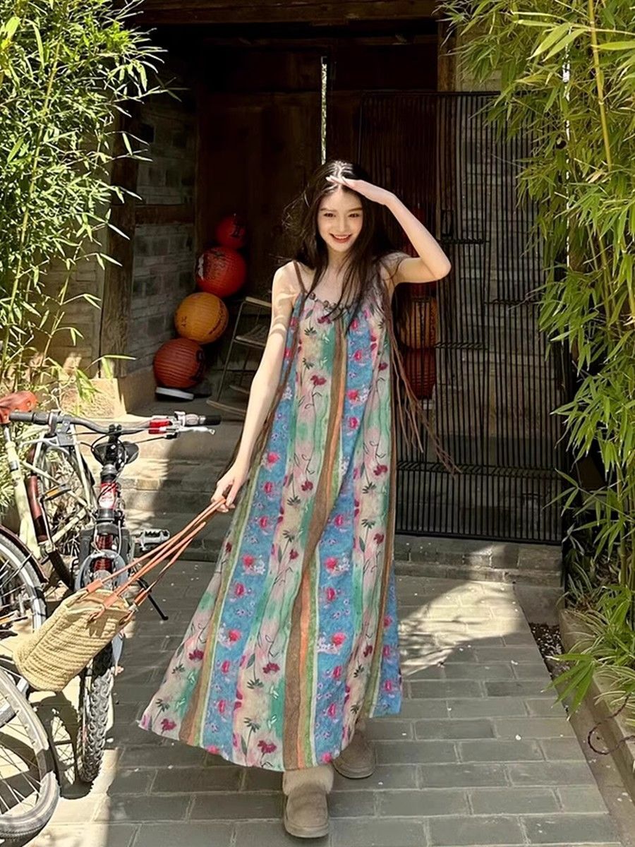 • 2025 Summer New Retro Floral Sleeveless Long Dress for Petite Figures