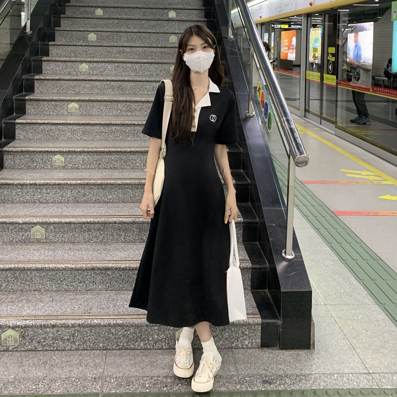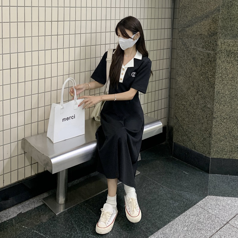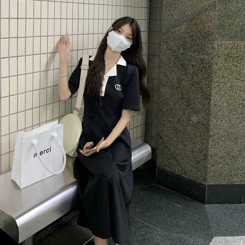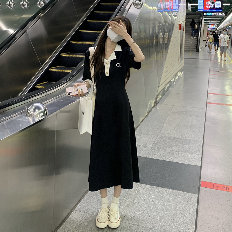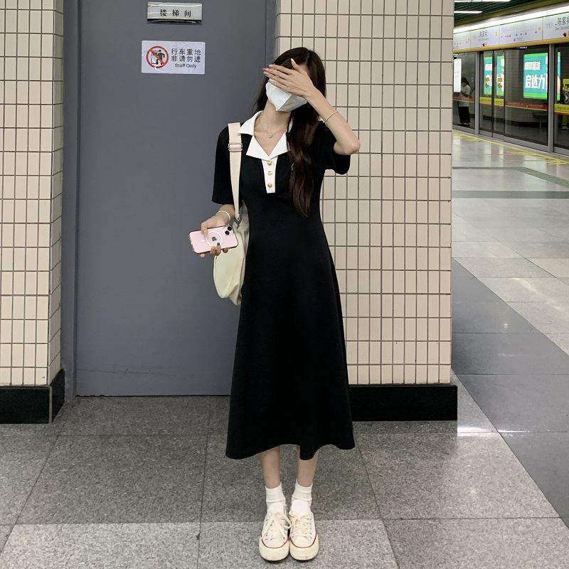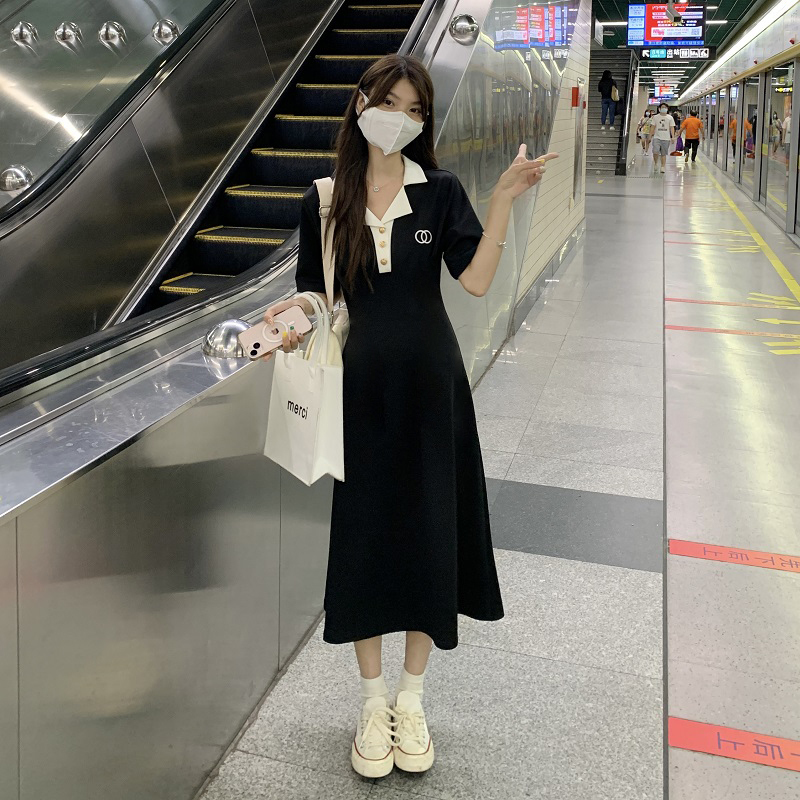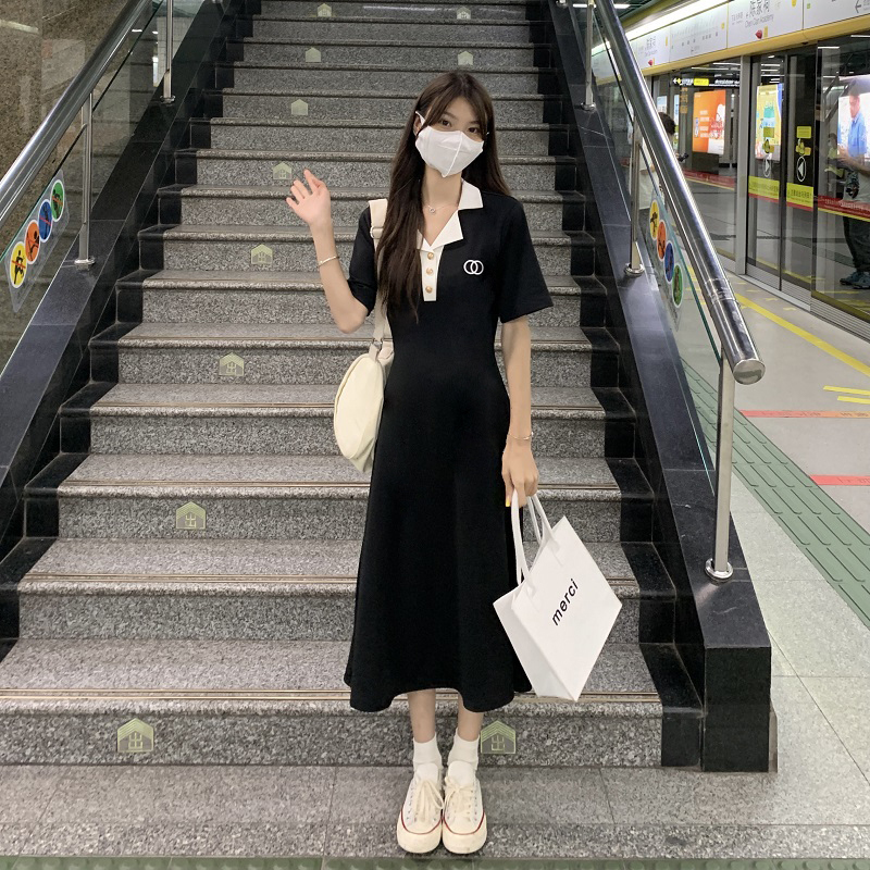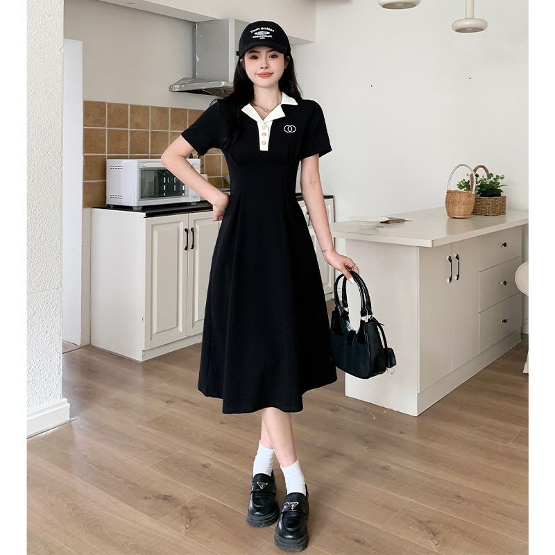 #1067 Official Image Price [80-200 lbs] French Slimming Polo Collar Dress