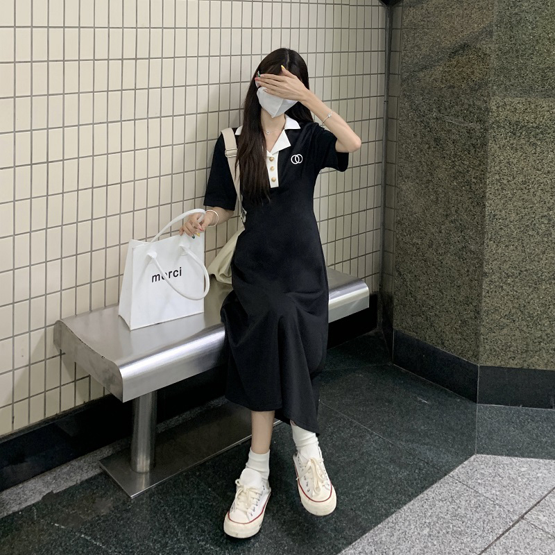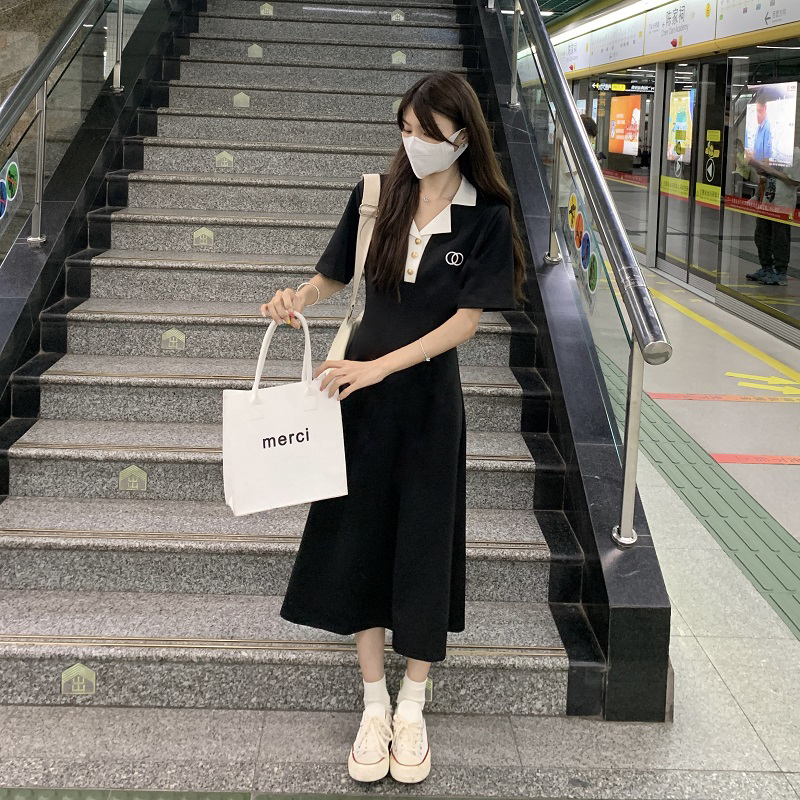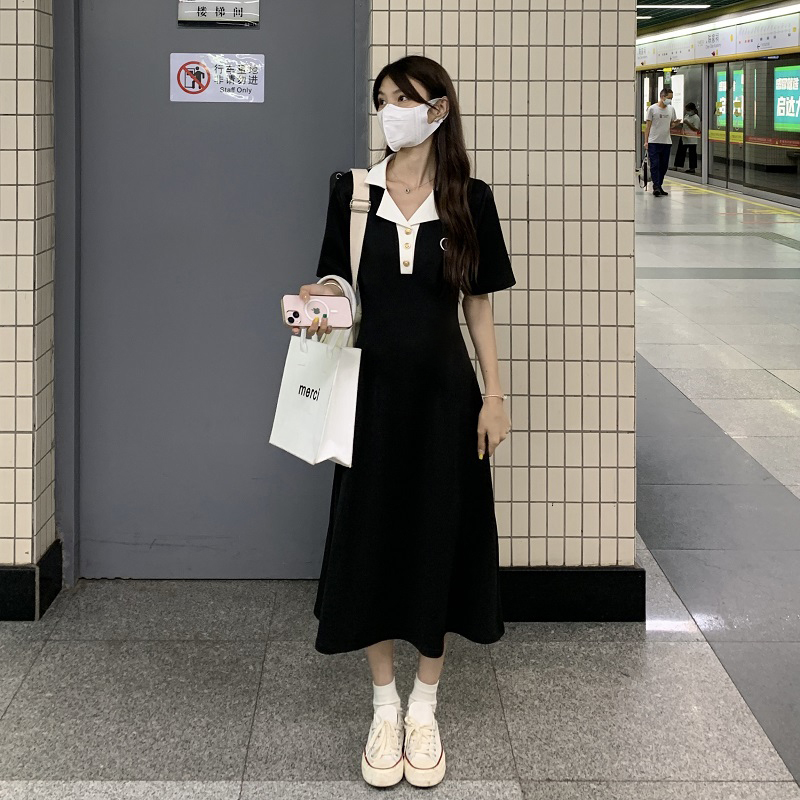 • #1067 Official Image Price [80-200 lbs] French Slimming Polo Collar Dress