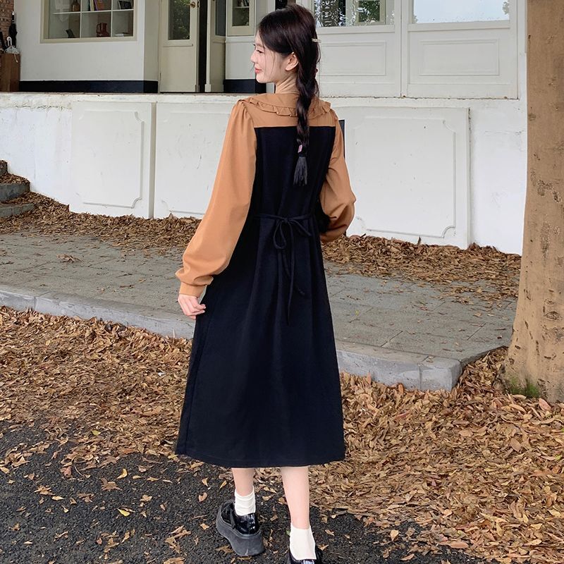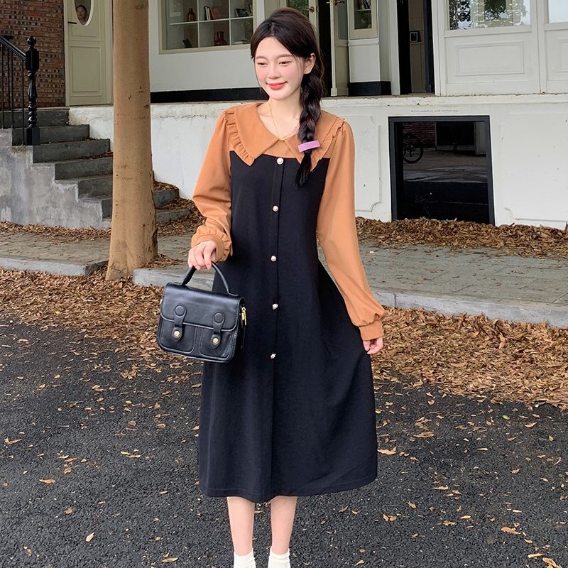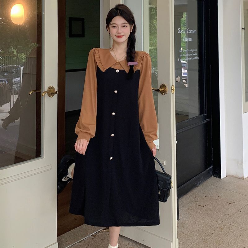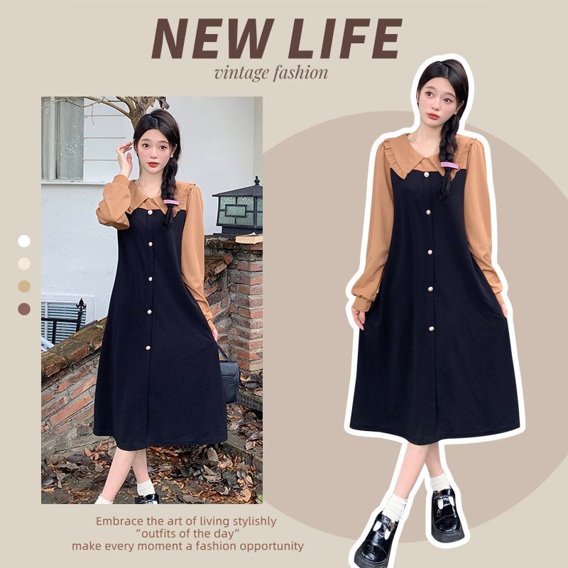 • #299 Real Shot Price Versatile Dress with Stylish Color Blocking Peter Pan Collar Plus Size Slimming Dress