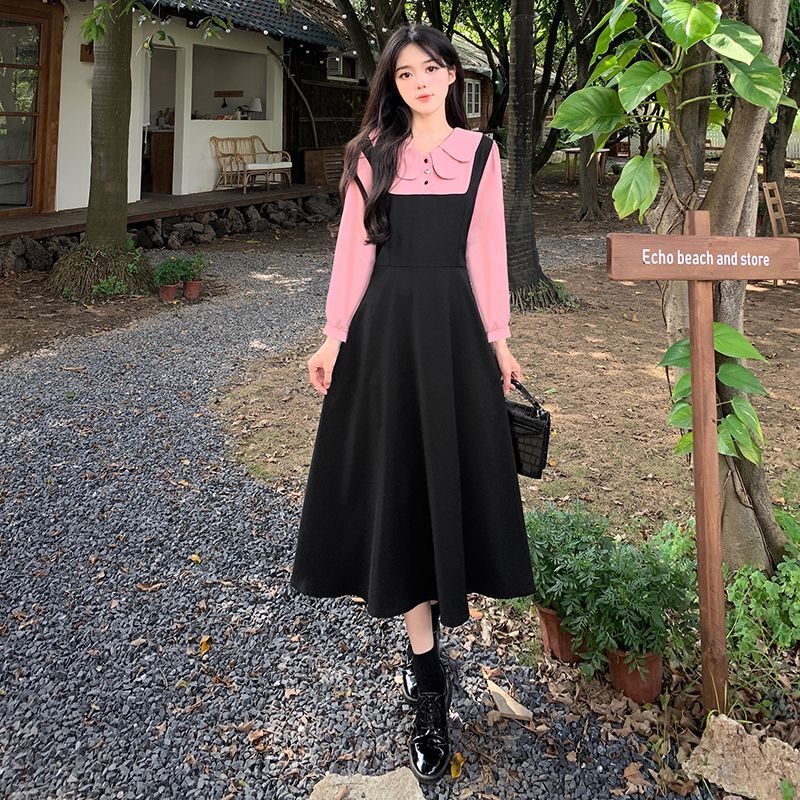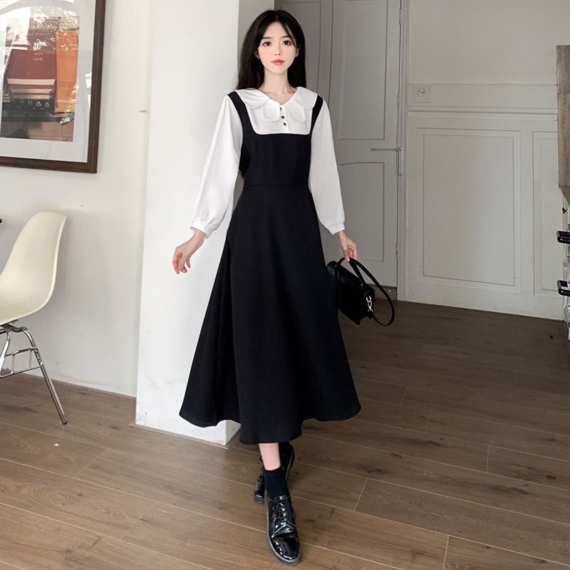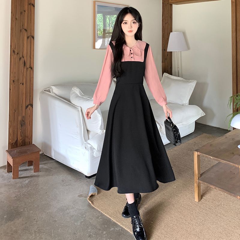 • #337 Real Shot & Price: French Autumn/Winter Design Style Faux Two-Piece Peter Pan Collar Dress for Women, Slimming and Waist-Defining