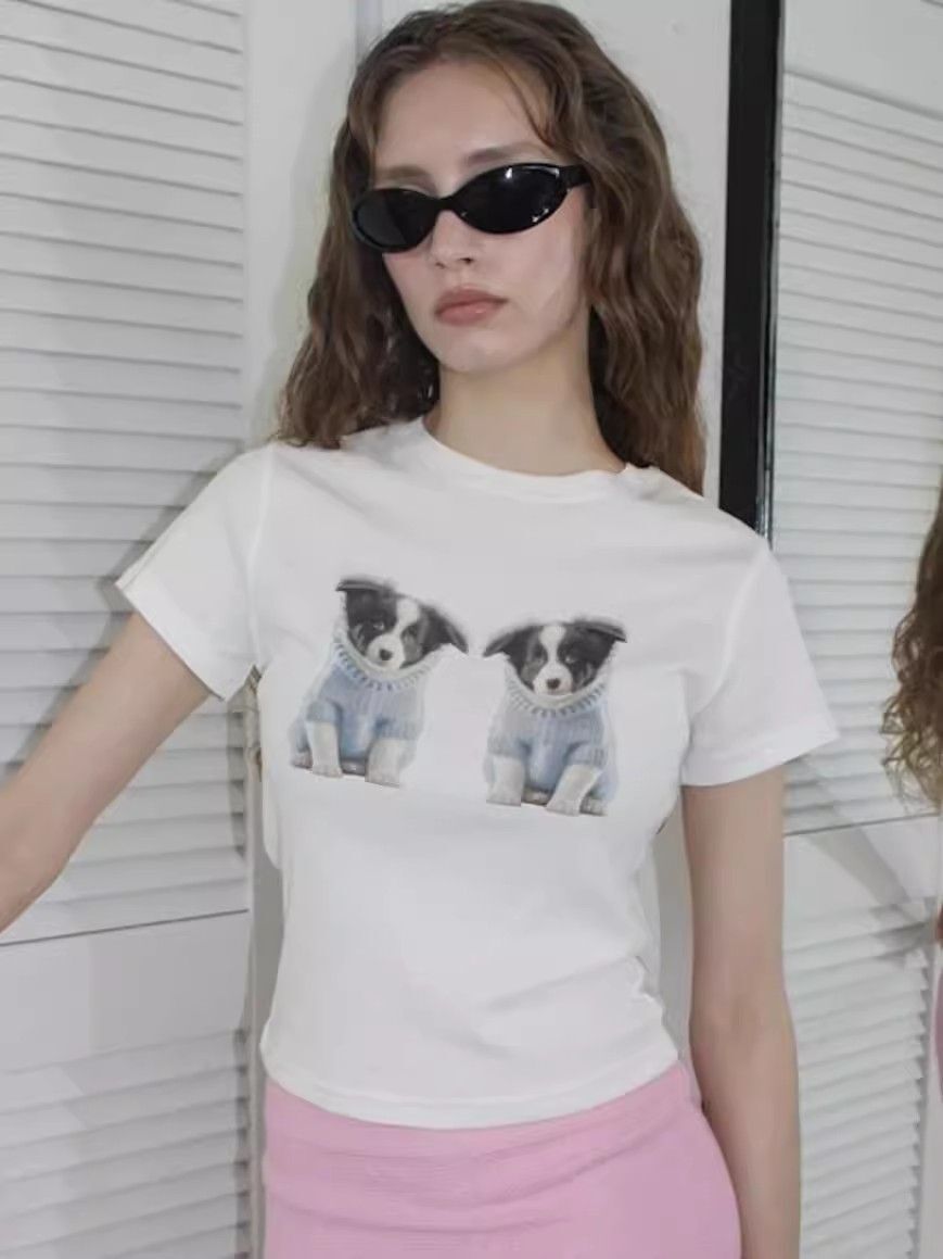 ![[1*1 Pure Cotton Regular Style] Printed Straight Shoulder Regular Short Sleeve High Elasticity New Summer Slim Fit](images/zmwp7153_01.jpg)