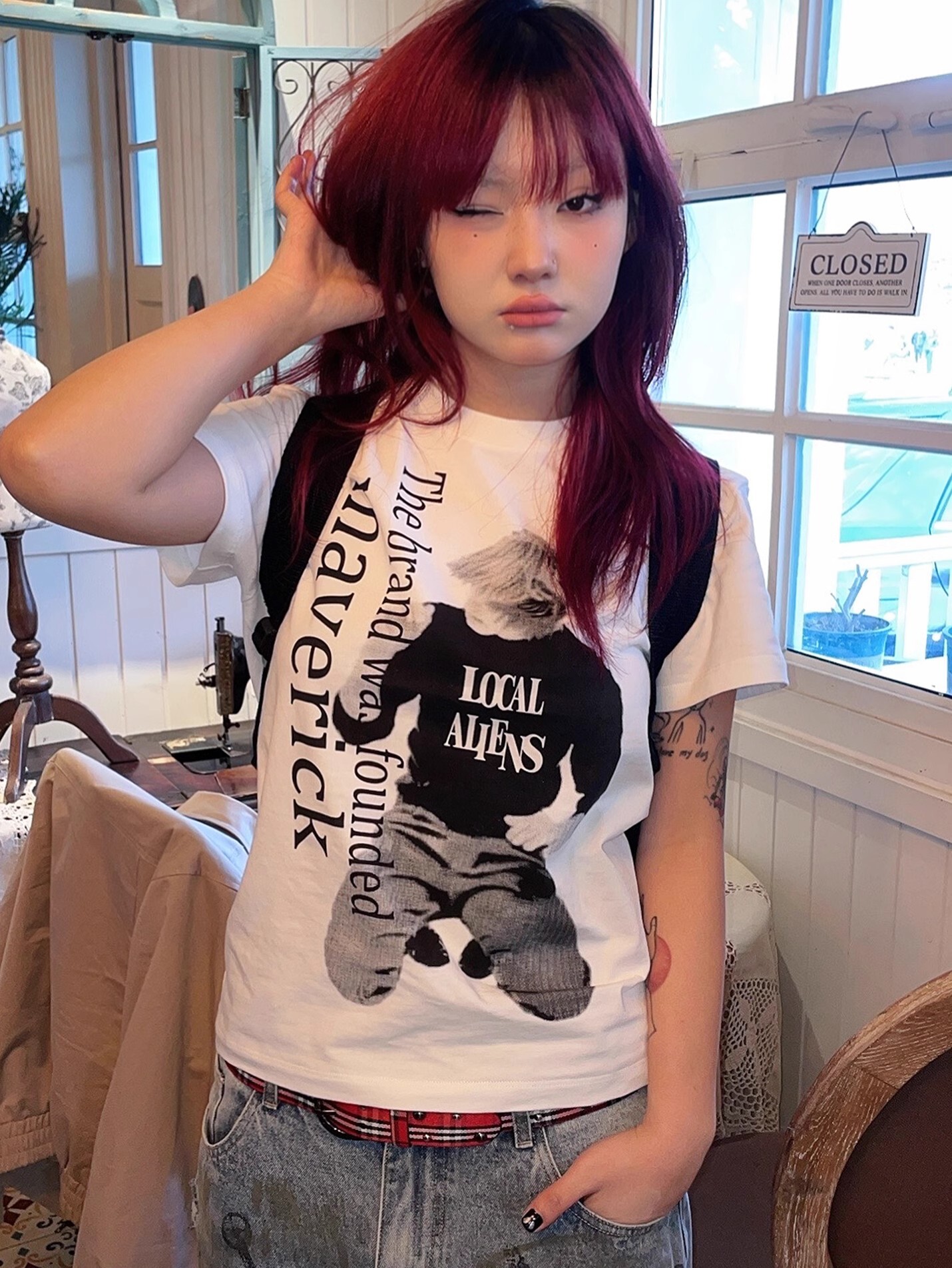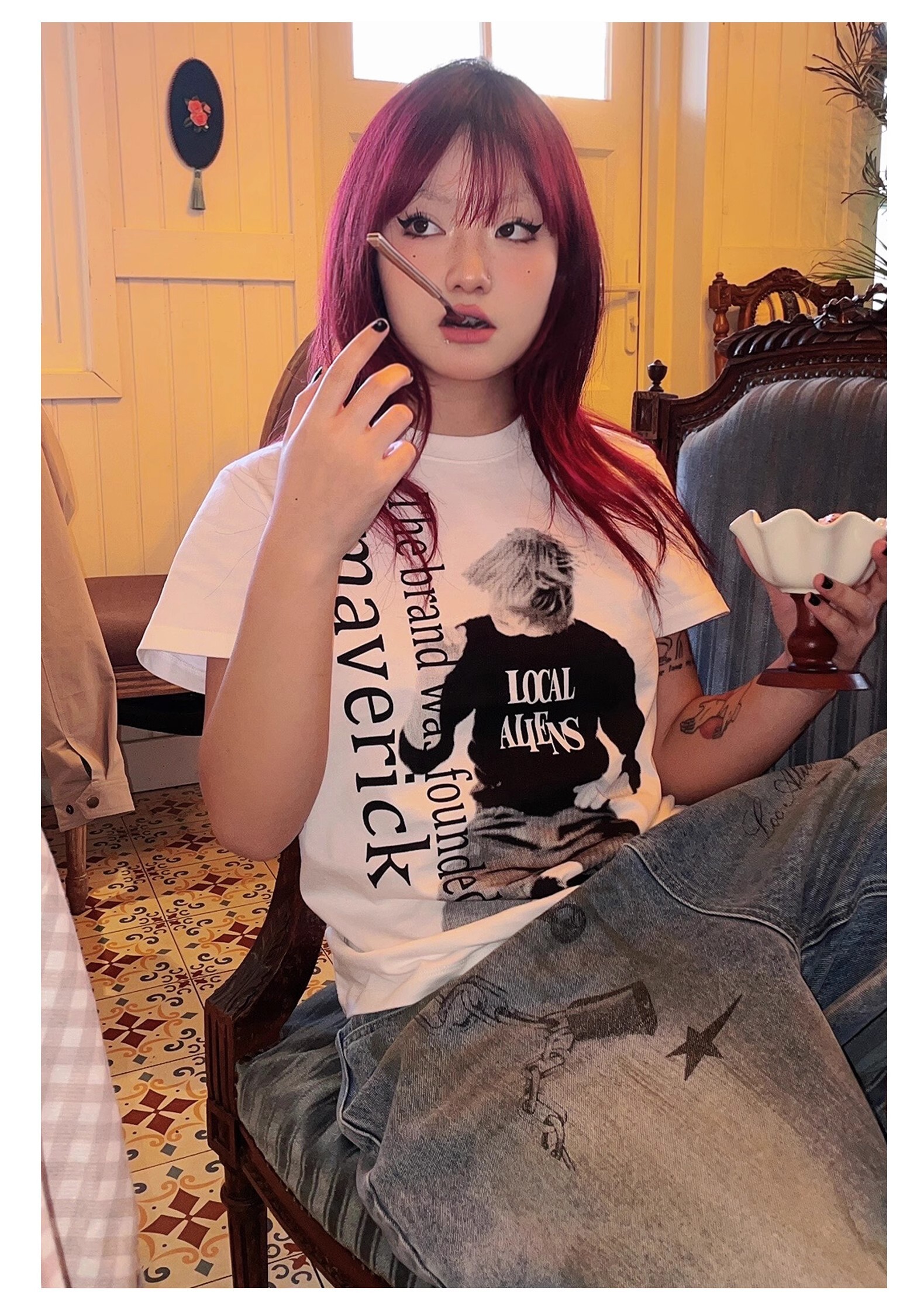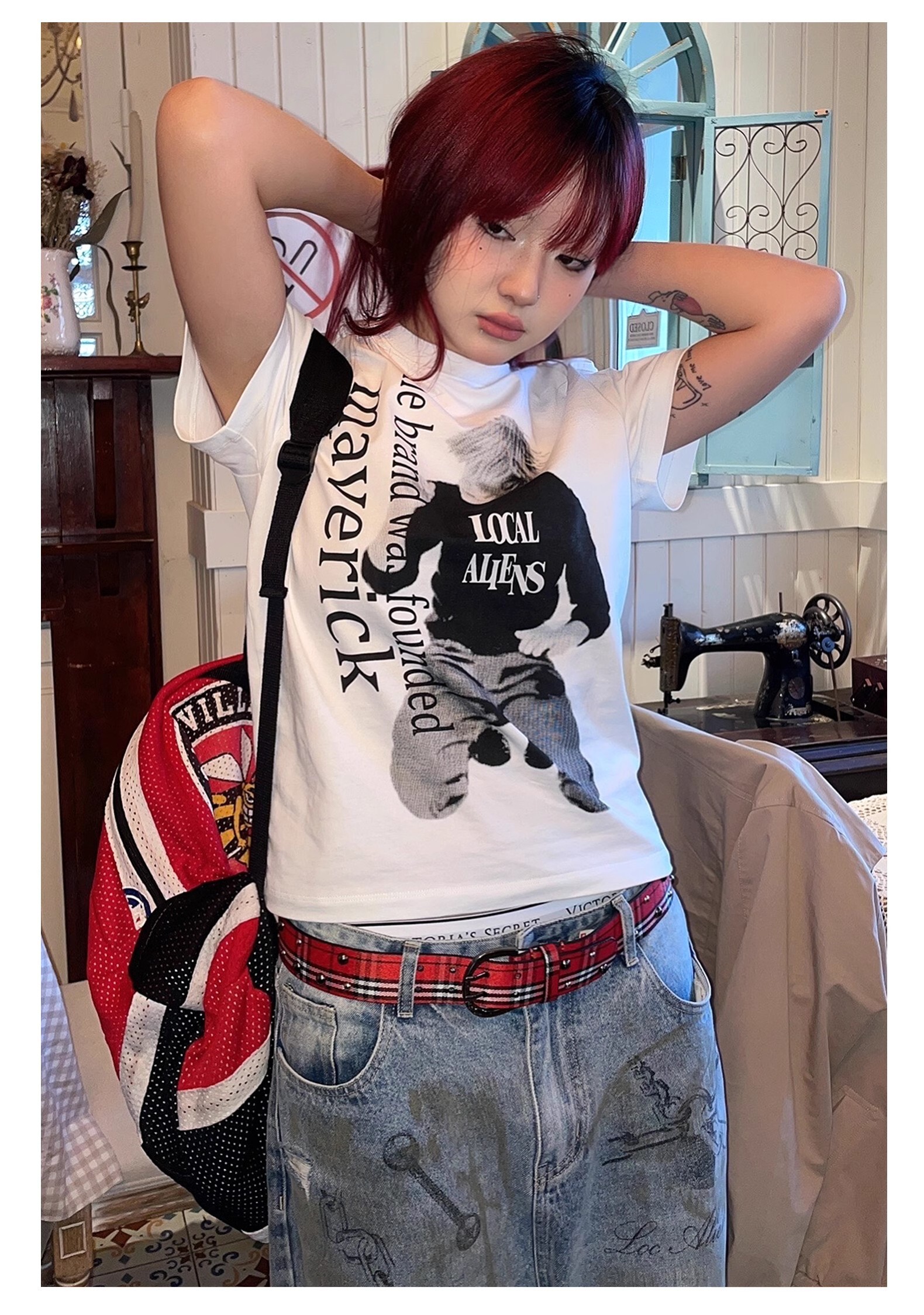 ![[1*1 Pure Cotton Regular Style] Printed Straight Shoulder Regular Short Sleeve High Elasticity New Summer Slim Fit](images/zmwp7084_02.jpg)