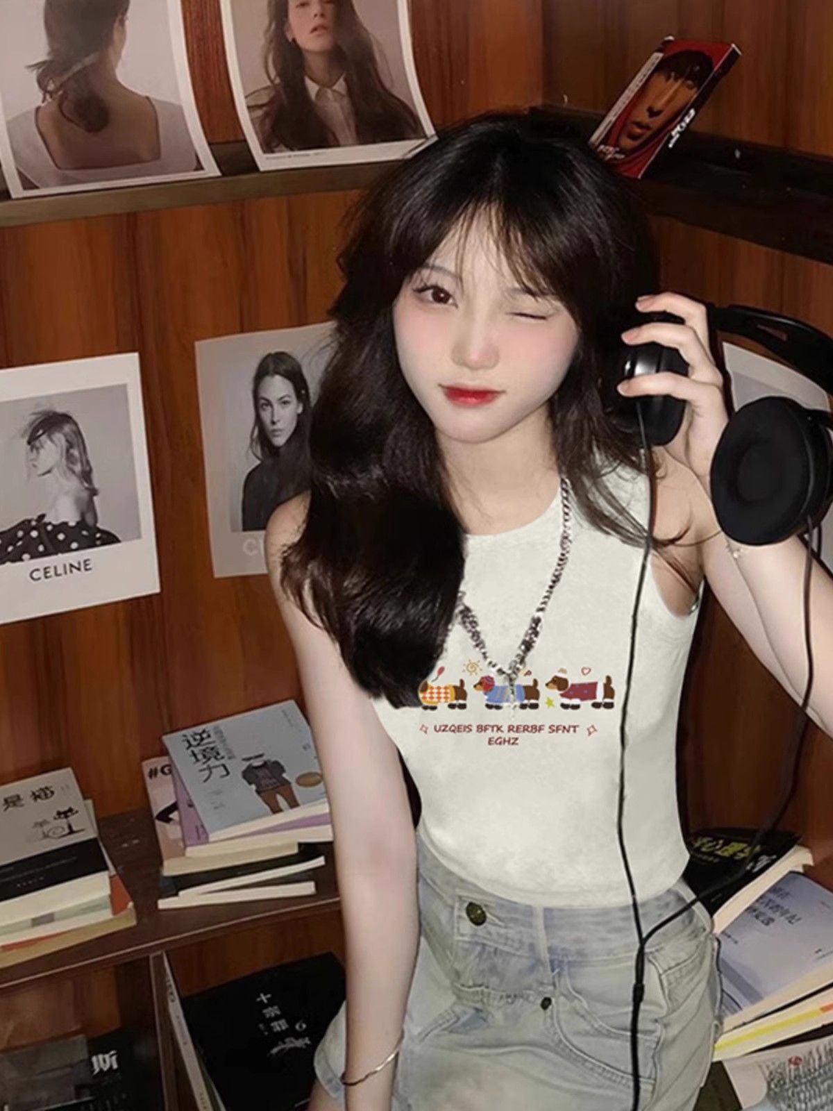 ![[Shoulder and Collar Cover] Summer Dopamine Outfit: Sleeveless T-shirt, American Style Short Hot Girl Slim Fit Tank Top](images/zmwp7093_03.jpg)