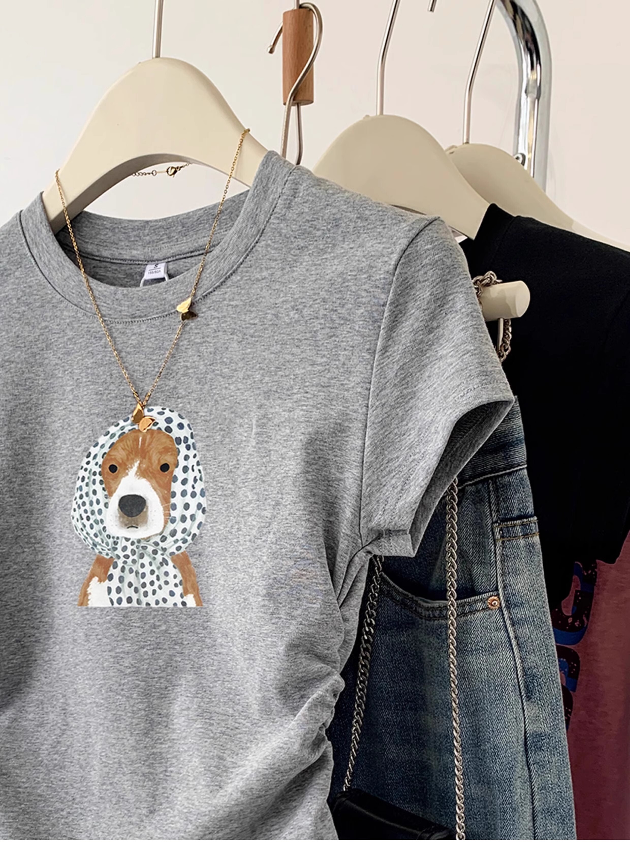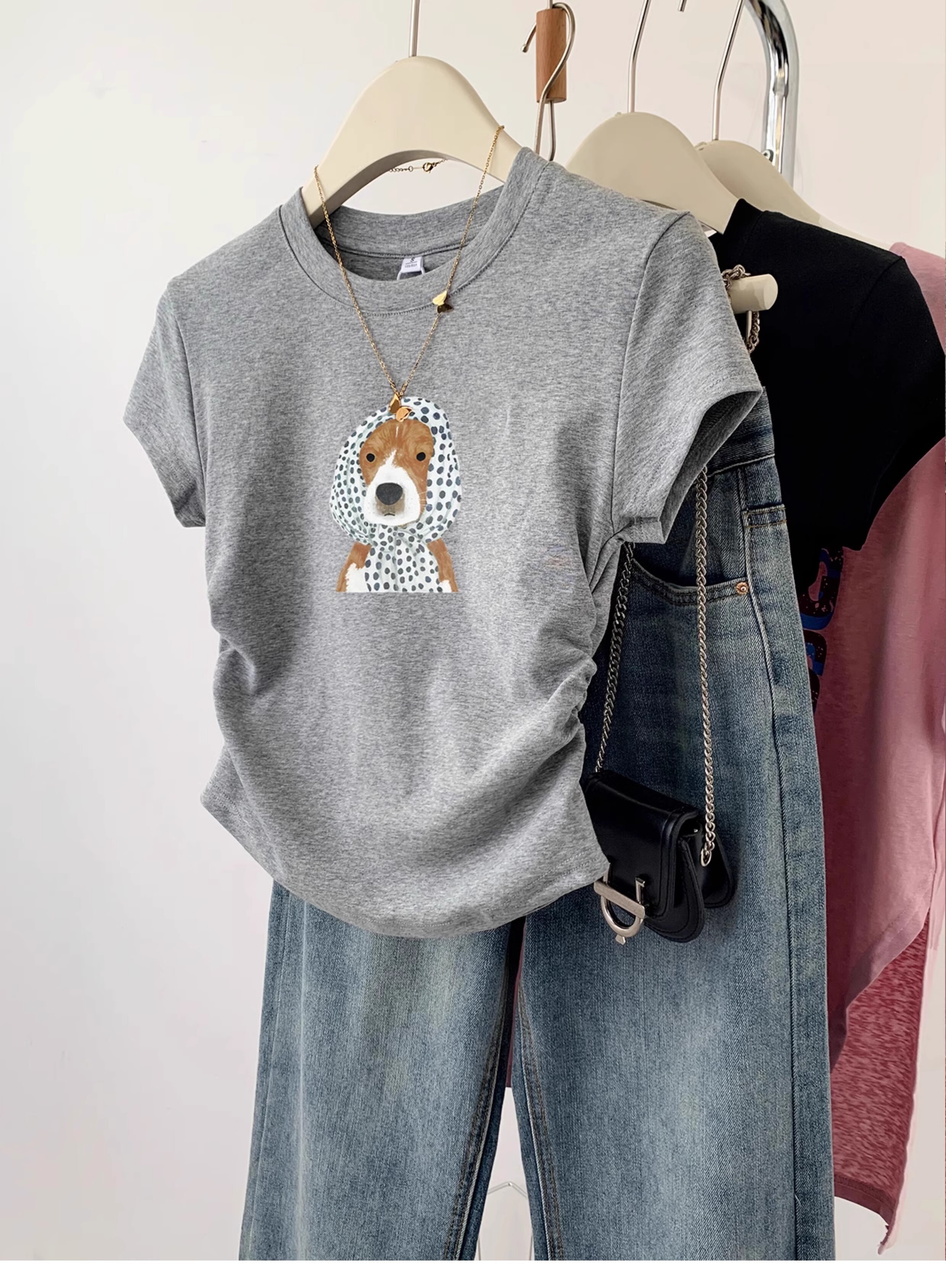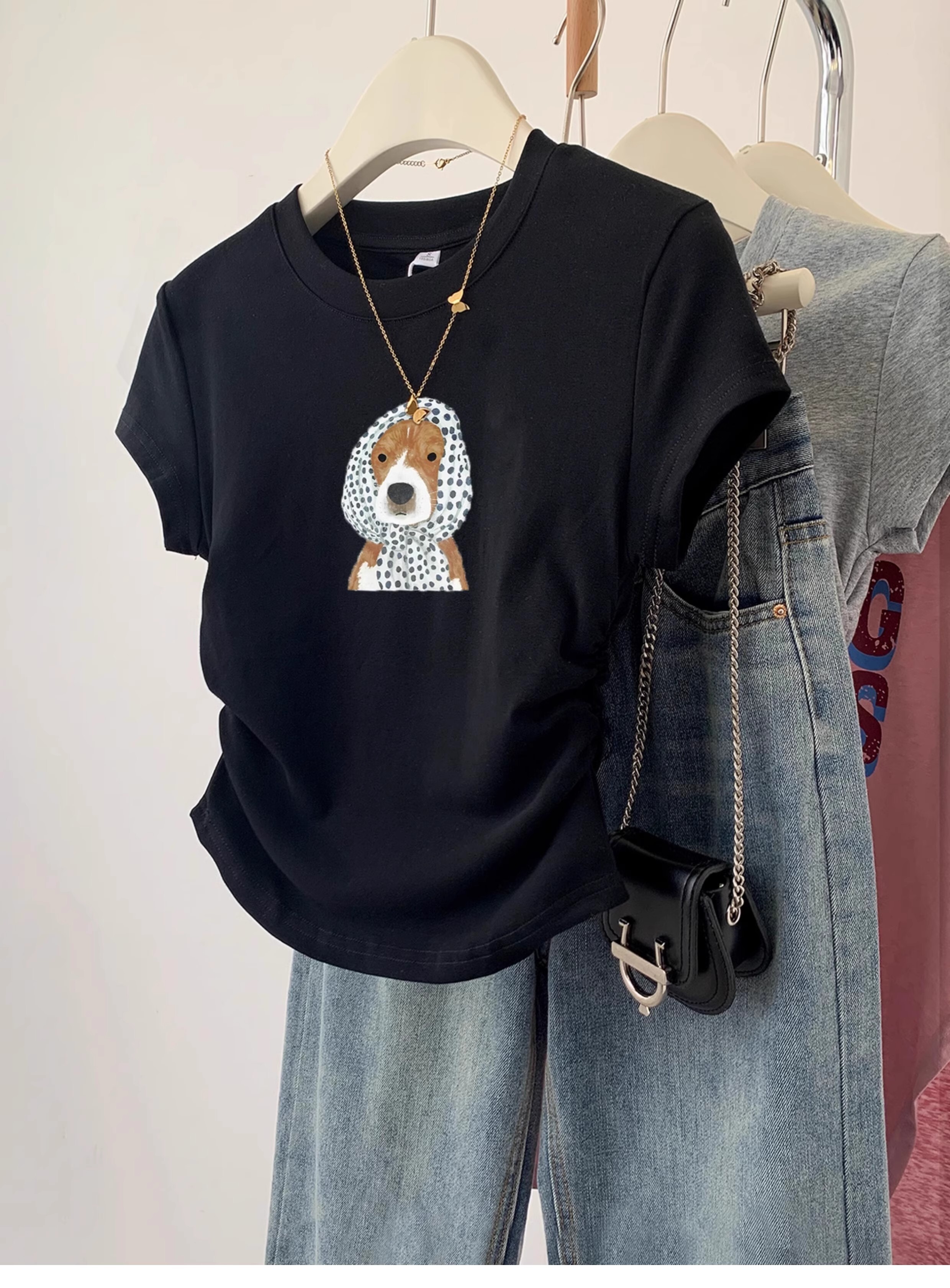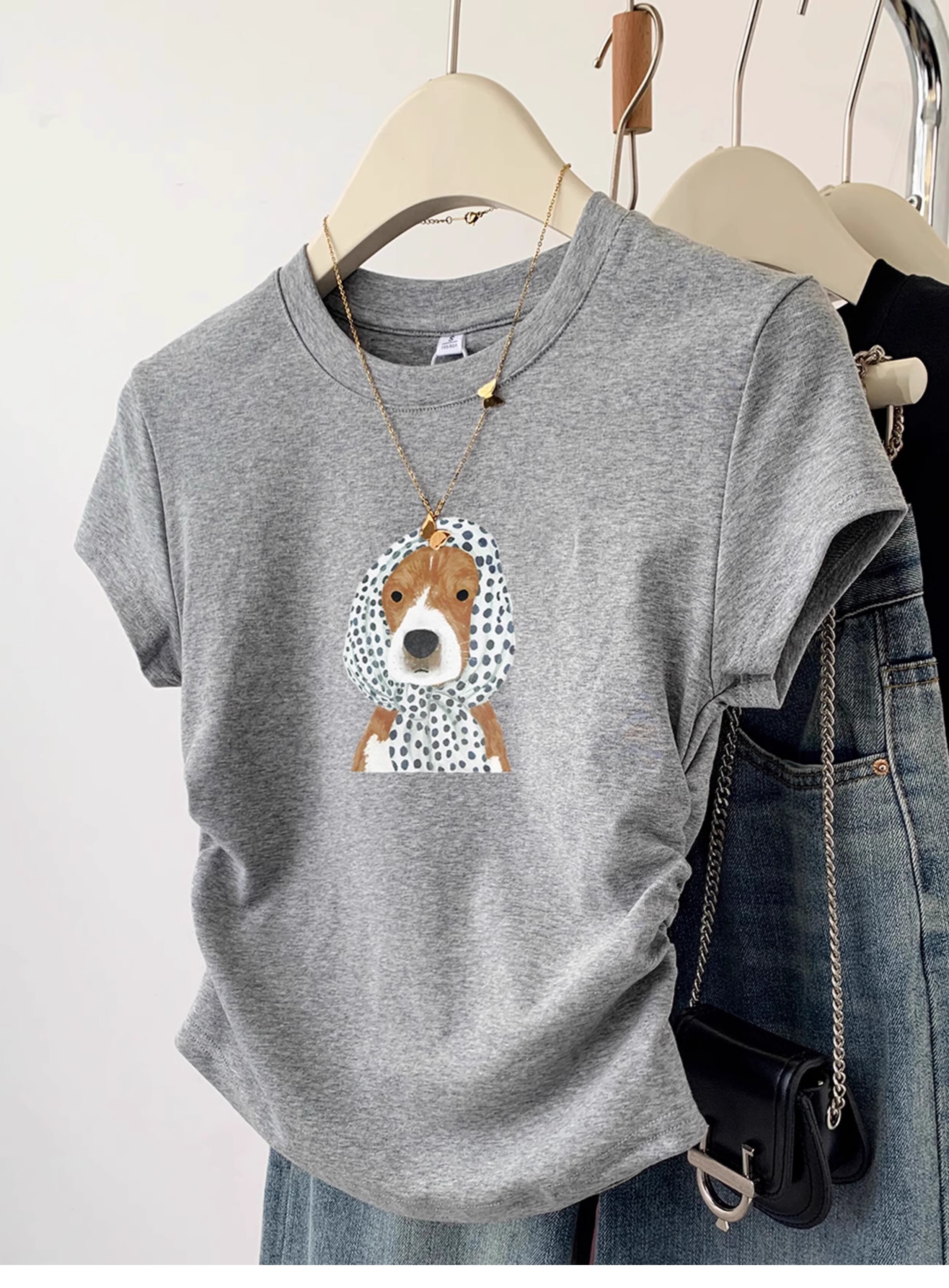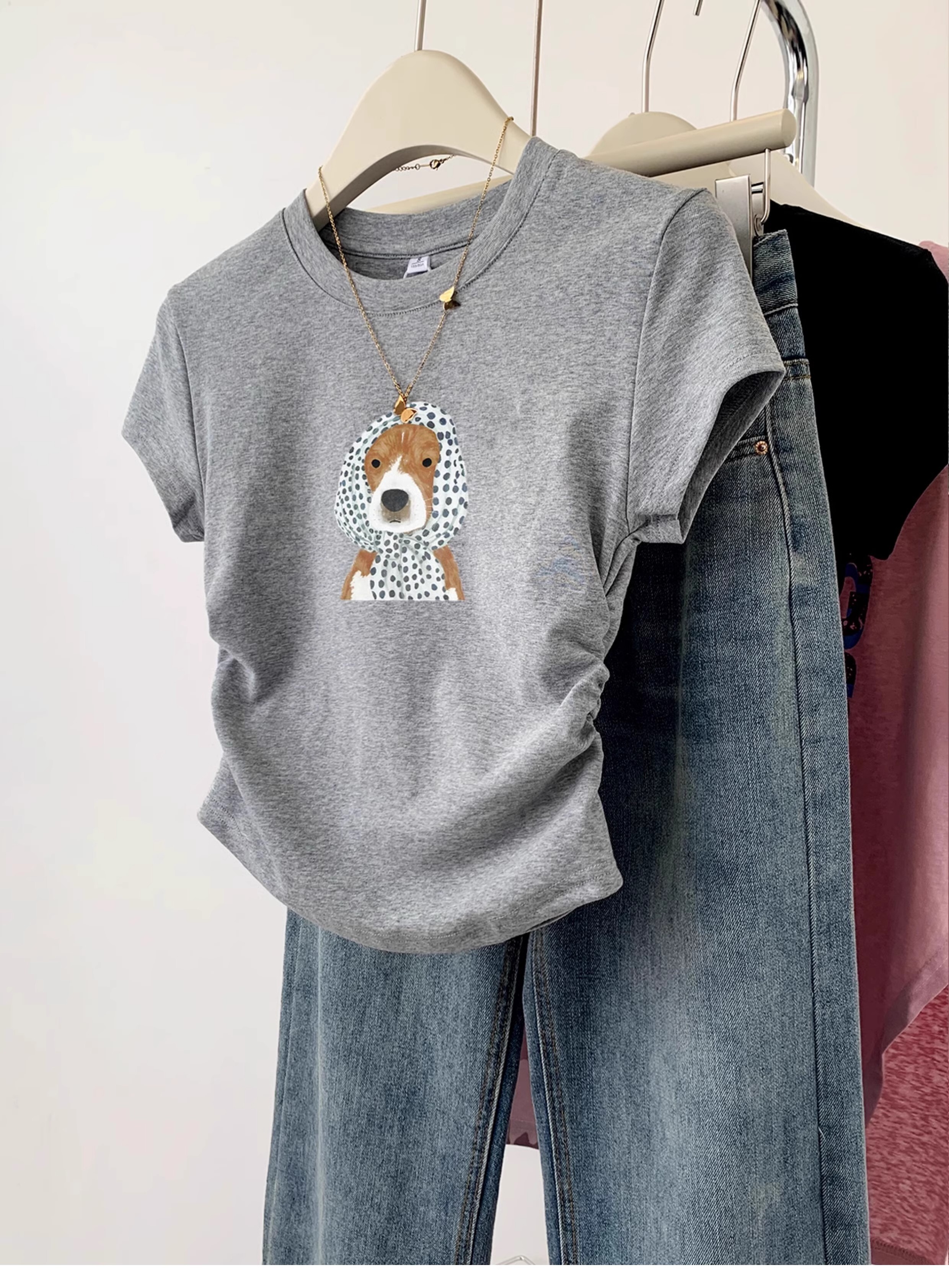 ![[1*1 Pure Cotton High Elasticity] Pleated Waist-Slimming Short-Sleeve T-Shirt for Women, New Summer Style, Slim Fit T-Shirt](images/zmwp6973_04.jpg)