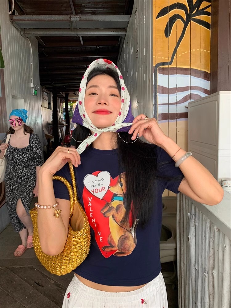 ![[1*1 Pure Cotton Regular Style] Printed Straight Shoulder Regular Short Sleeve High Elasticity New Summer Slim Fit](images/zmwp6982_02.jpg)