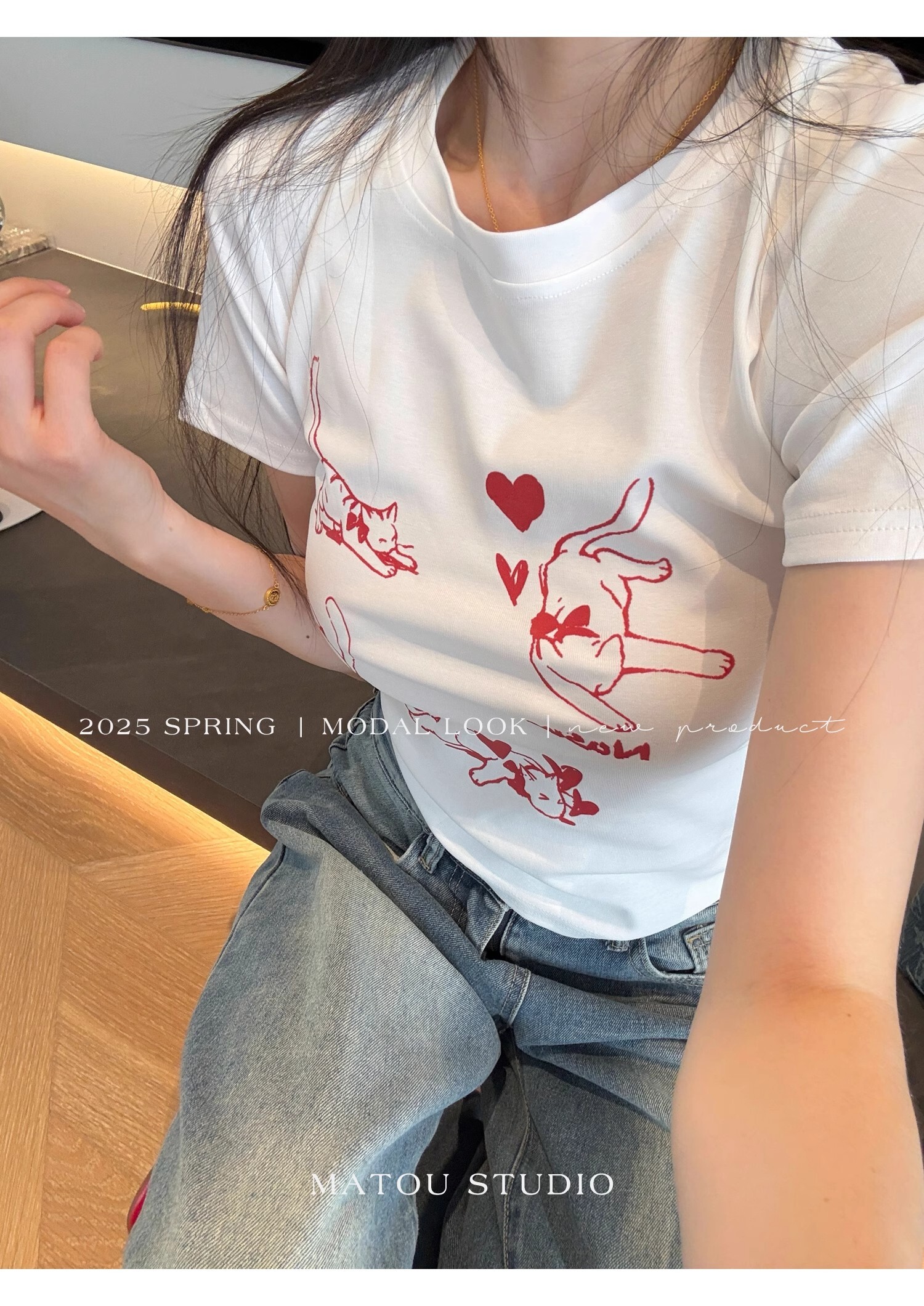 ![[1*1 Pure Cotton Regular Style] Printed Straight Shoulder Regular Short Sleeve High Elasticity New Summer Slim Fit](images/zmwp6985_02.jpg)