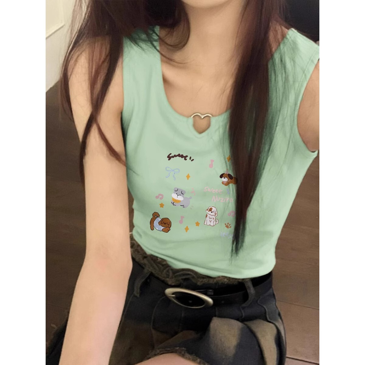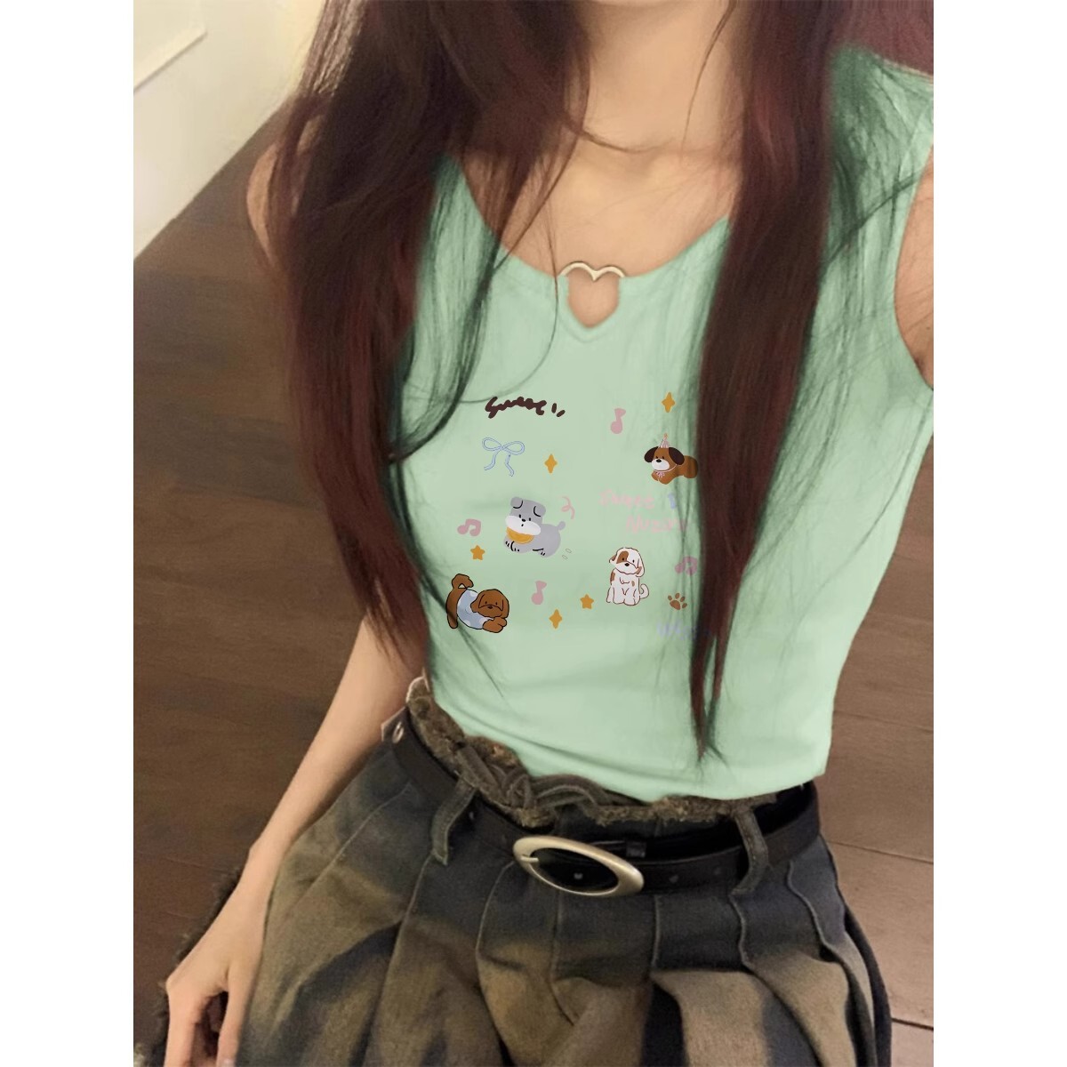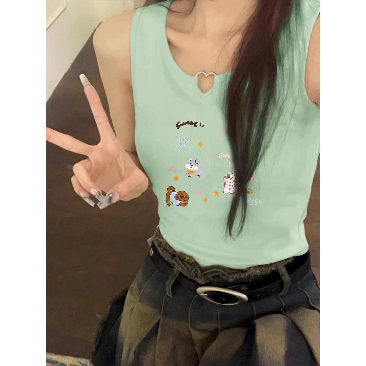 ![[Shoulder and Collar Cover] Summer Dopamine Outfit: Sleeveless T-shirt, American Style Short Hot Girl Slim Fit Tank Top](images/zmwp6751_03.jpg)