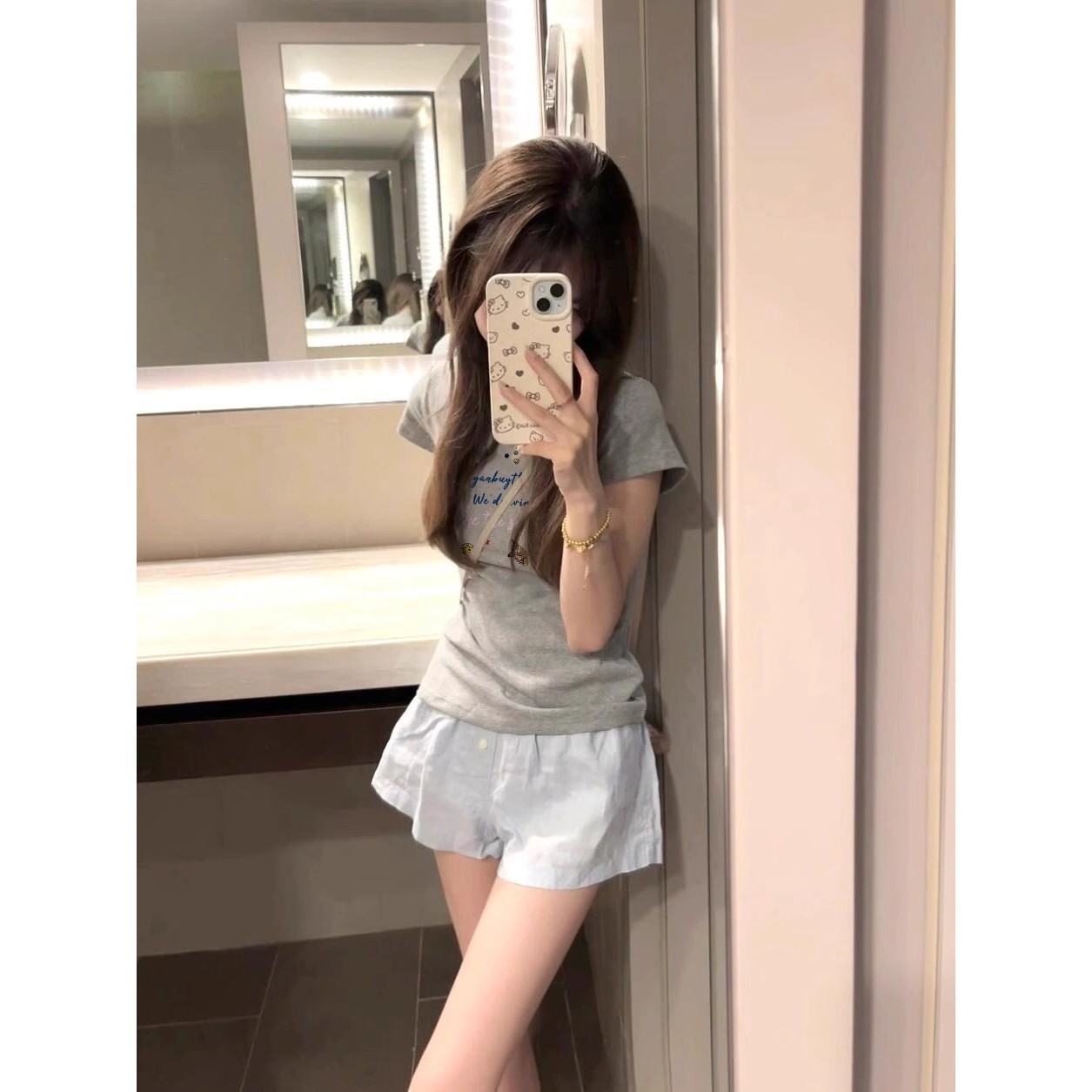 ![[1*1 Pure Cotton Regular Style] Printed Straight Shoulder Regular Short Sleeve High Elasticity New Summer Slim Fit](images/zmwp6766_01.jpg)
