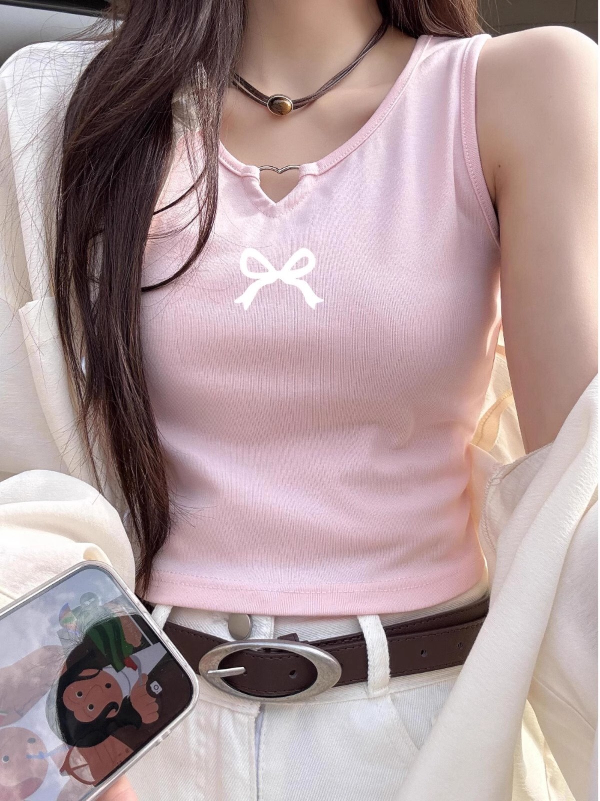![[Shoulder and Collar Cover] Summer Dopamine Outfit: Sleeveless T-shirt, American Style Short Hot Girl Slim Fit Tank Top](images/zmwp6770_04.jpg)