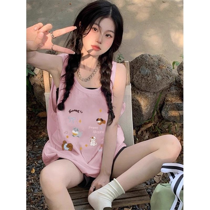 ![[Shoulder and Collar Cover] Summer Dopamine Outfit: Sleeveless T-shirt, American Style Vest, Sleeveless Top](images/zmwp6772_01.jpg)