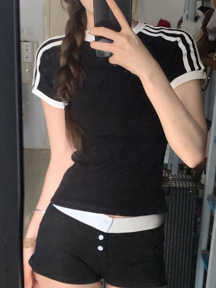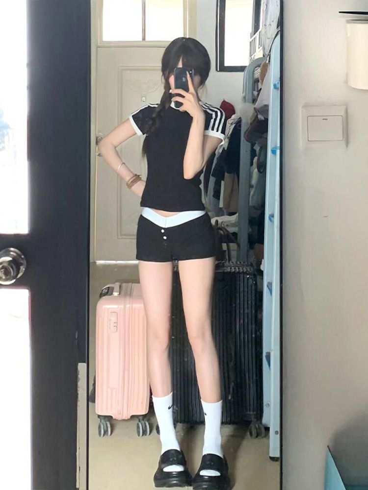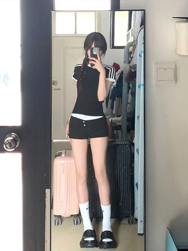 ![[1*1 Pure Cotton Regular Style] Regular Short-Sleeve High Elasticity New Summer Slim Fit with Three Stripes](images/zmwp6788_04.jpg)