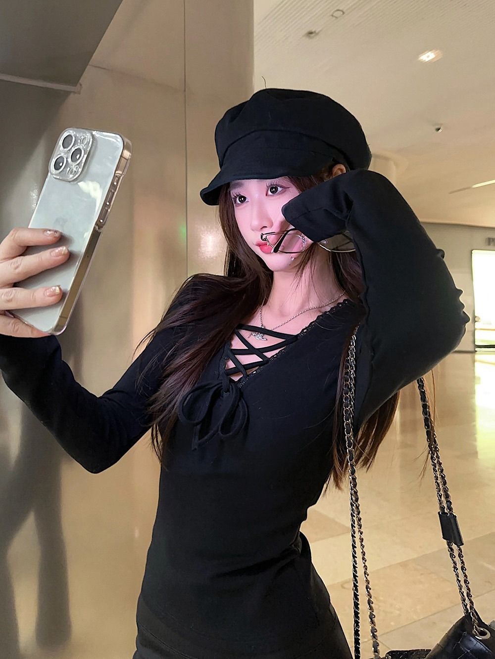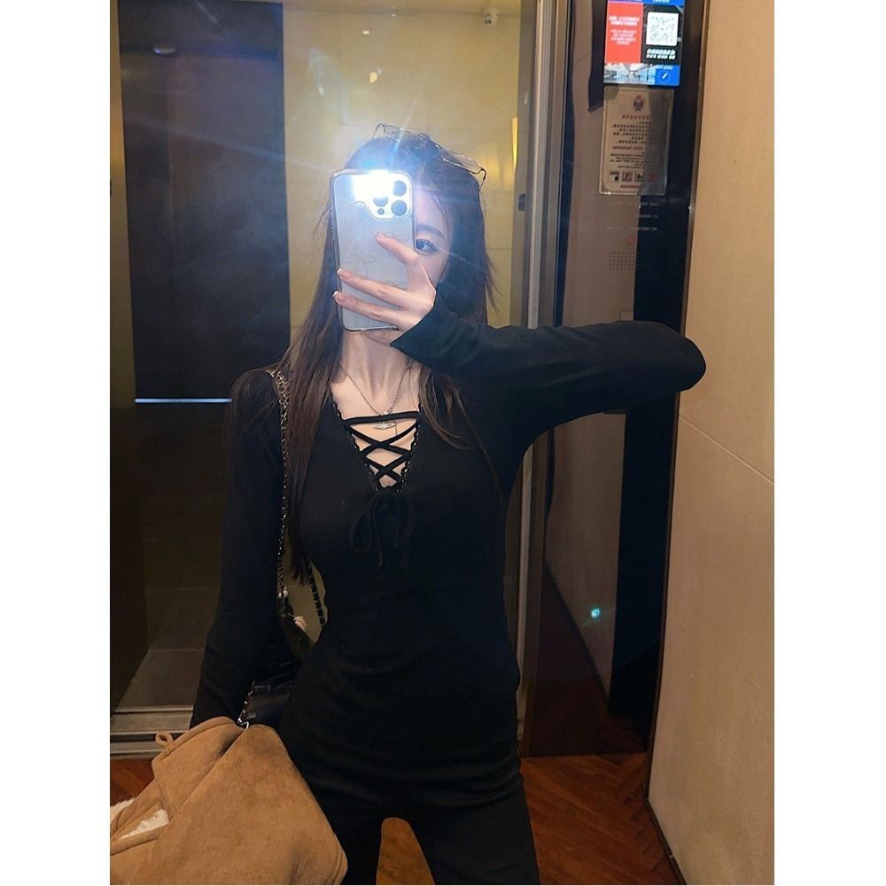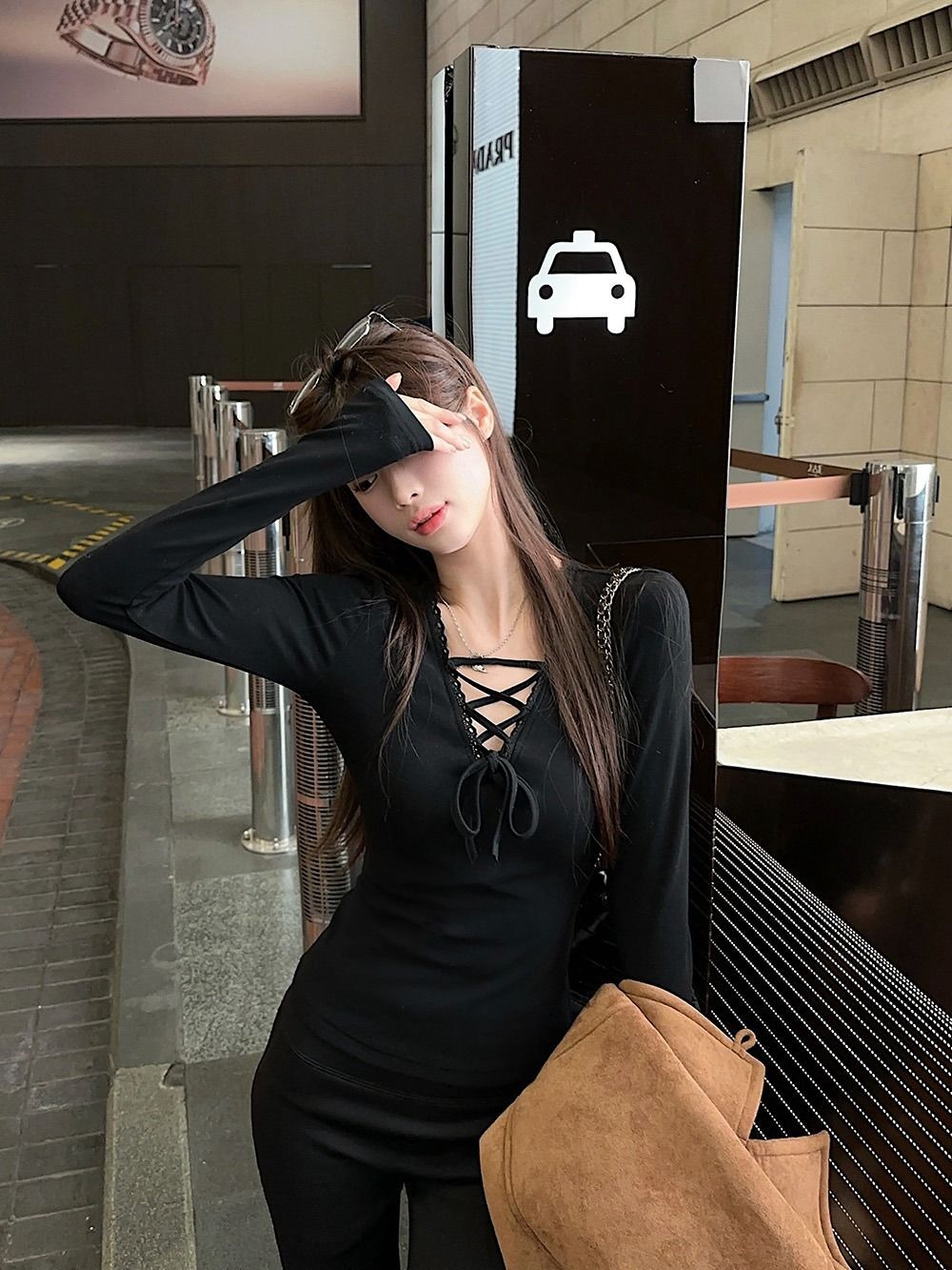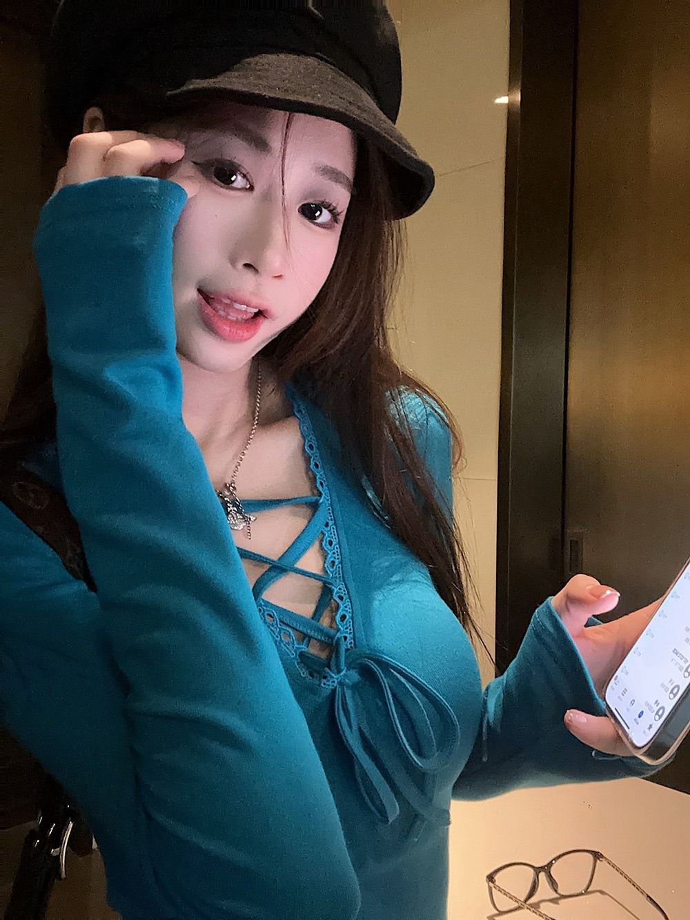 ![MR [Original Version] Pure and Desire Style Tie-up V-neck Knit Sweater for Women, Slim Fit, Blue Brushed Textured Top](images/mrwg/mrwg1055e_01.jpg)