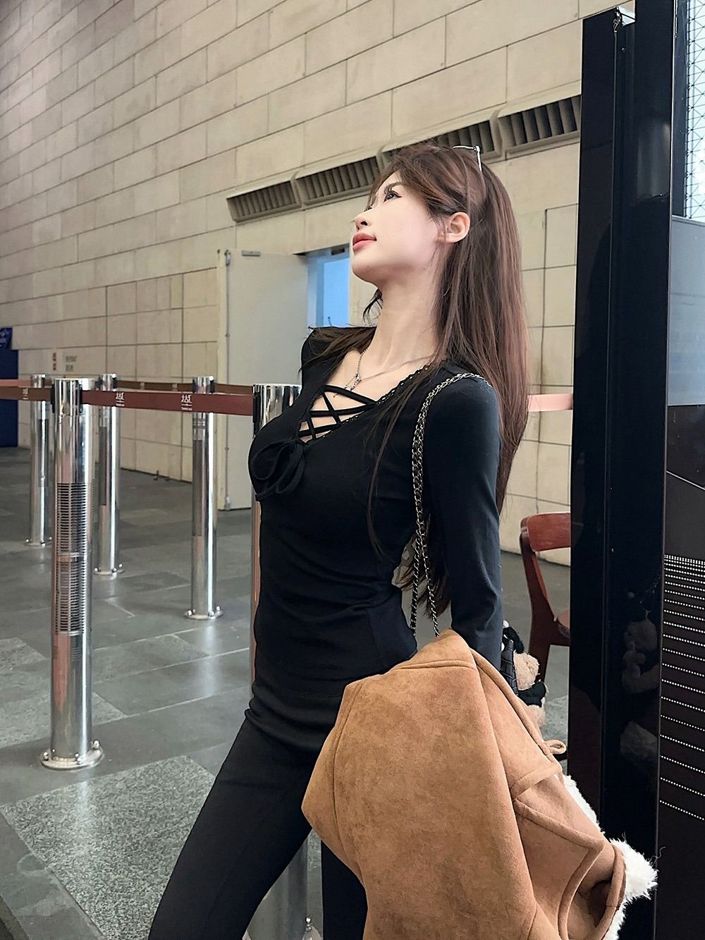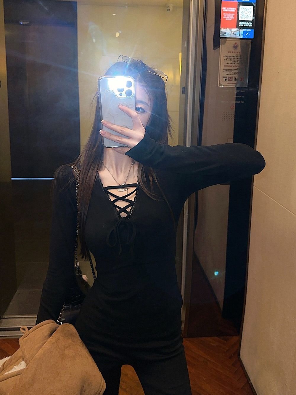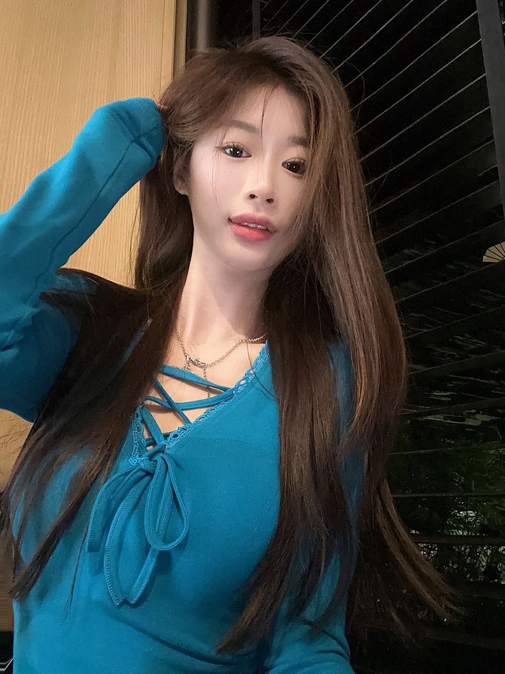 ![MR [Original Version] Pure and Desire Style Tie-up V-neck Knit Sweater for Women, Slim Fit, Blue Brushed Textured Top](images/mrwg/mrwg1055e_04.jpg)