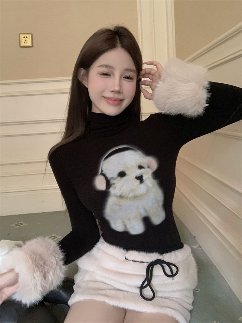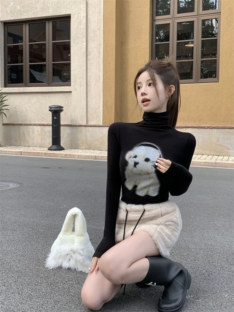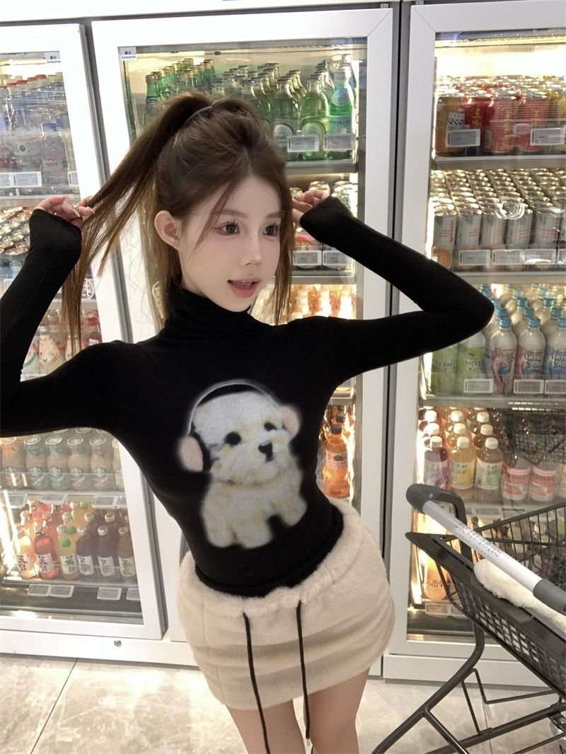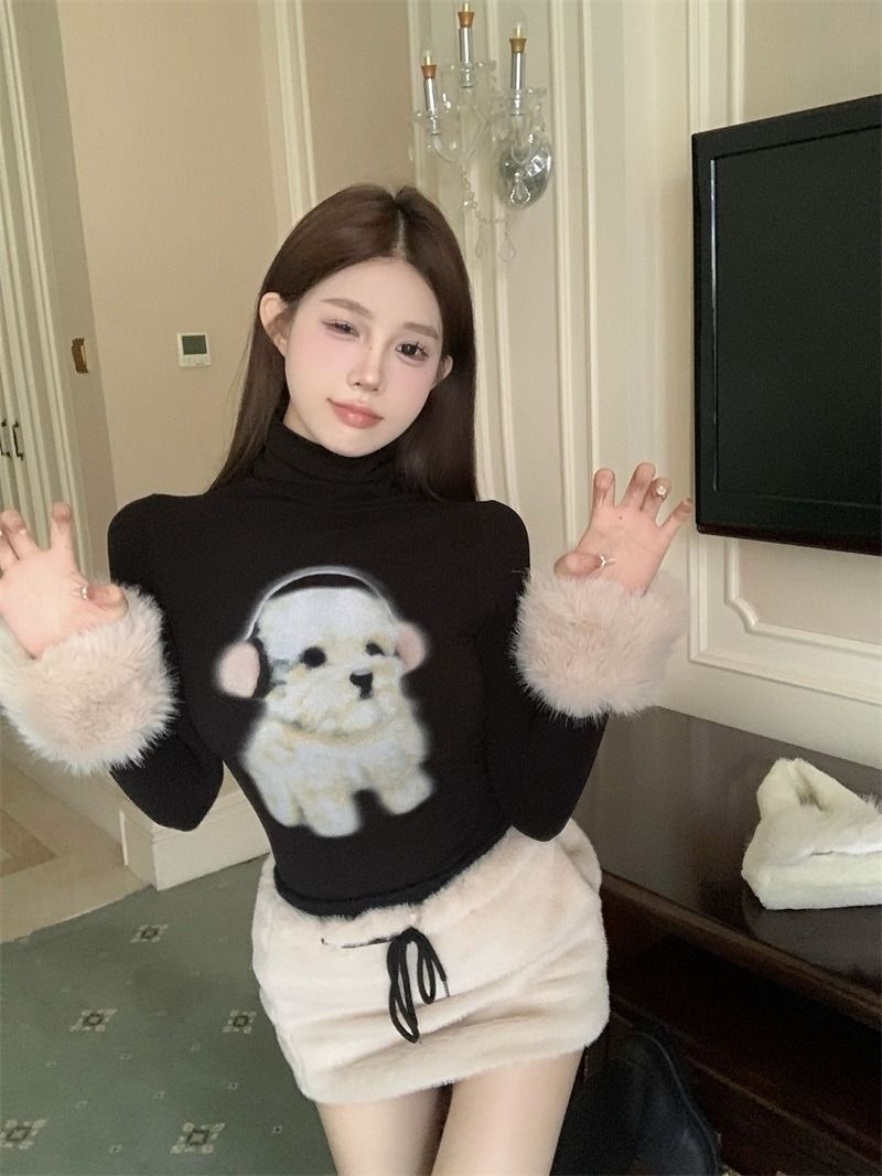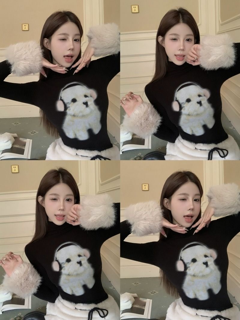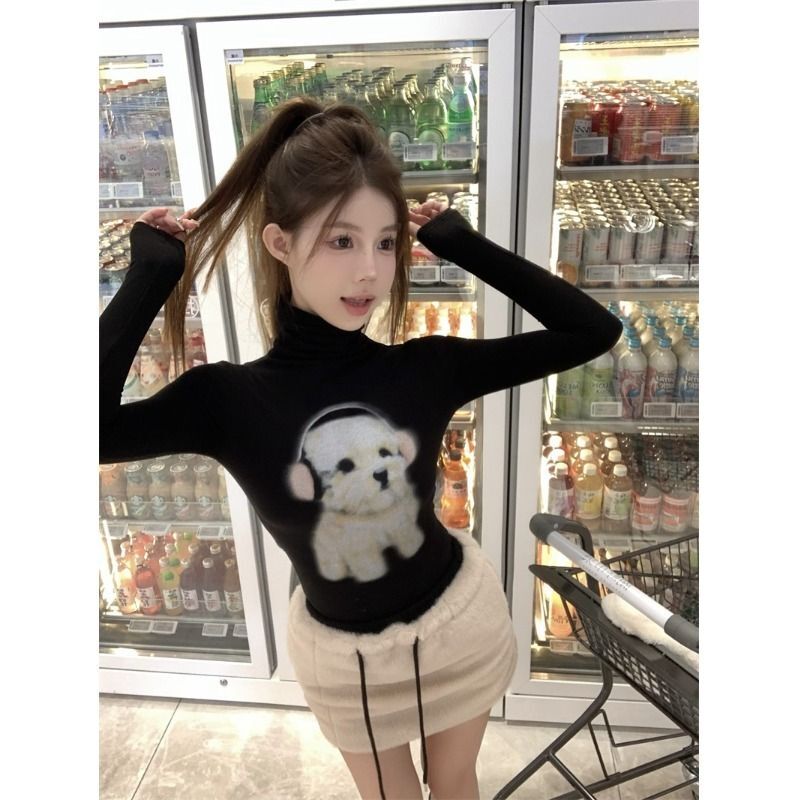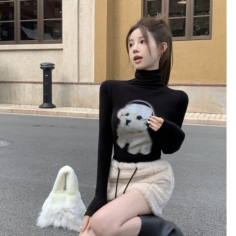 ![MR [Original Style Plush Cuffs] High-Neck Puppy Long-Sleeve Plush Cuffs Autumn/Winter Inner Wear Straight Shoulder](images/mrwg/mrwg1663e_03.jpg)