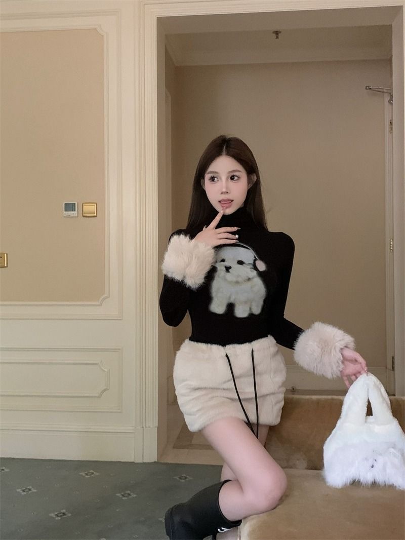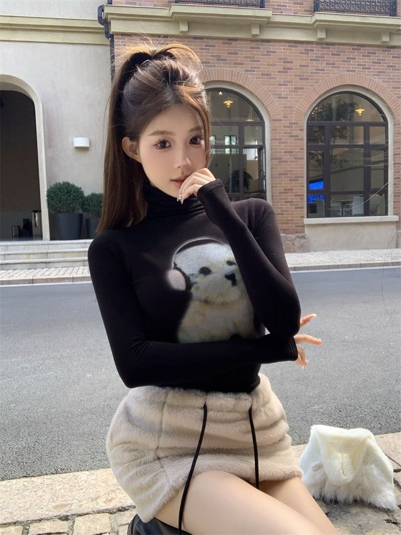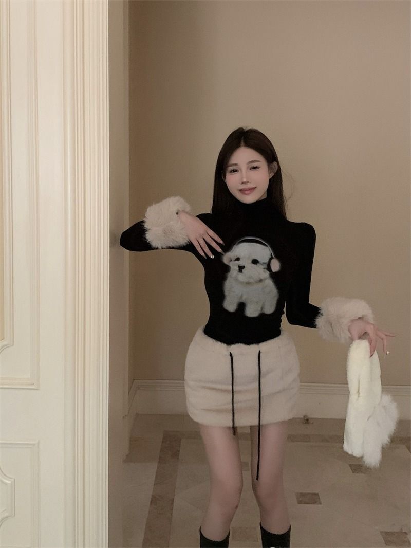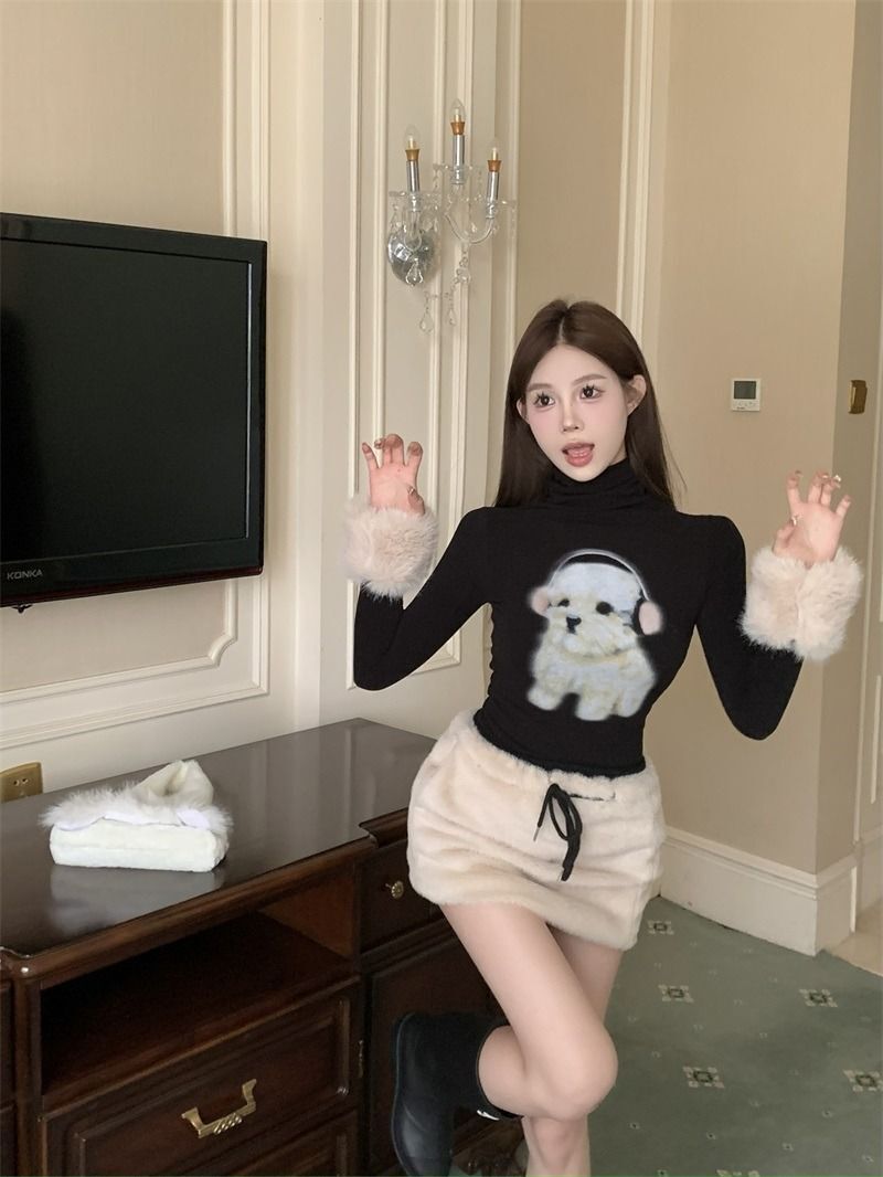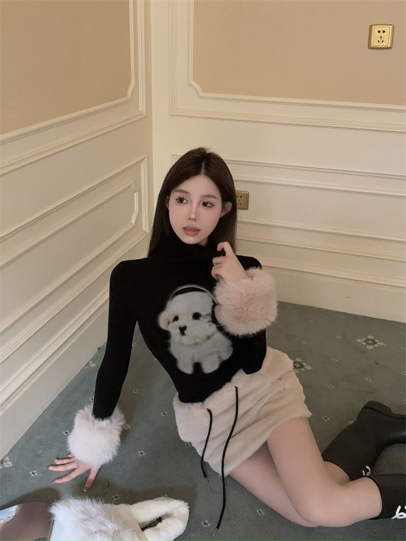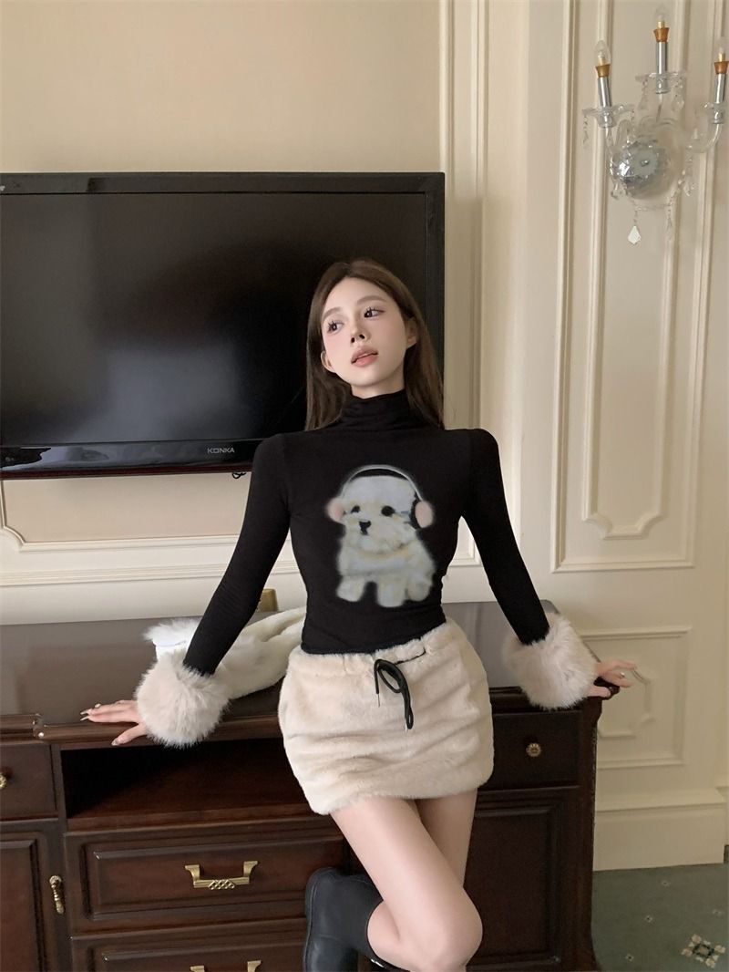 ![MR [Original Style Plush Cuffs] High-Neck Puppy Long-Sleeve Plush Cuffs Autumn/Winter Inner Wear Straight Shoulder](images/mrwg/mrwg1663e_03.jpg)