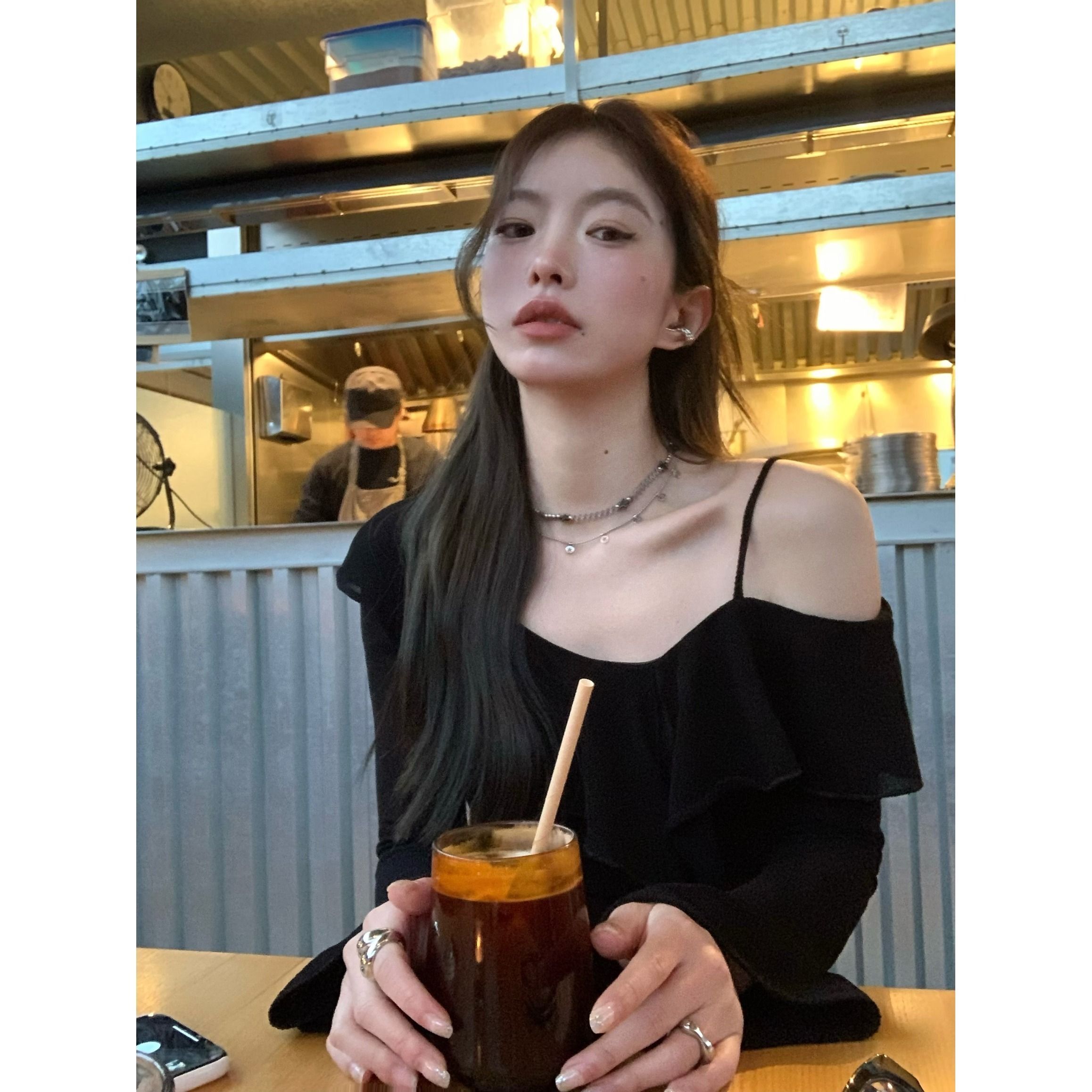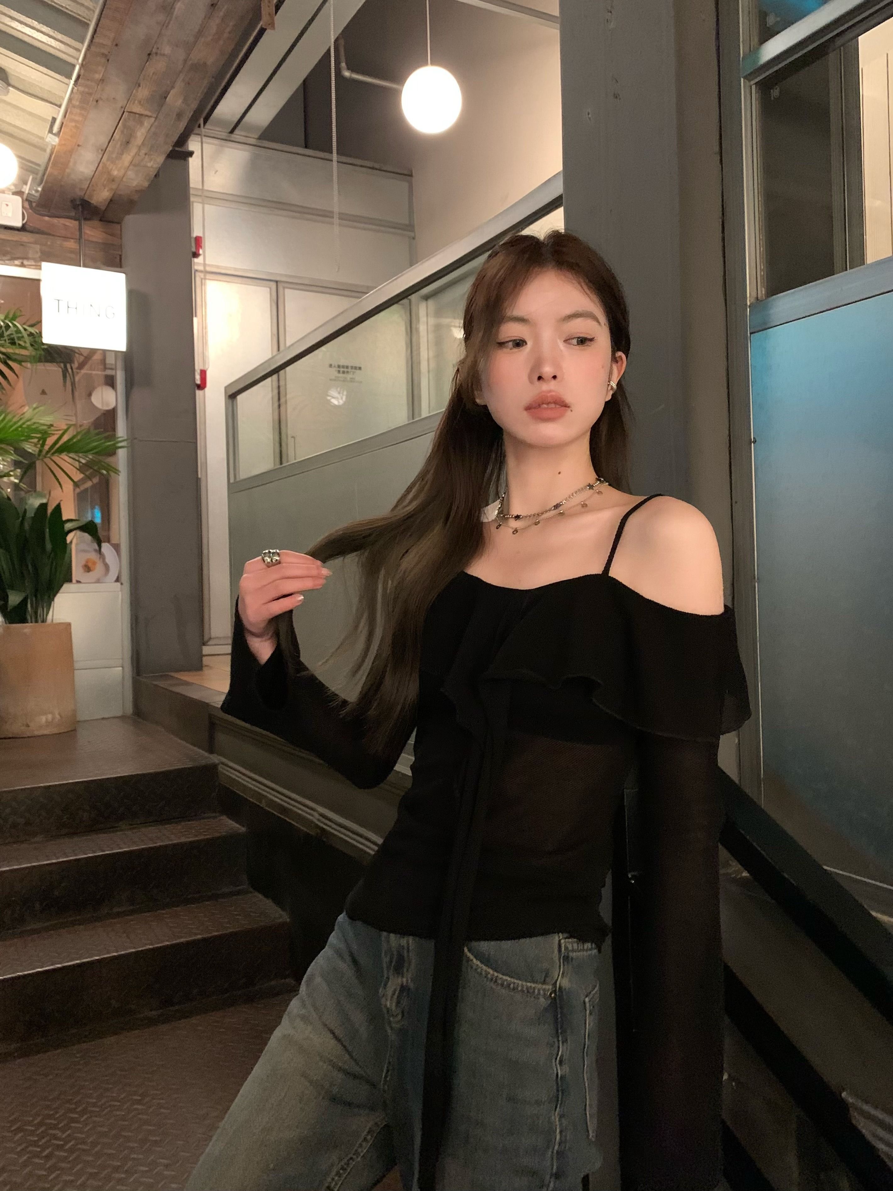 ![MR [Original Design, In Stock] Black Off-Shoulder Long-Sleeve T-Shirt for Women, Stylish Off-Shoulder Camisole](images/mrwg/mrwg1665e_03.jpg)
