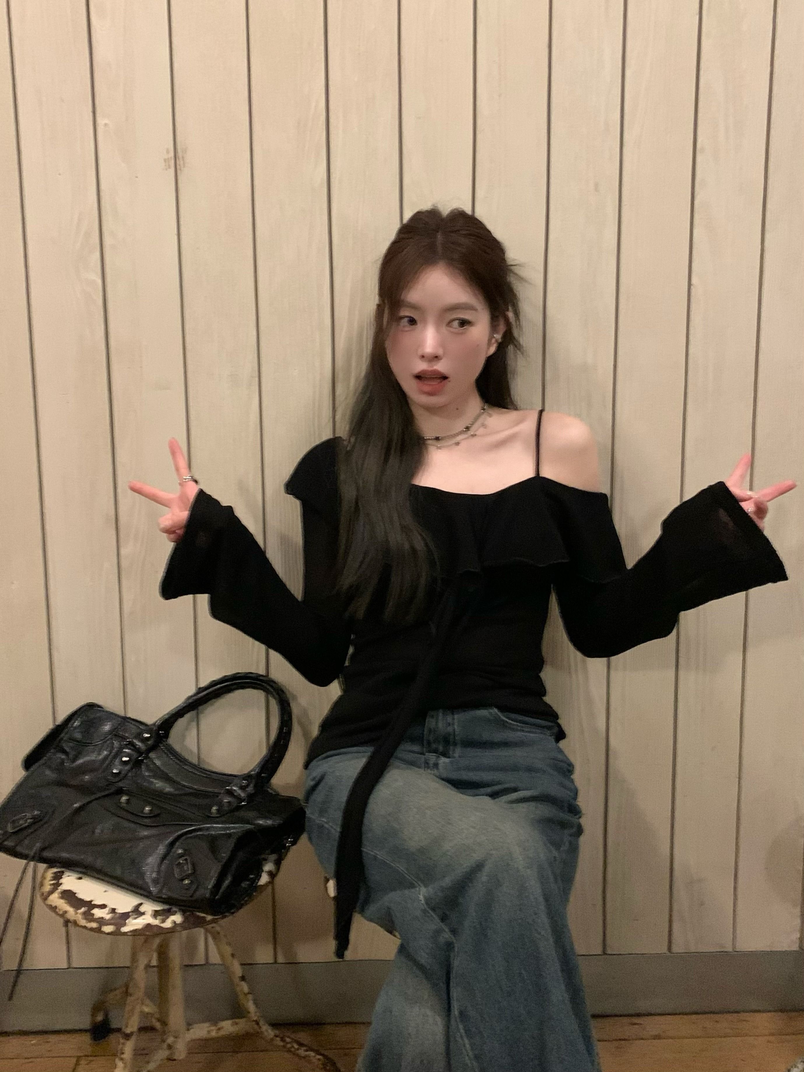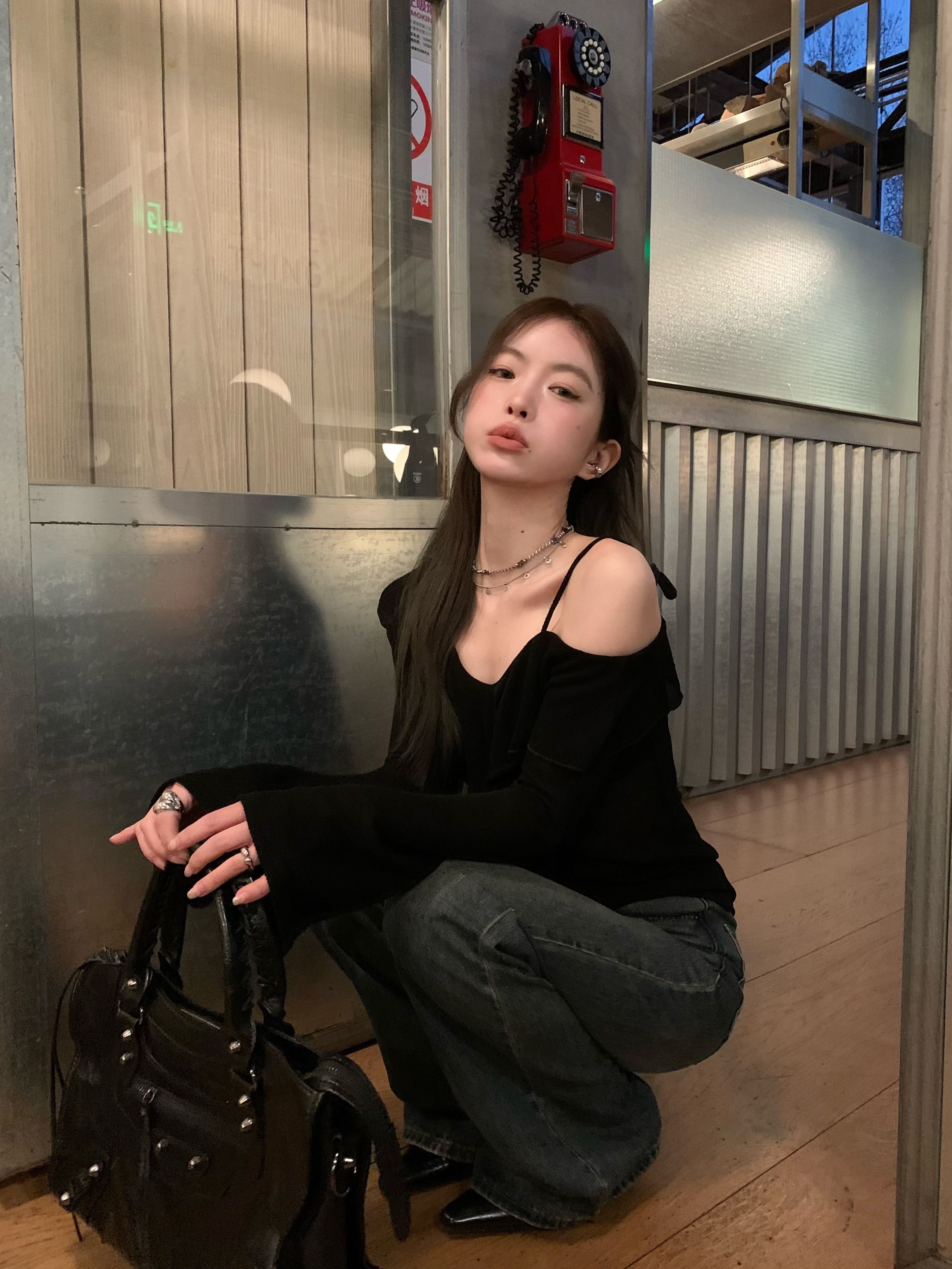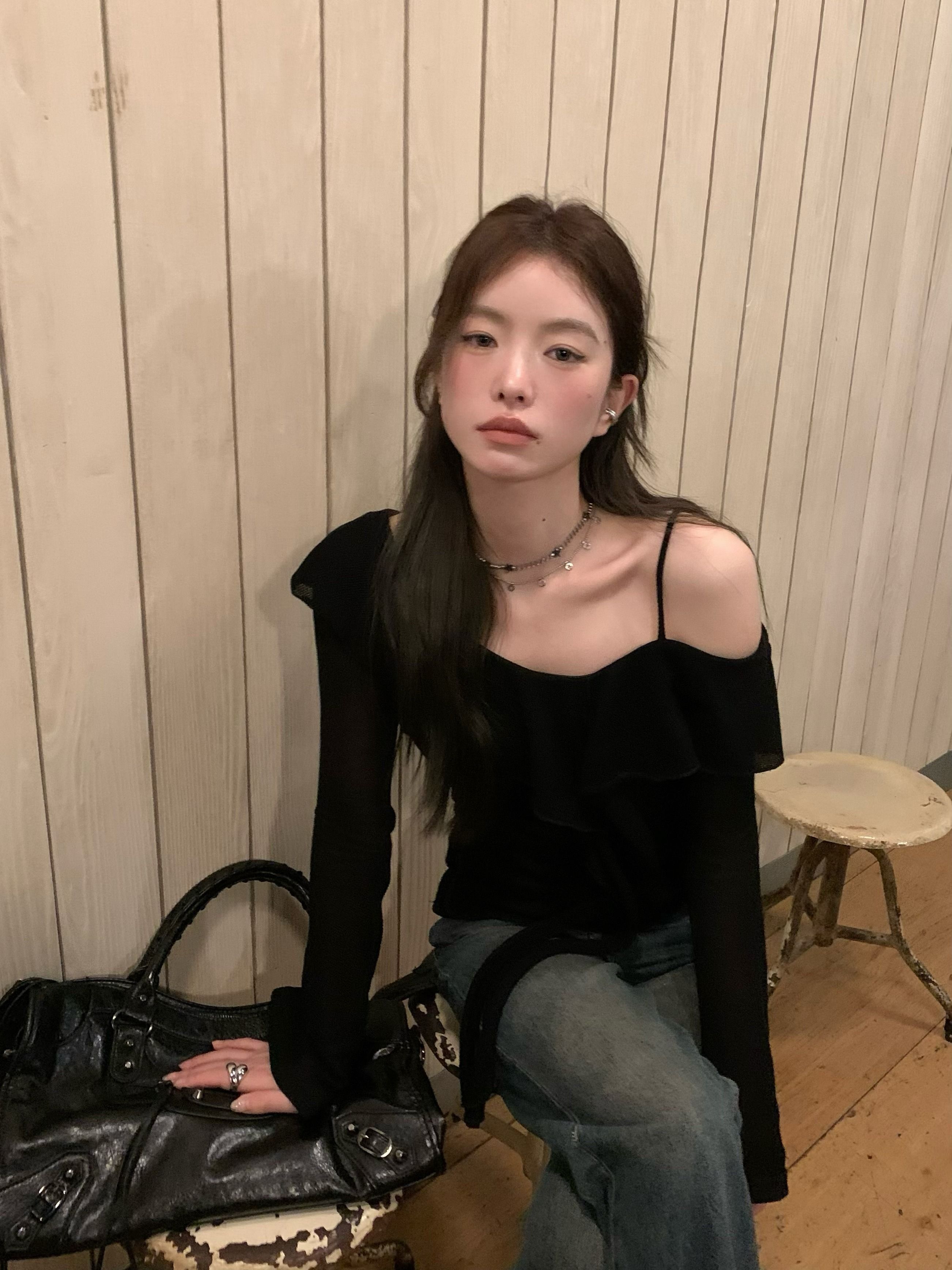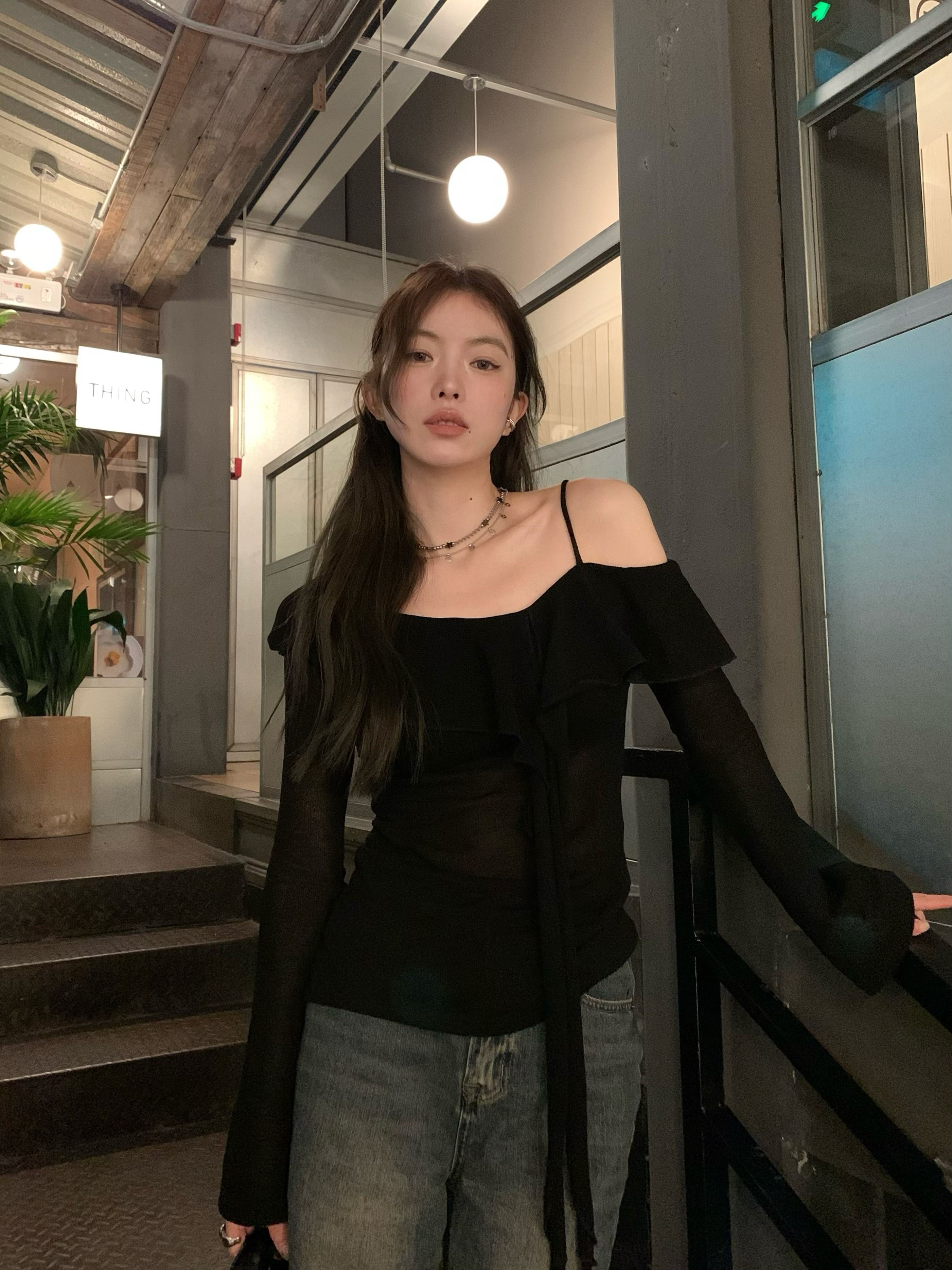 ![MR [Original Design, In Stock] Black Off-Shoulder Long-Sleeve T-Shirt for Women, Stylish Off-Shoulder Camisole](images/mrwg/mrwg1665e_04.jpg)