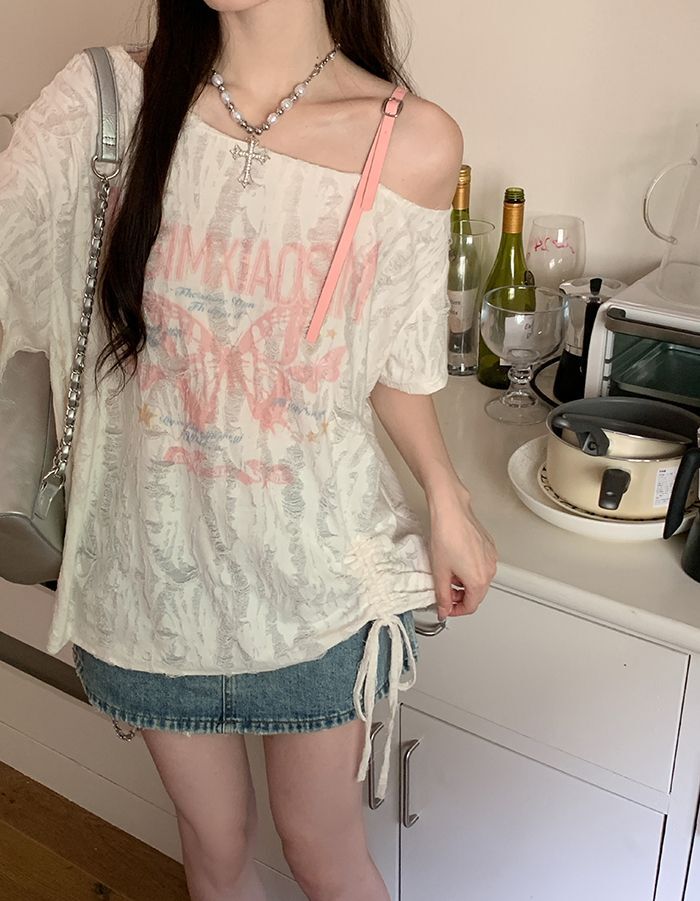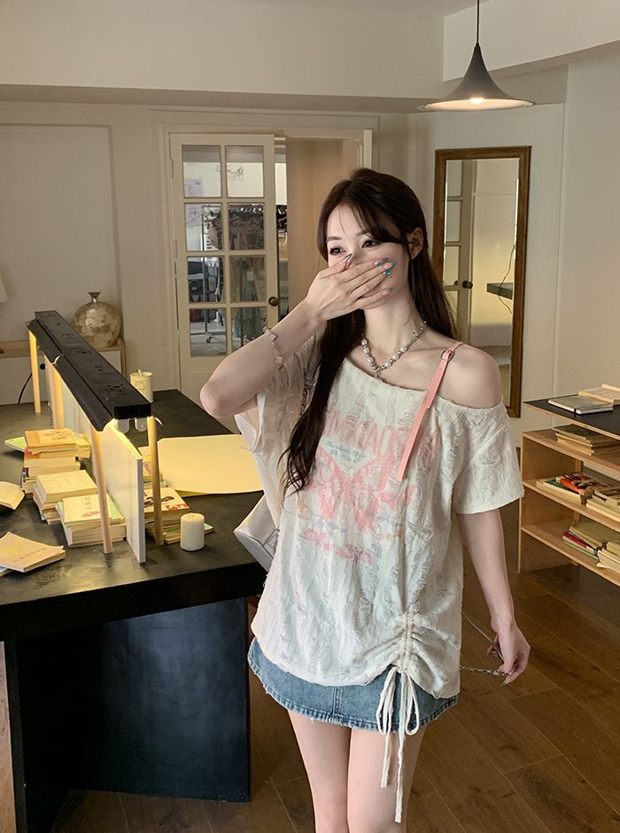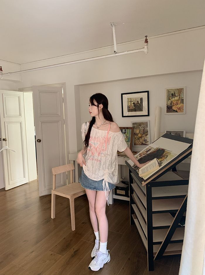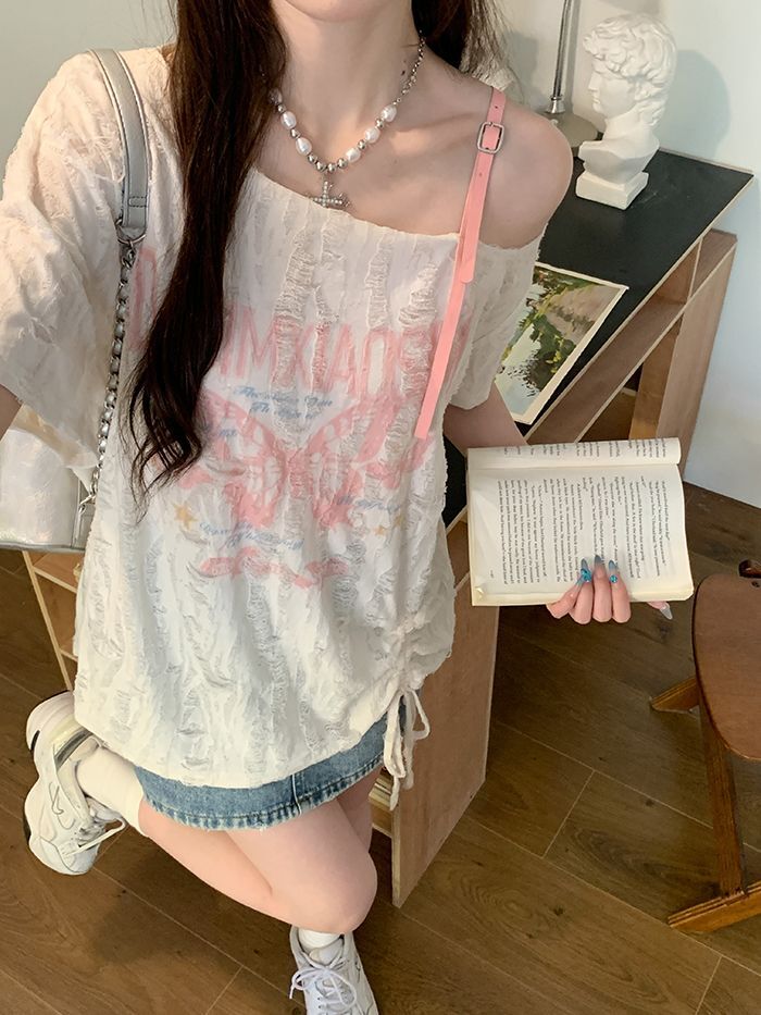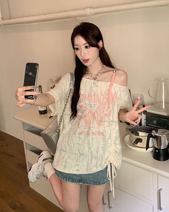 ![MR Original Fabric [Shipped] Printed Letter Off-Shoulder Sunscreen Loose Fit Women's Top, New Style](images/mrwg/mrwg1673e_04.jpg)