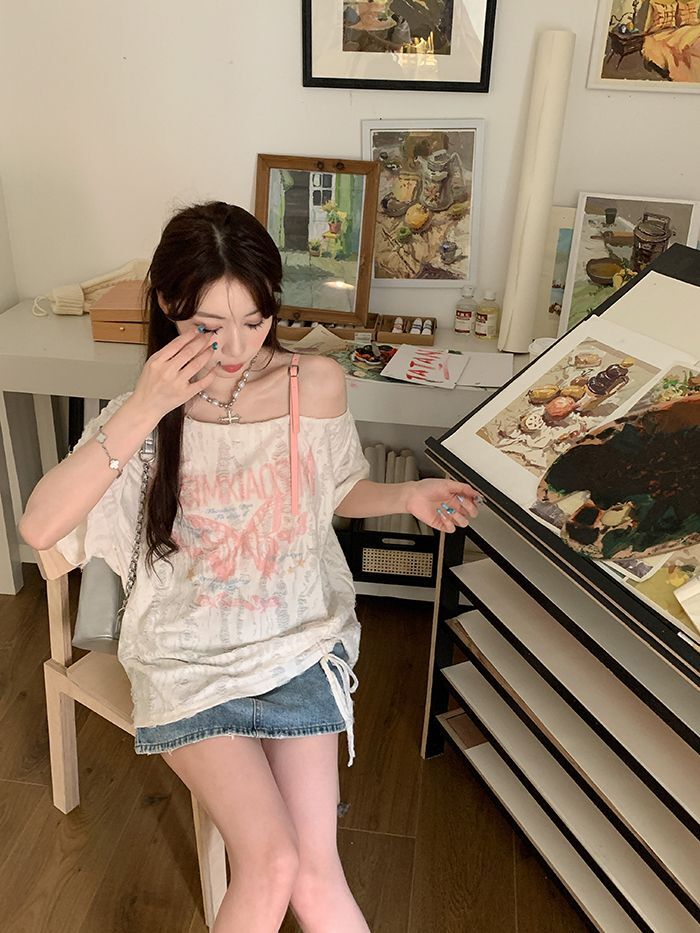 ![MR Original Fabric [Shipped] Printed Letter Off-Shoulder Sunscreen Loose Fit Women's Top, New Style](images/mrwg/mrwg1673e_01.jpg)