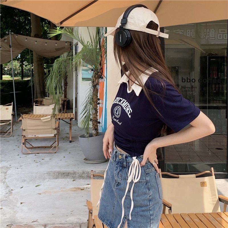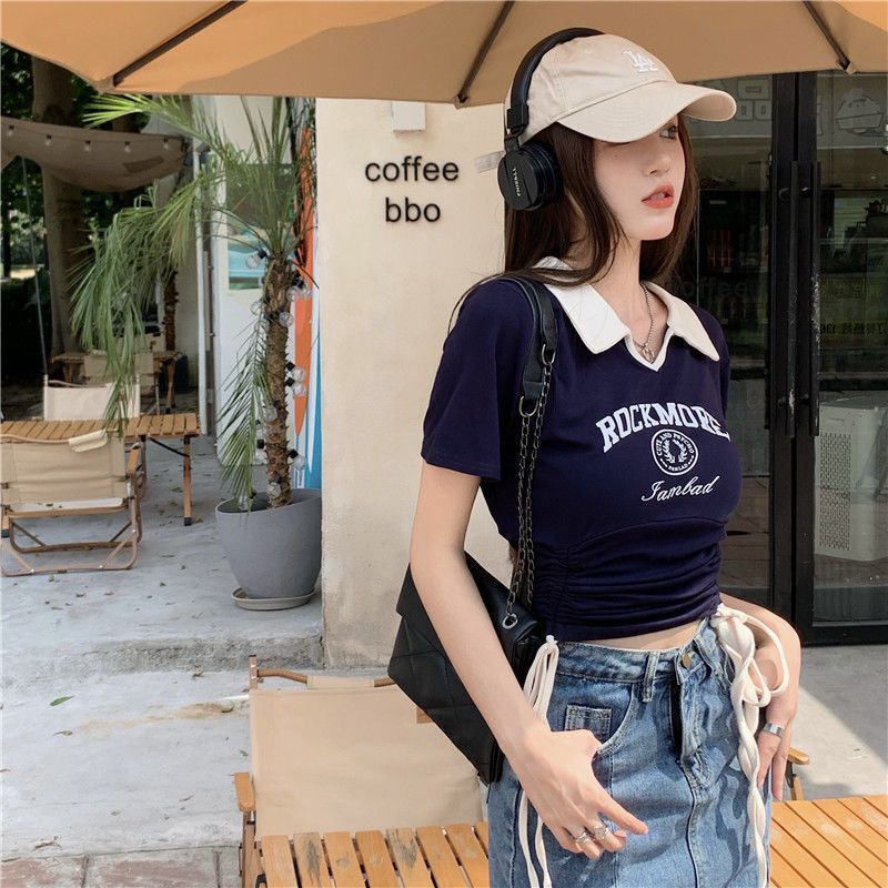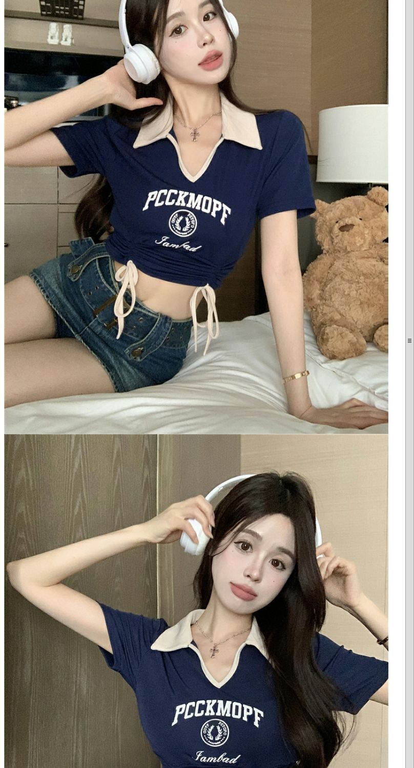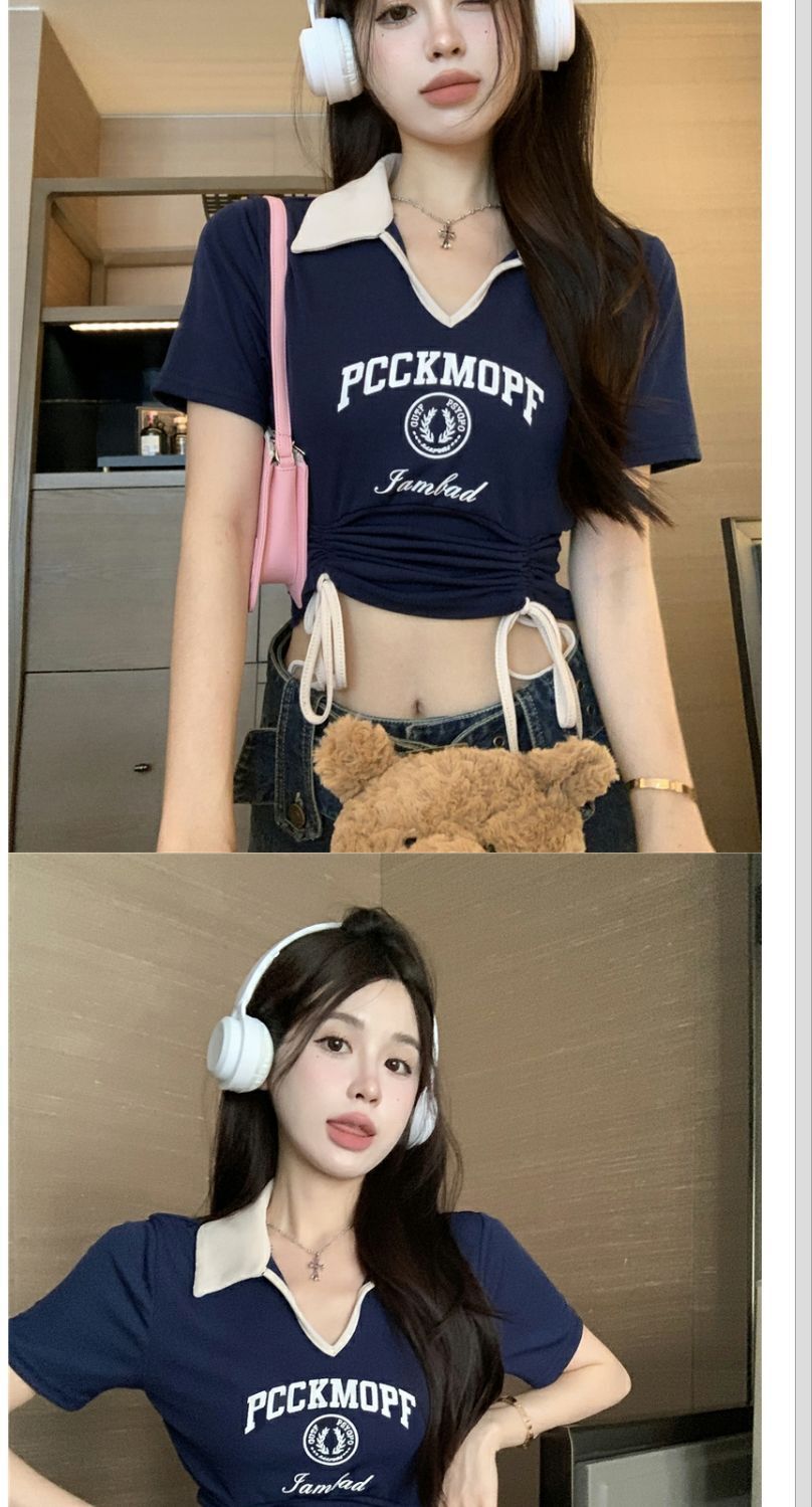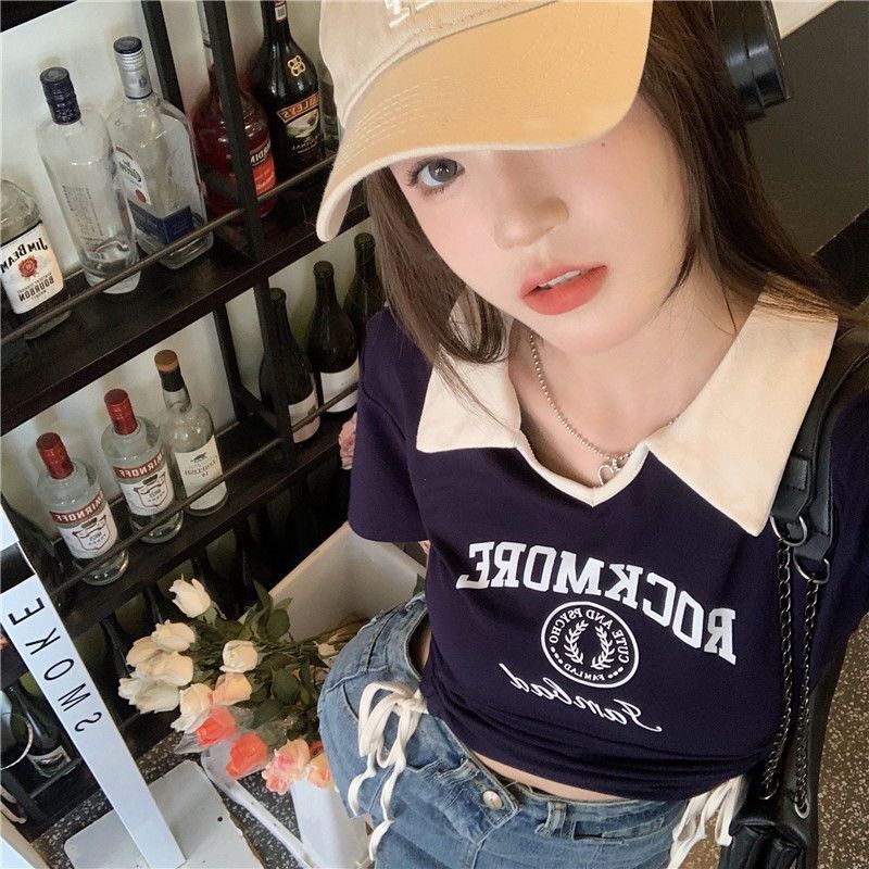 ![[Ribbon 250g] Women's Slim Fit T-Shirt, Niche Style, Short, Slim Fit, Color Block Polo Shirt](images/mrwg/mrwg202e_02.jpg)