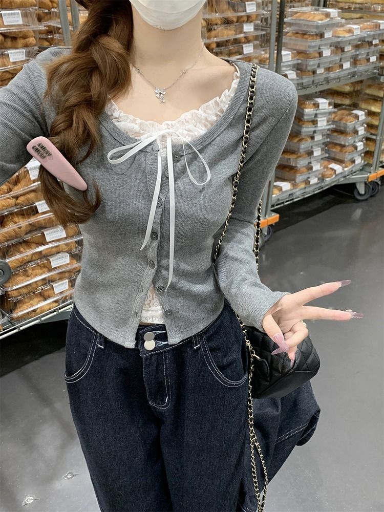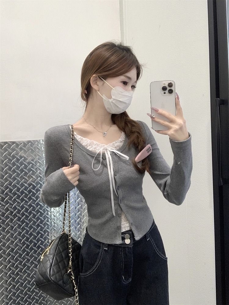 ![MR [Original Recipe] Pure and Delicate Lace Patchwork T-Shirt, Spring Slim Fit Faux Two-Piece Long-Sleeved Base Layer](images/mrwg/mrwg2056e_03.jpg)
