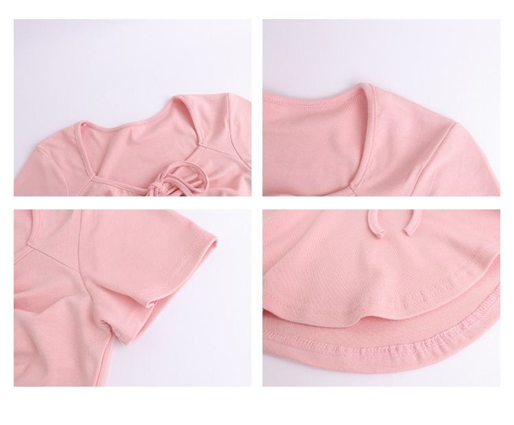 ![[In Stock] Sweet and Spicy Slim Fit Short-Sleeve T-Shirt for Women, Summer Style, Unique Design, Square Neck, Drawstring, Straight Shoulder, Short Fit](images/mrwg/mrwg222e_04.jpg)