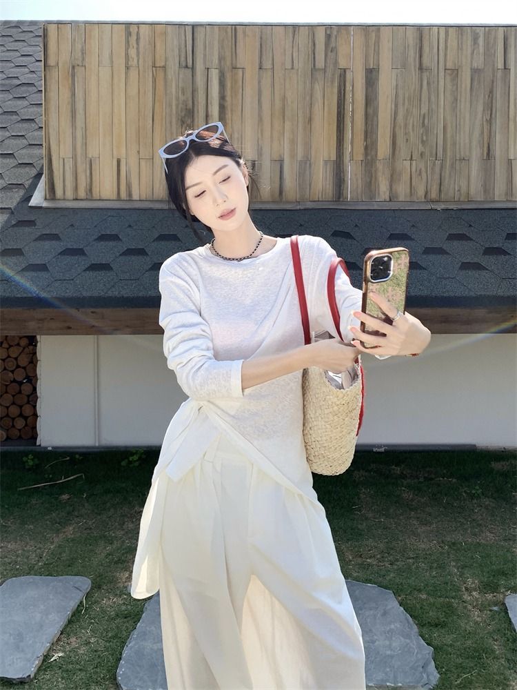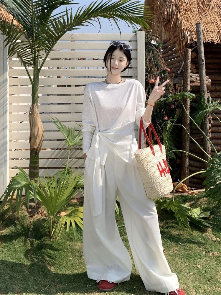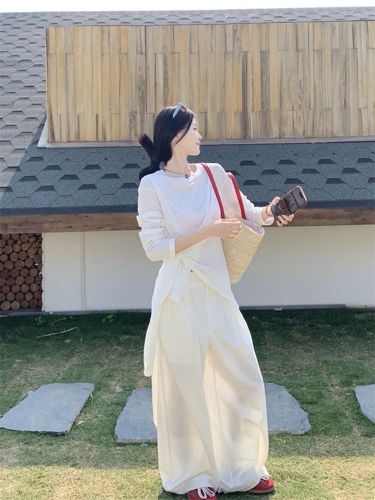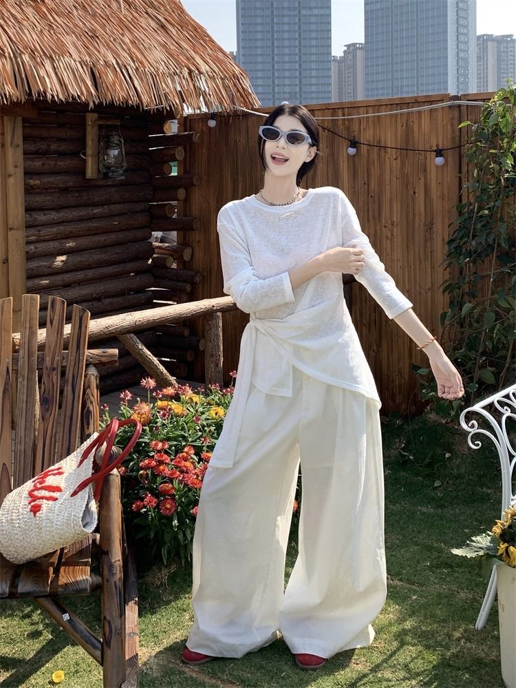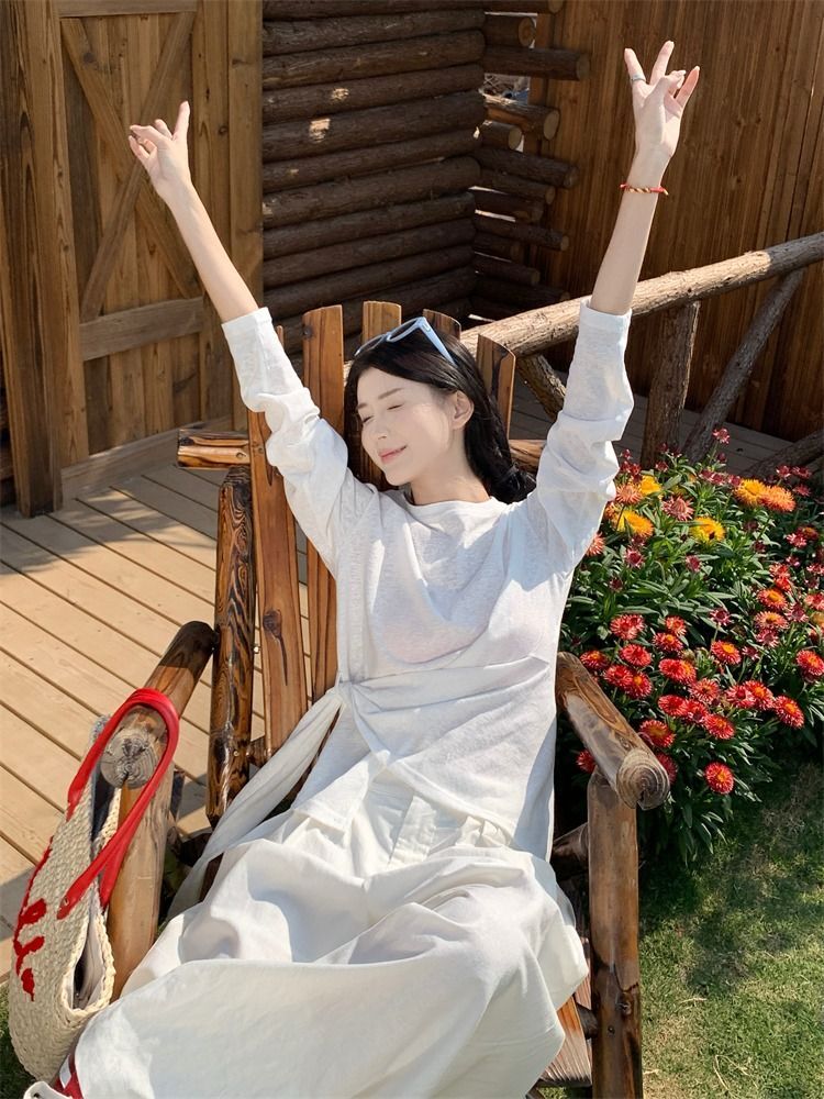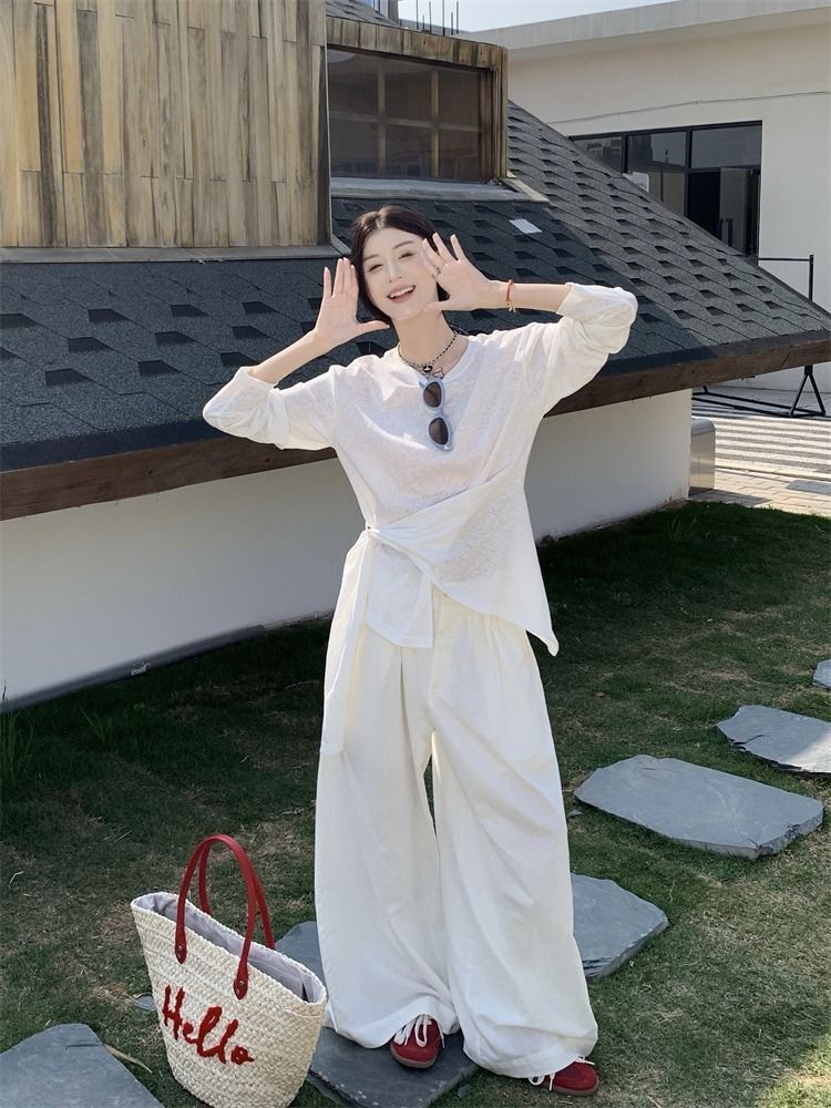 ![MR [High Quality] Relaxed, slightly sheer long-sleeved T-shirt for women, summer style, tie-waist, thin, loose fit, sun protection cover](images/mrwg/mrwg3017_02.jpg)