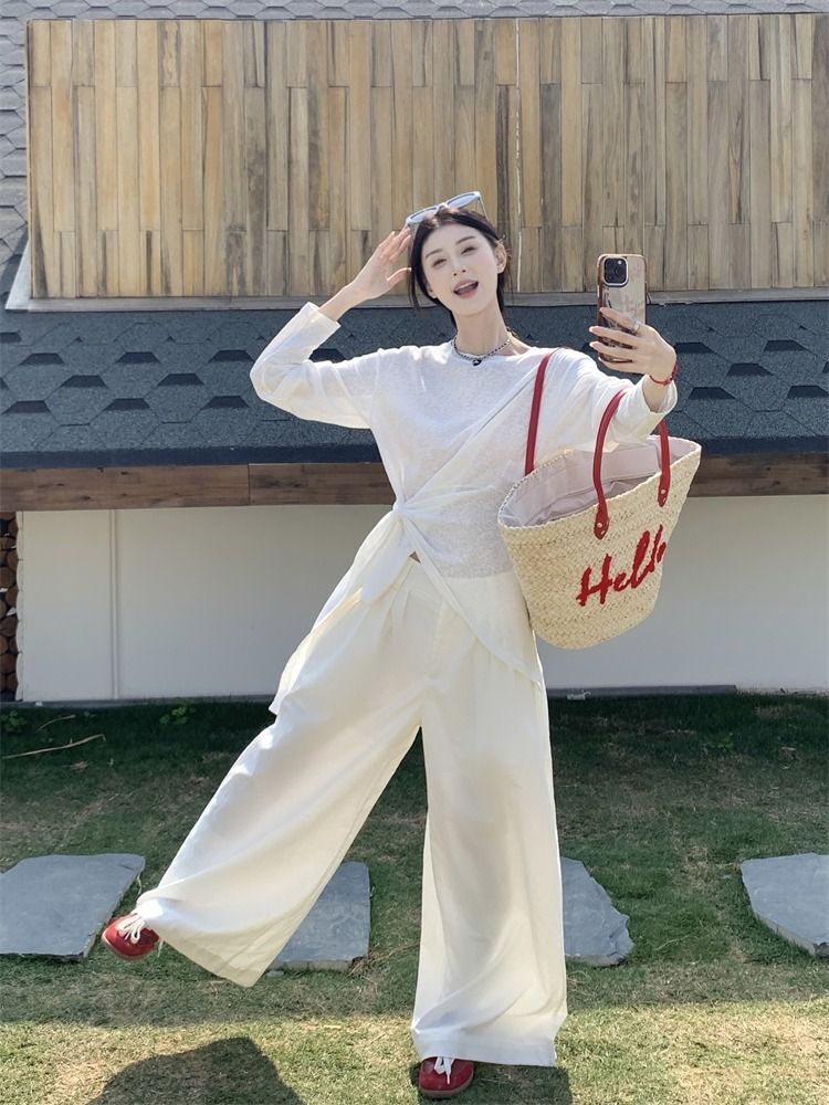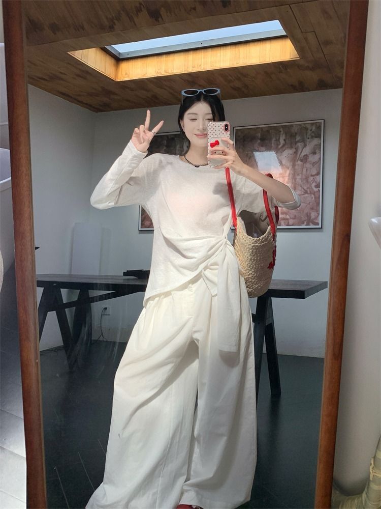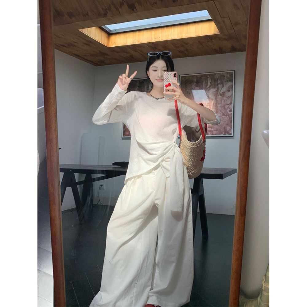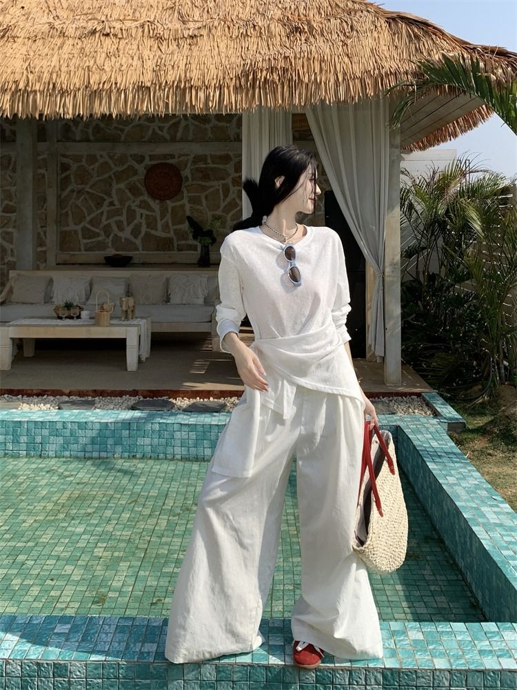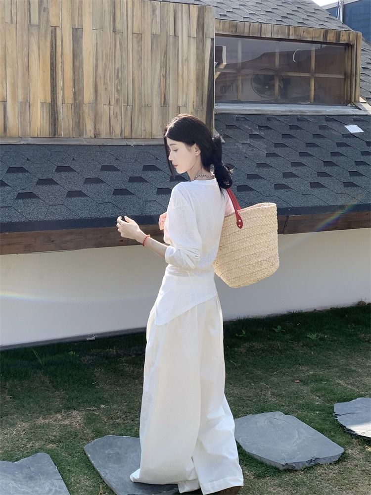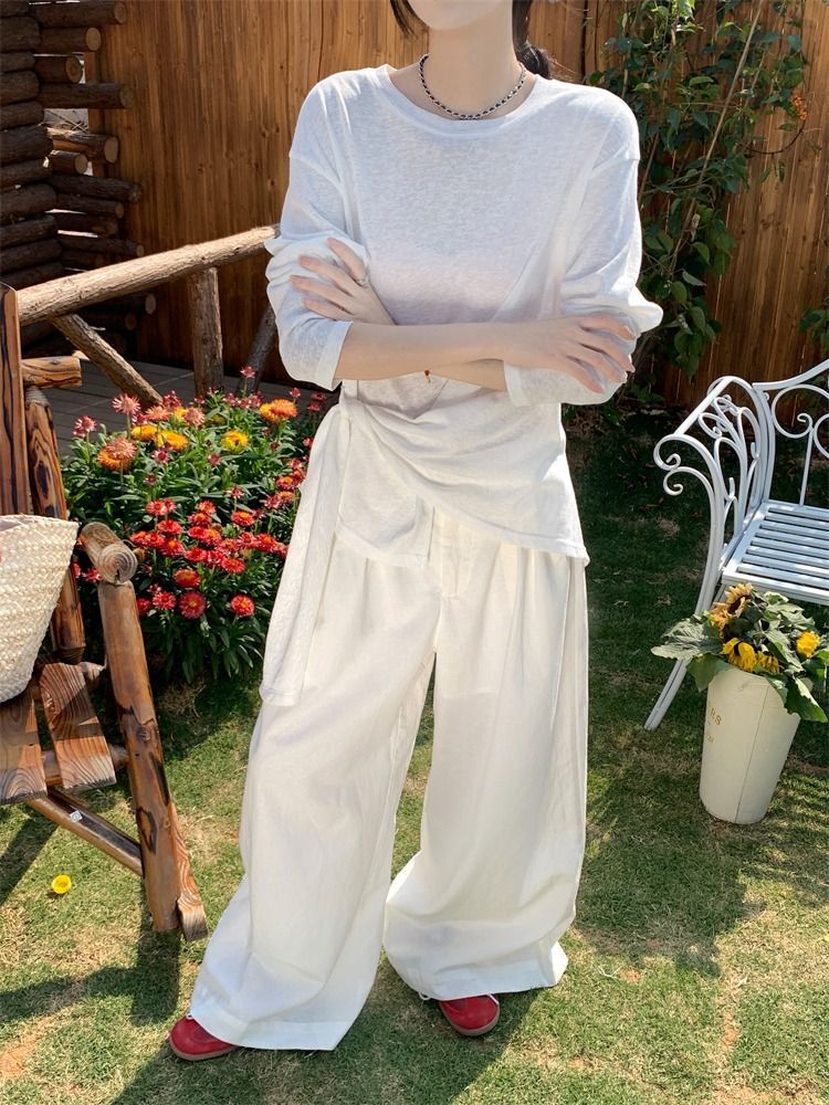 ![MR [High Quality] Relaxed, slightly sheer long-sleeved T-shirt for women, summer style, tie-waist, thin, loose fit, sun protection cover](images/mrwg/mrwg3017_02.jpg)