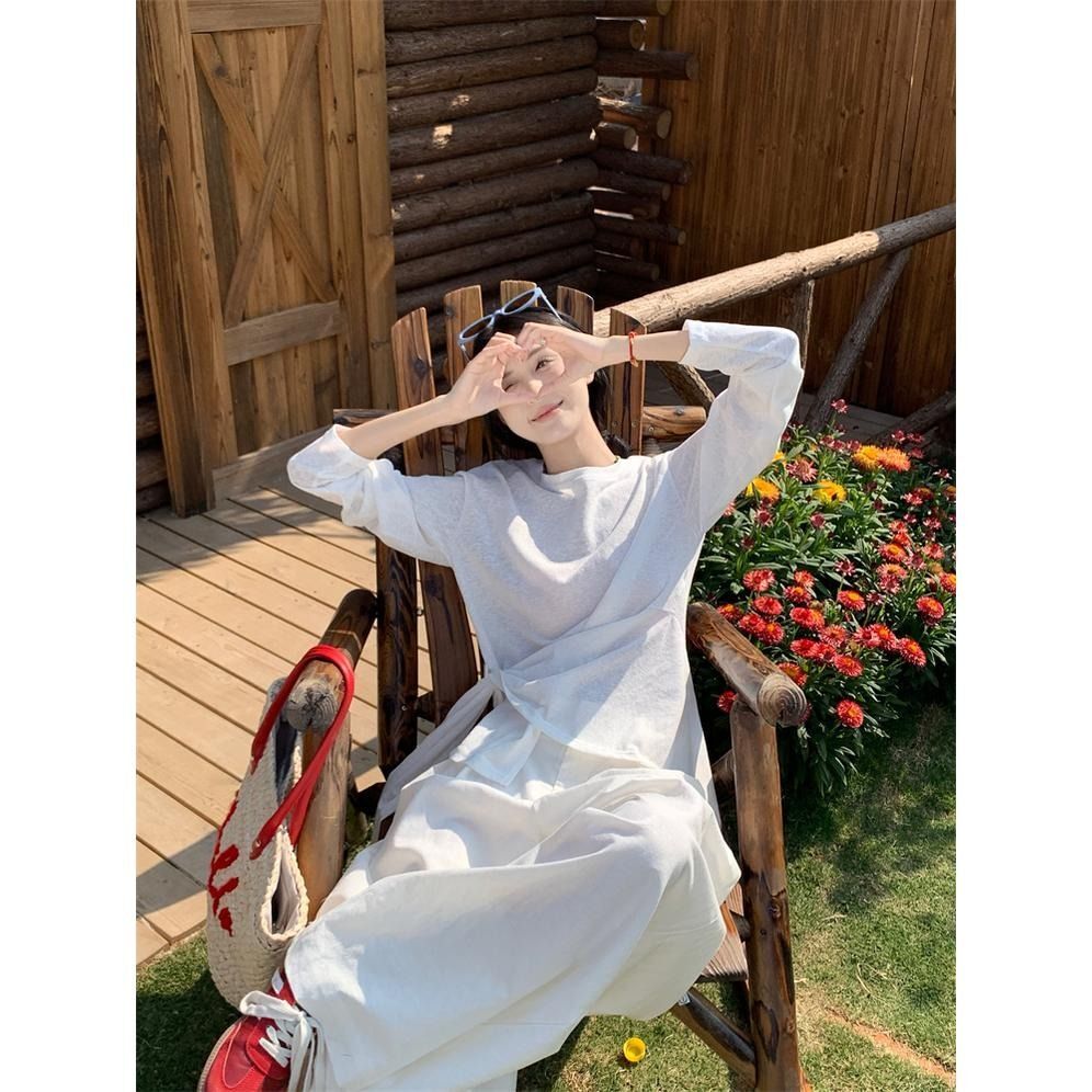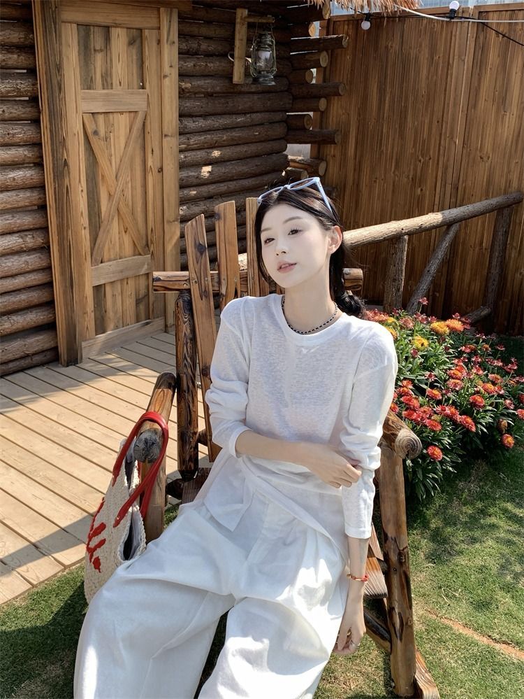 ![MR [High Quality] Relaxed, slightly sheer long-sleeved T-shirt for women, summer style, tie-waist, thin, loose fit, sun protection cover](images/mrwg/mrwg3017_03.jpg)