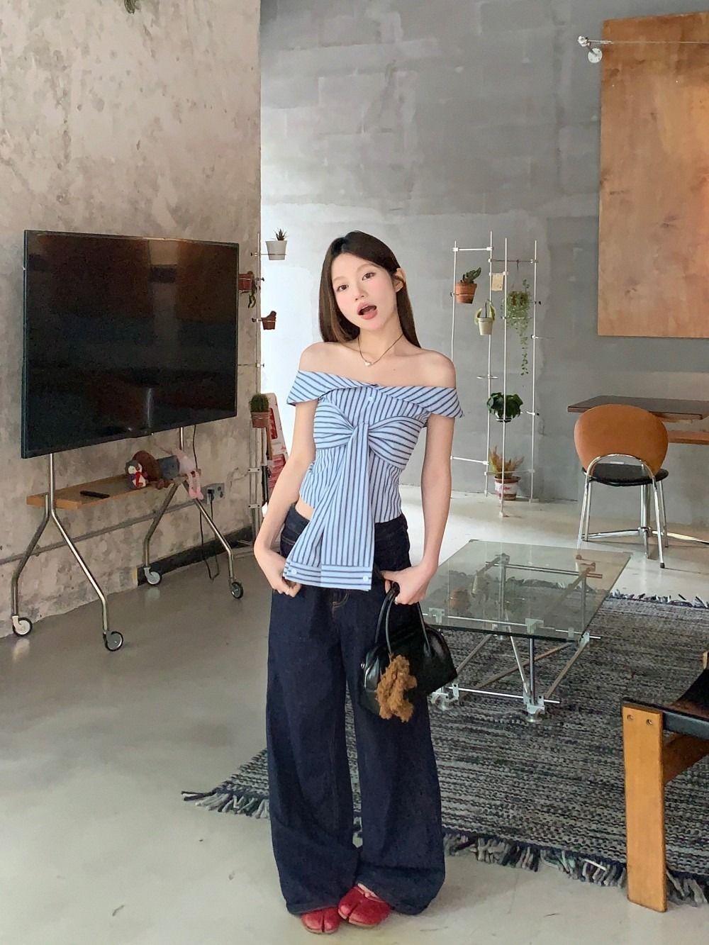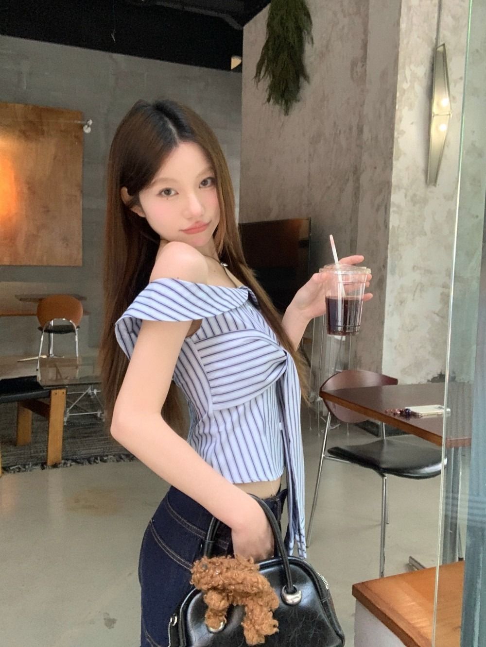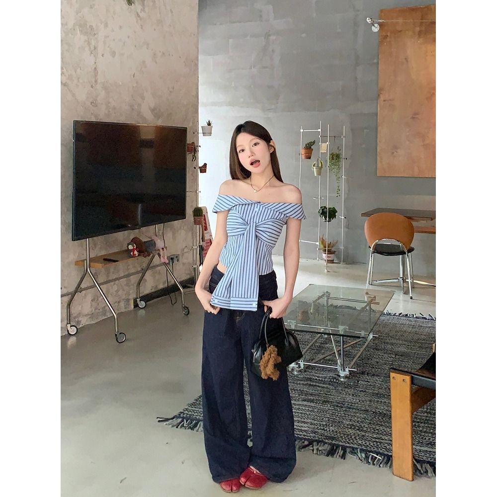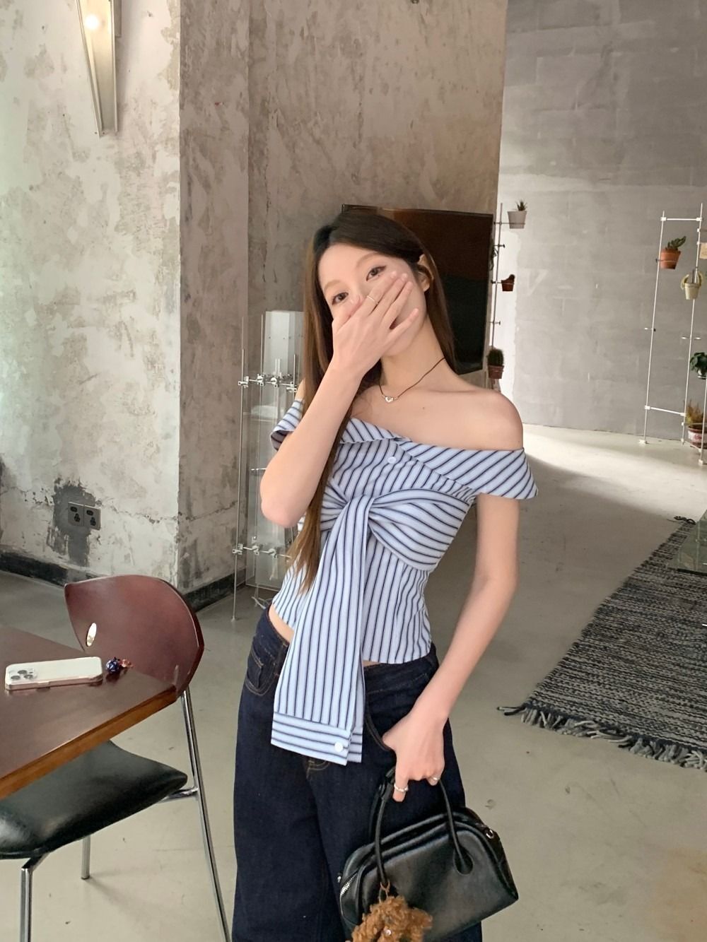 ![MR [Original Recipe] Sweet and Spicy Off-Shoulder Blue Striped Tie-Up Shirt, Summer Slim Fit, Versatile](images/mrwg/mrwg3020e_04.jpg)