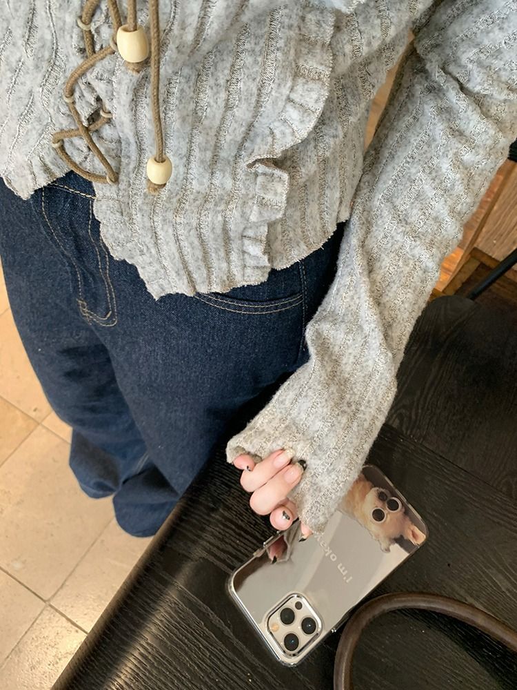 ![MR [Original Fabric Cashmere Ribbed] Sweet and Spicy Slim Fit Long Sleeve Early Autumn Tie-Waist Short V-Neck Long Sleeve Top](images/mrwg/mrwg368e_04.jpg)