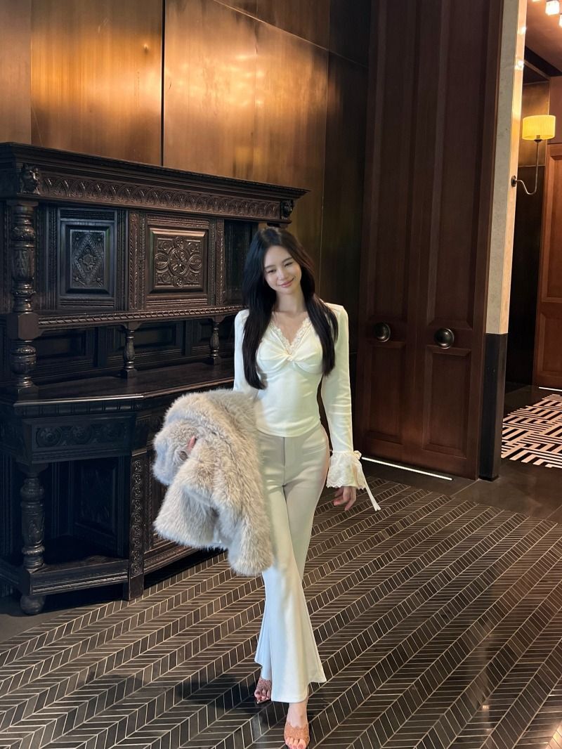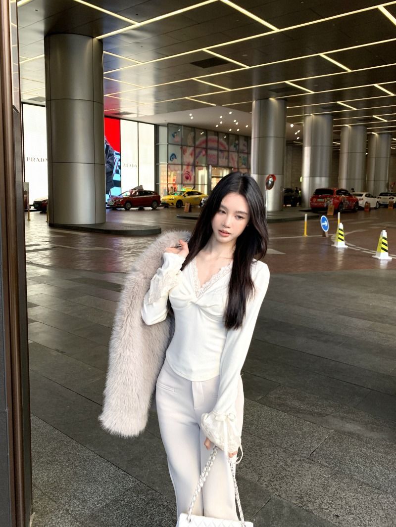 ![MR [Ribbon Velvet] Lace Trim Twisted V-Neck Knitted Sweater Women's Long Sleeve Base Layer Tight-fitting Brushed Top](images/mrwg/mrwg507e_04.jpg)