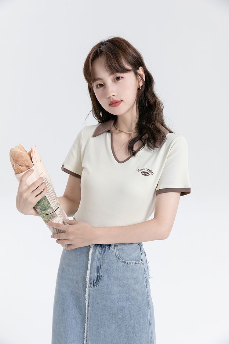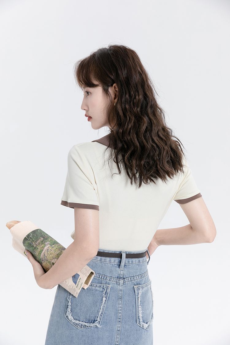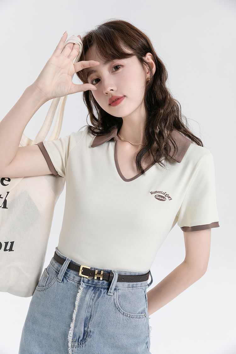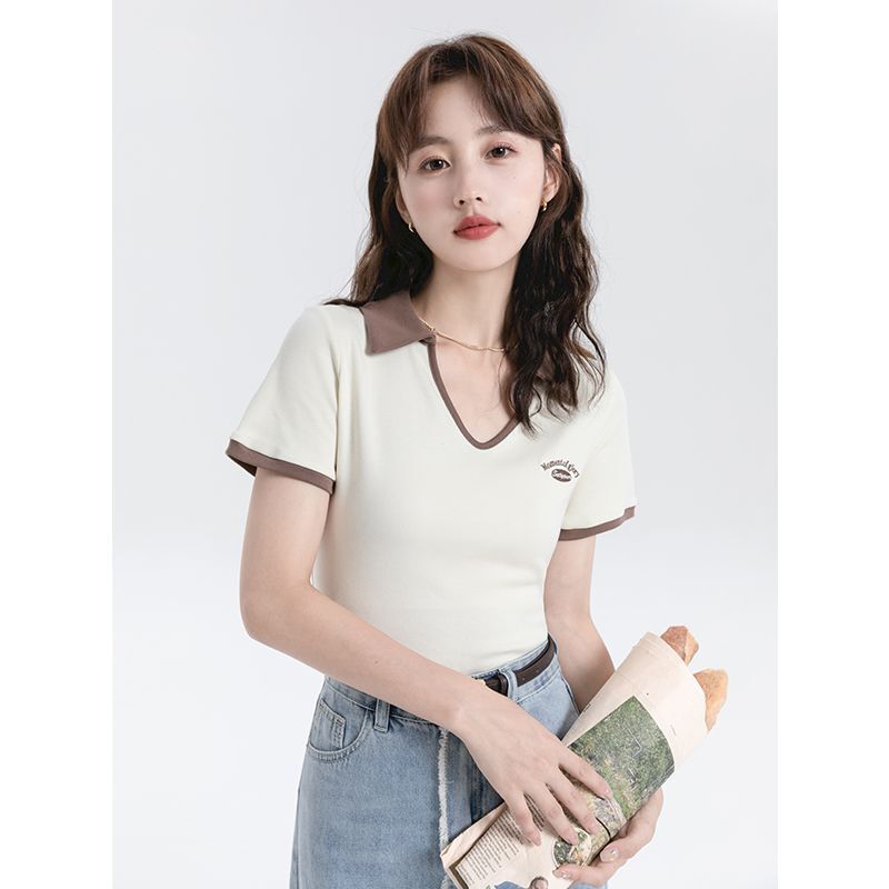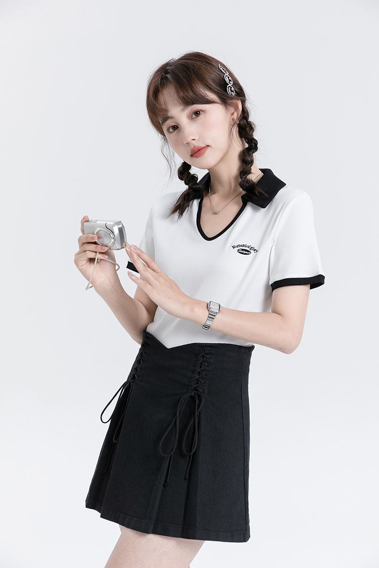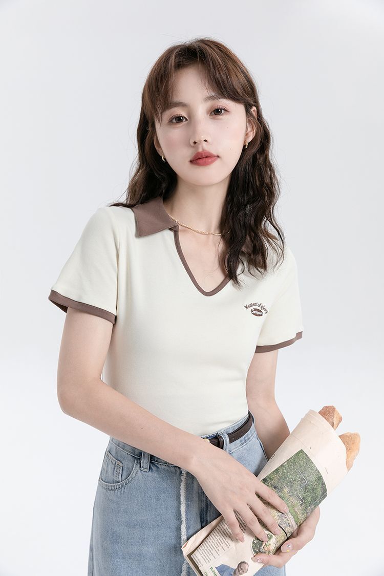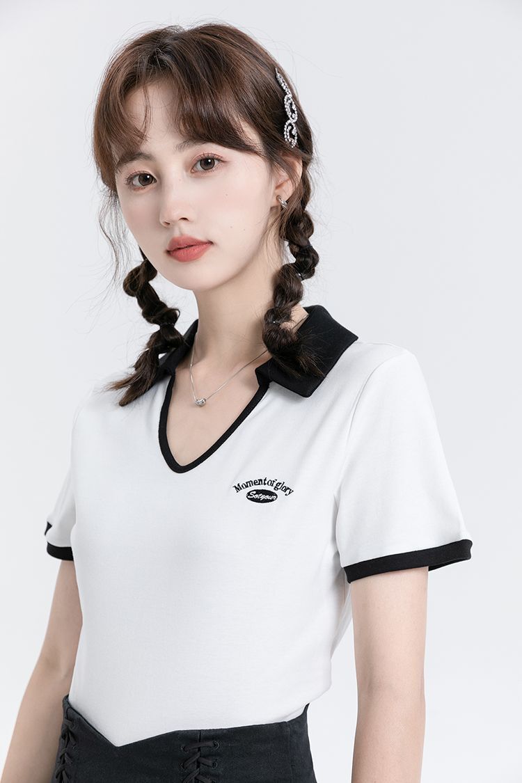 ![[In Stock] Women's Short-Sleeve T-Shirt with Polo Collar, Slimming Summer New Style, Unique and Sexy Design](images/mrwg/mrwg643e_03.jpg)