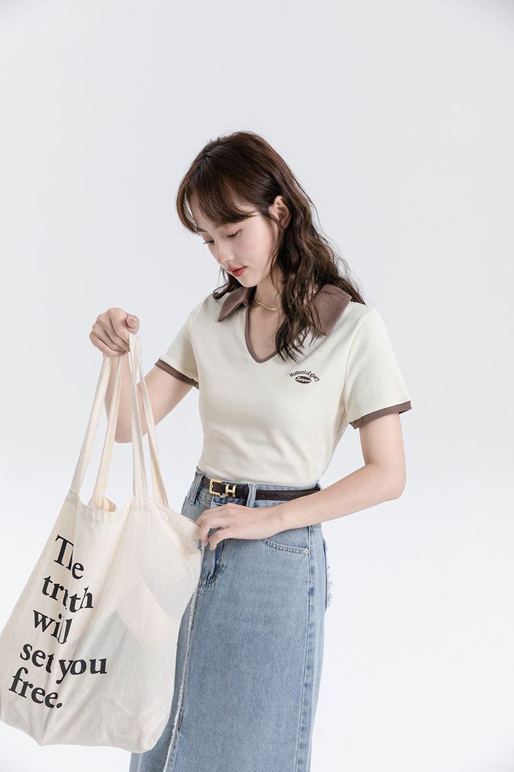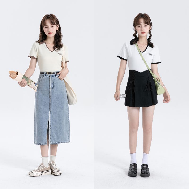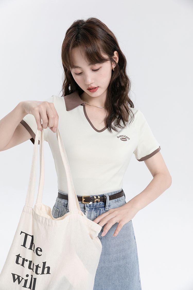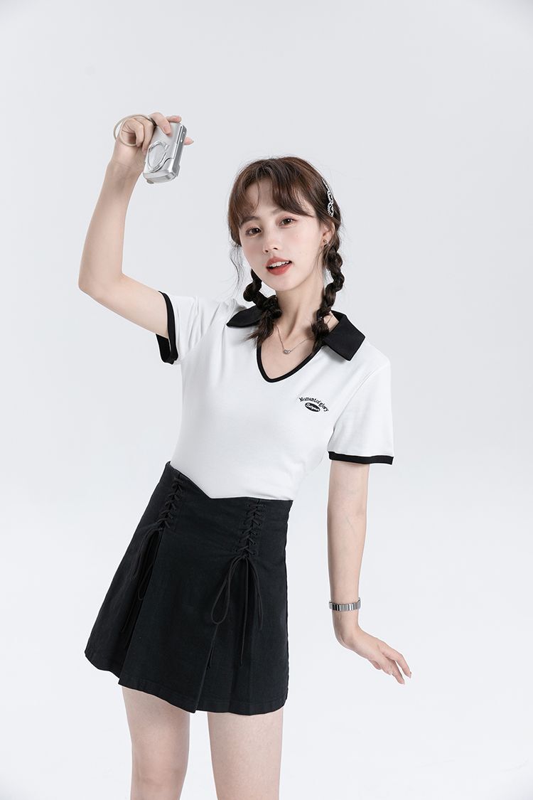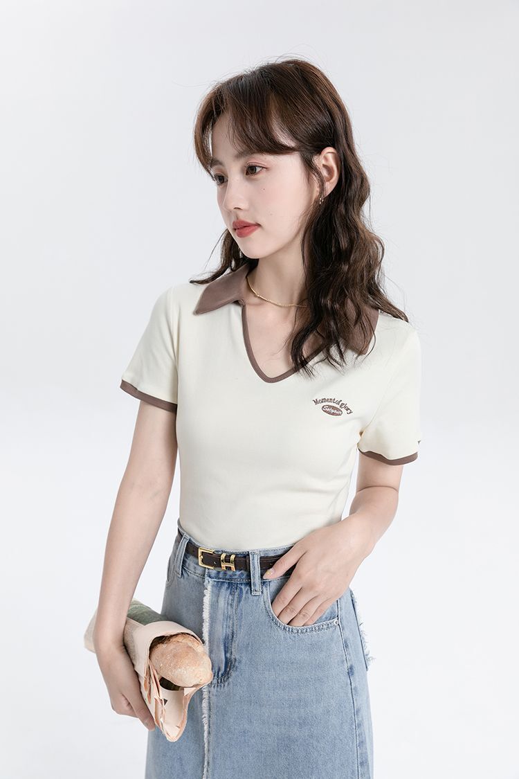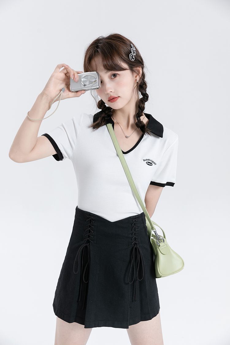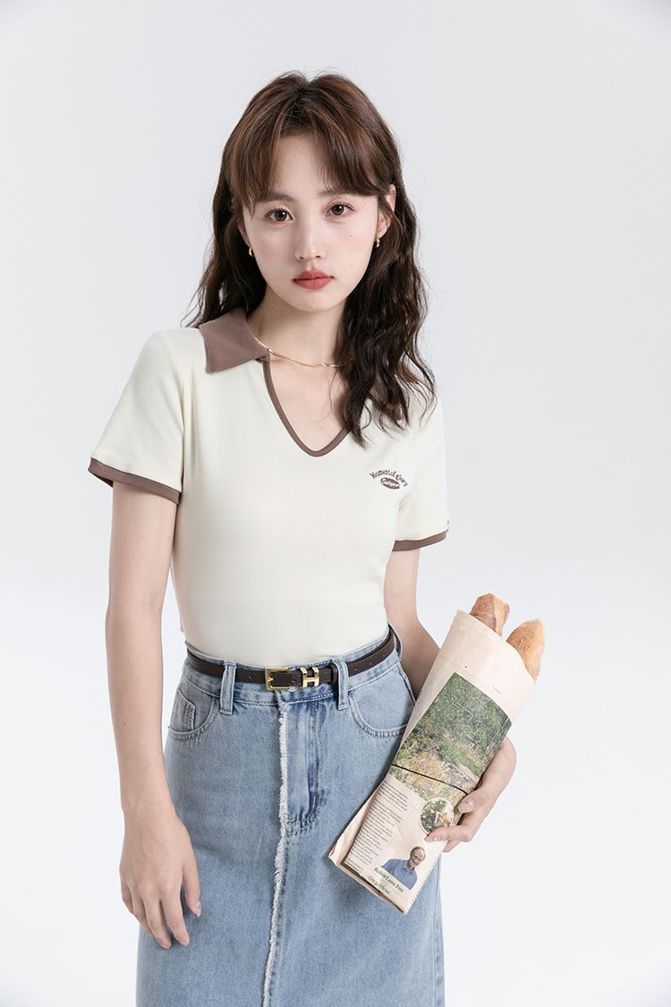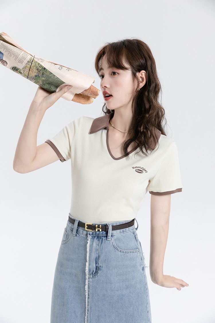 ![[In Stock] Women's Short-Sleeve T-Shirt with Polo Collar, Slimming Summer New Style, Unique and Sexy Design](images/mrwg/mrwg643e_03.jpg)
