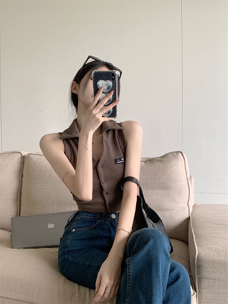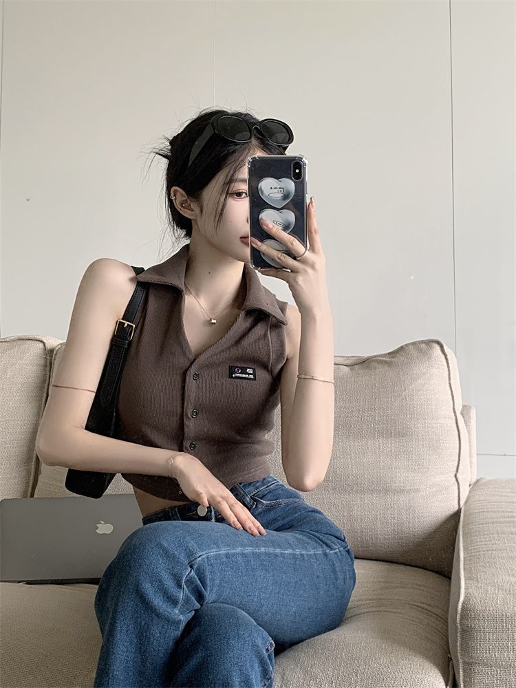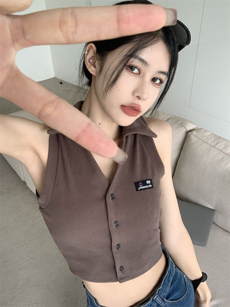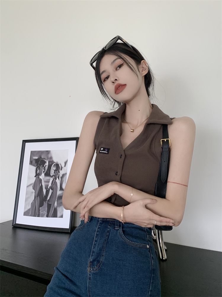 ![[Original Fabric] POLO Collar Tank Top for Women, Summer Hot Style, Unique Short Outerwear, Sleeveless](images/mrwg/mrwg652e_02.jpg)