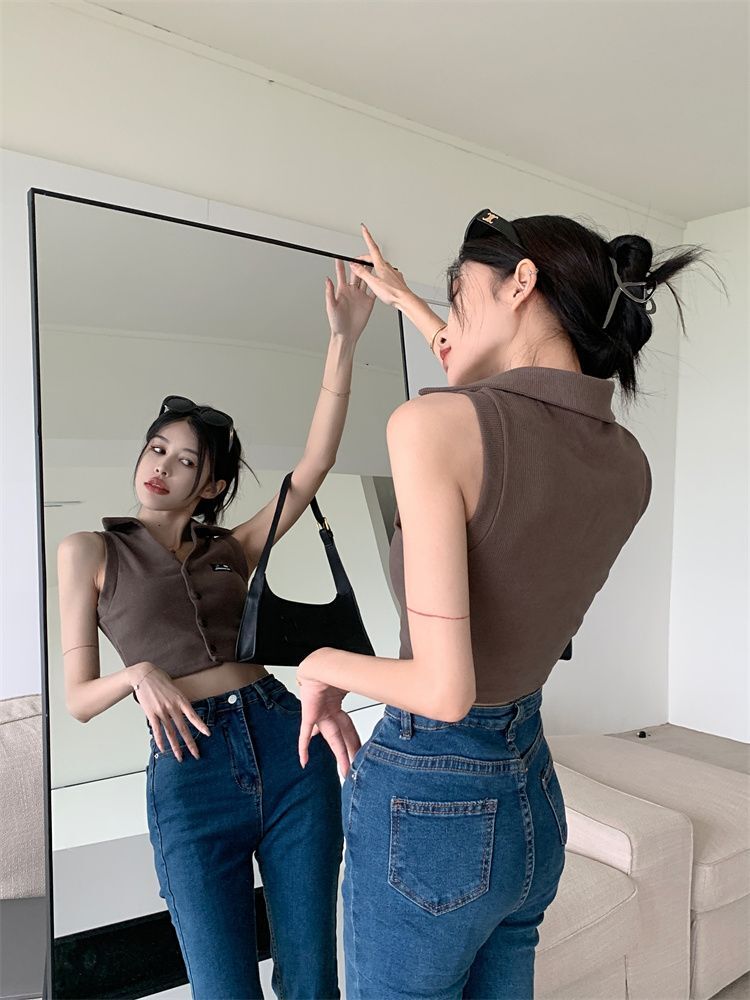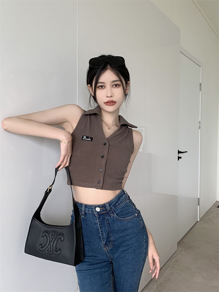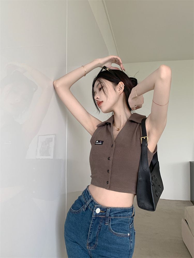 ![[Original Fabric] POLO Collar Tank Top for Women, Summer Hot Style, Unique Short Outerwear, Sleeveless](images/mrwg/mrwg652e_04.jpg)