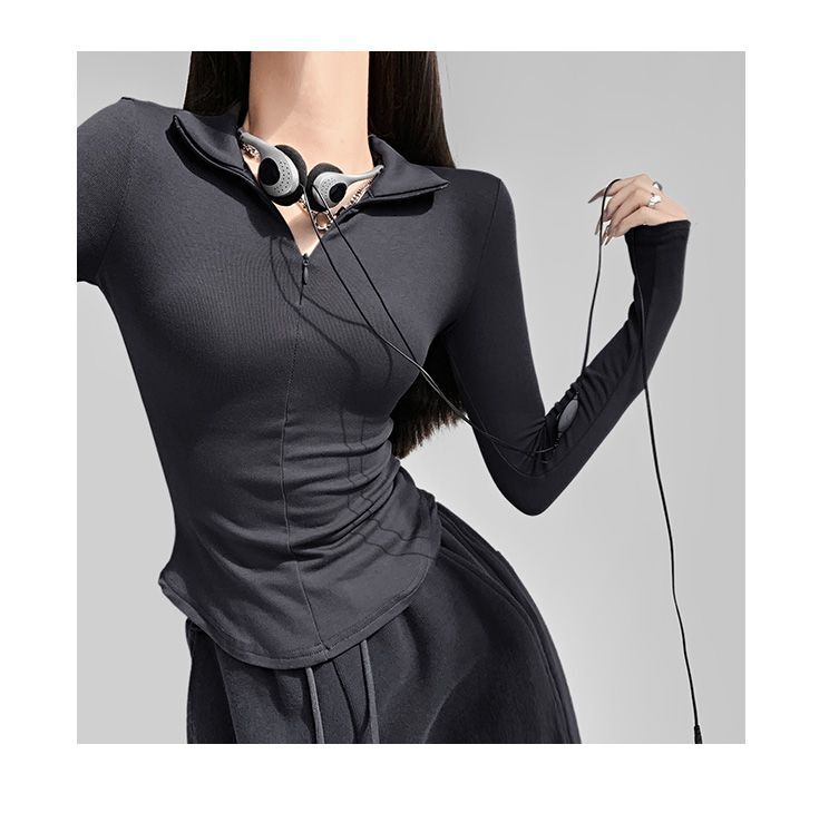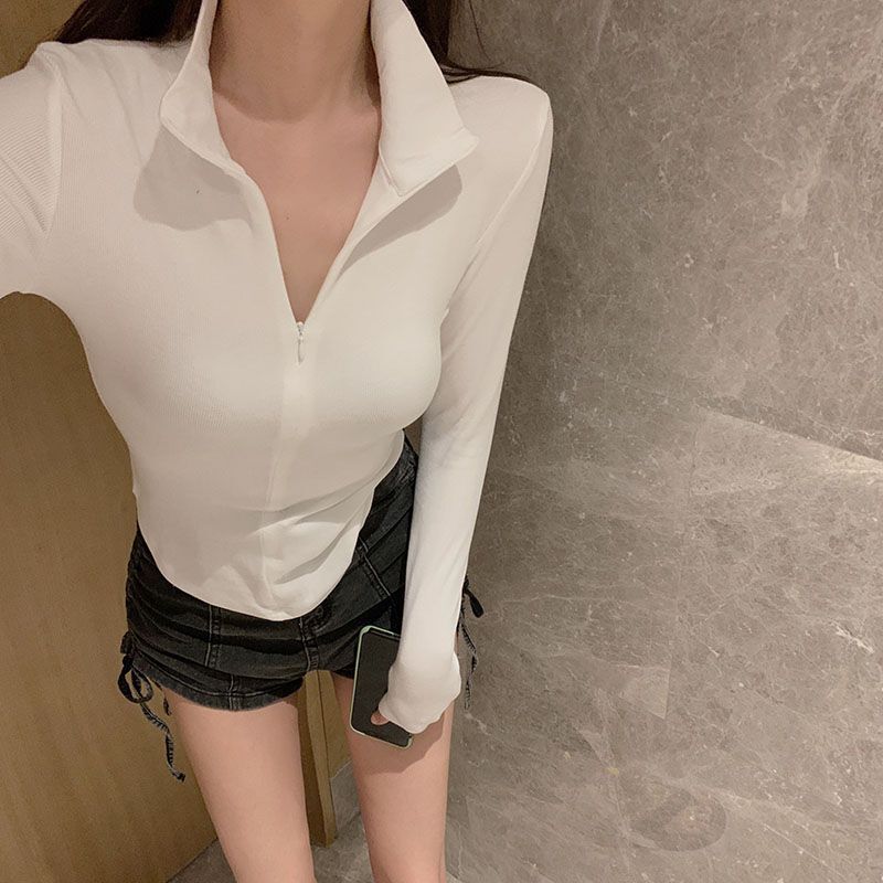 ![[In Stock] European and American Style Elastic Tight-Fit Long-Sleeve T-Shirt with Lapel Collar, Sexy Style, Slim Fit, Inner Wear, Base Layer Top, Trendy](images/mrwg/mrwg691e_01.jpg)