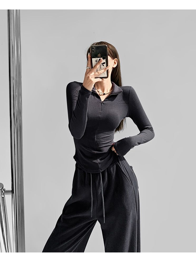![[In Stock] European and American Style Elastic Tight-Fit Long-Sleeve T-Shirt with Lapel Collar, Sexy Style, Slim Fit, Inner Wear, Base Layer Top, Trendy](images/mrwg/mrwg691e_04.jpg)