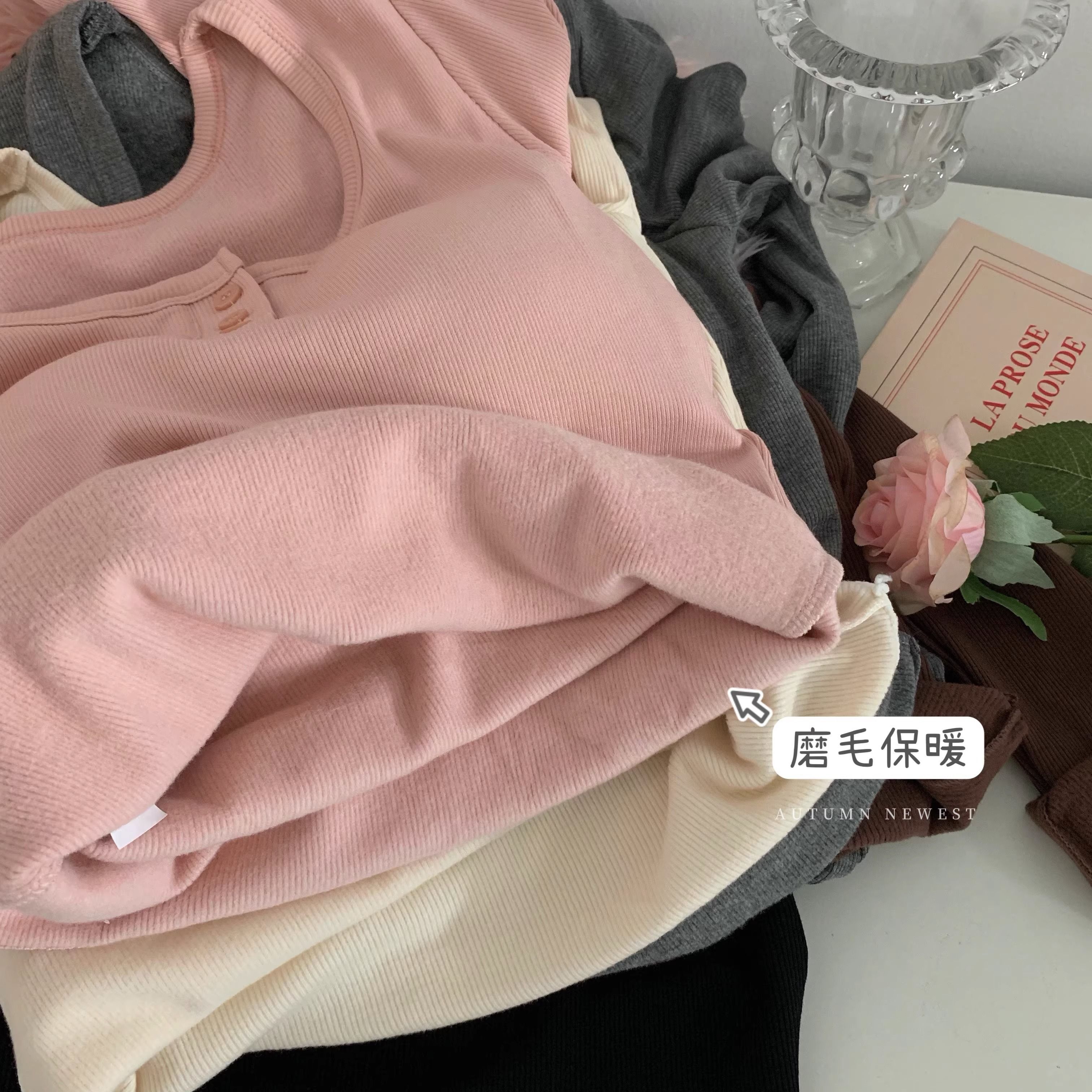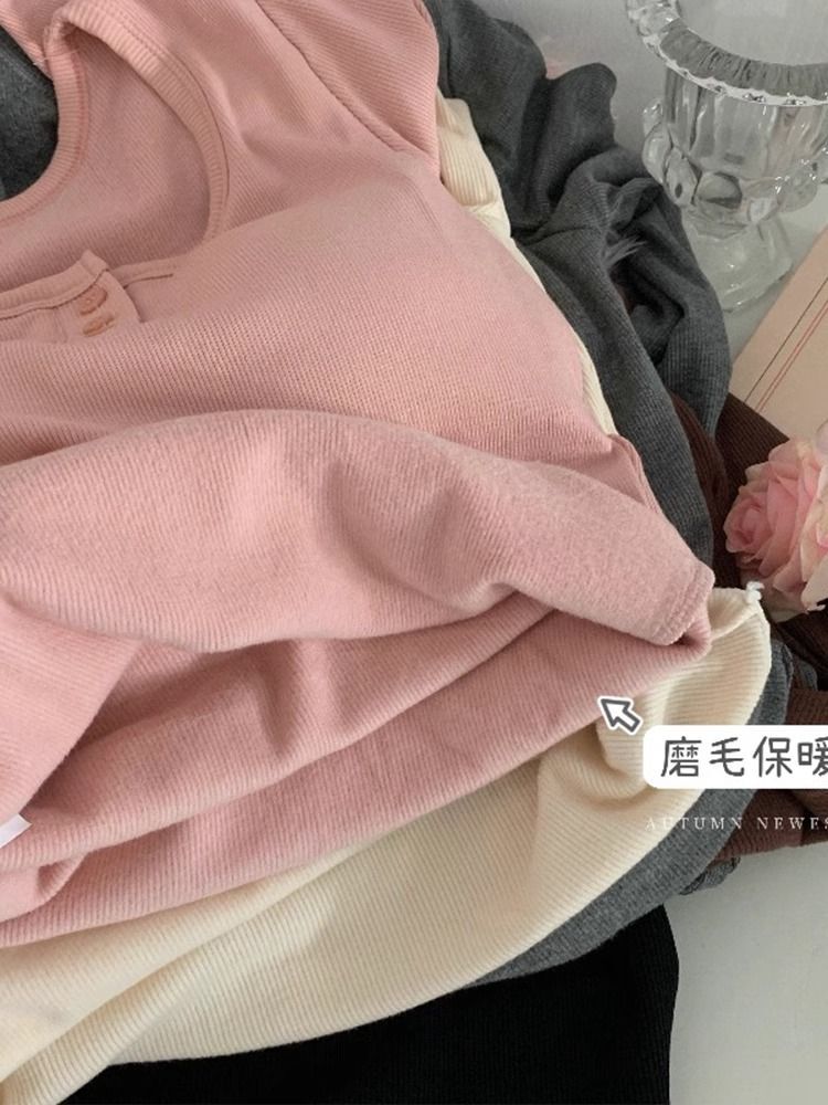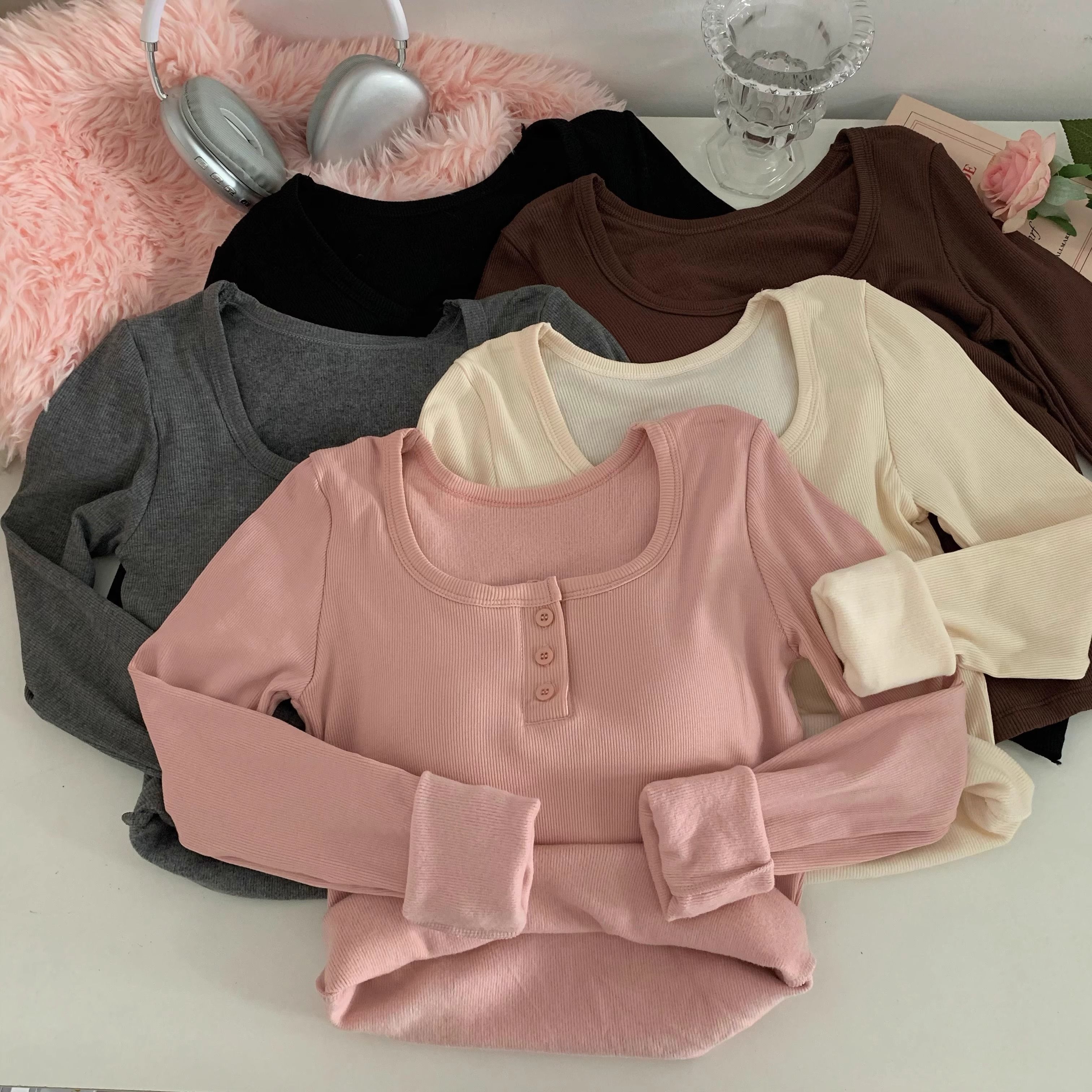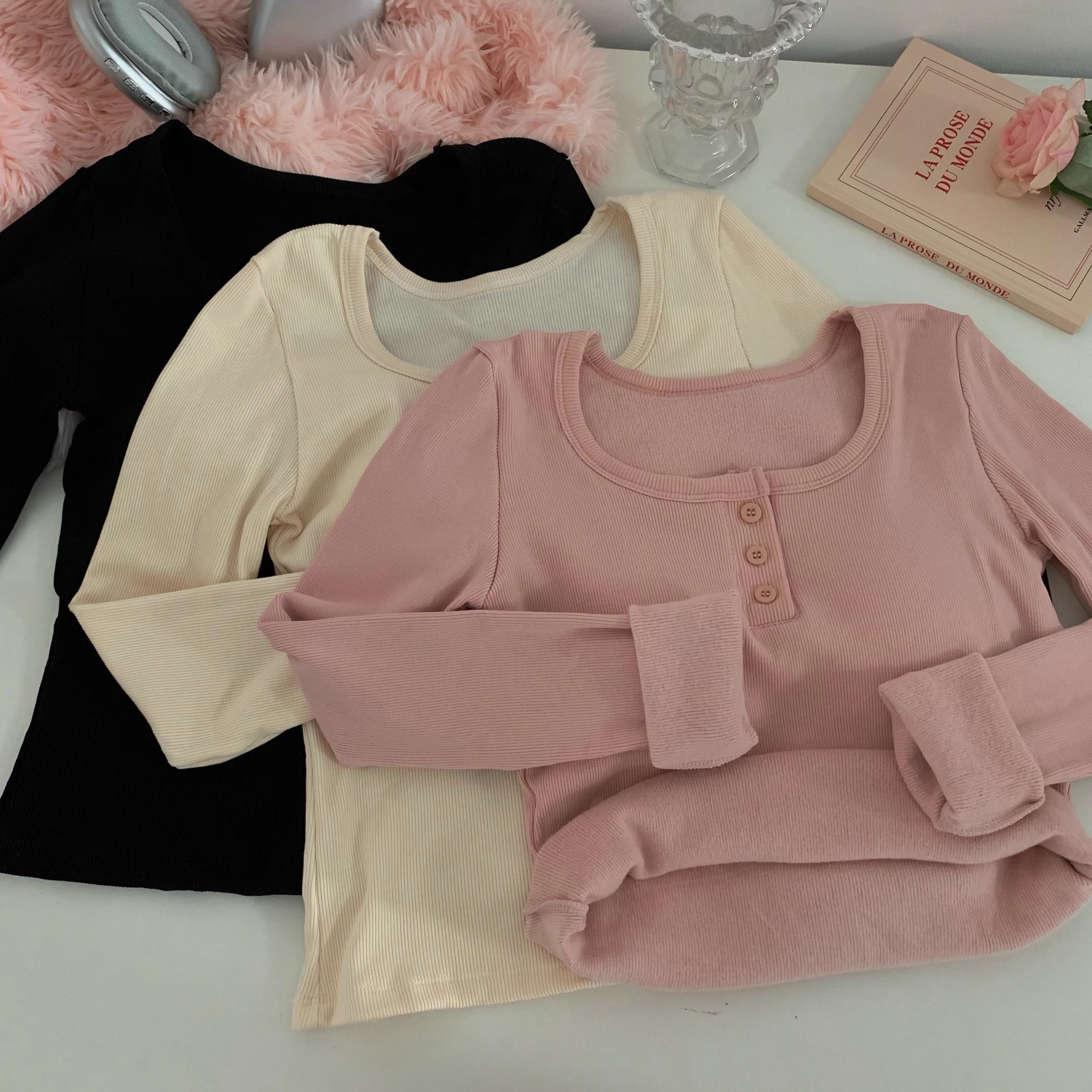 ![[With Chest Pads] Square Neck Fleece-Lined T-Shirt for Women, Autumn/Winter Slim Fit Warm Short-Sleeve Inner Layer Base Shirt](images/mrwg/mrwg729e_01.jpg)