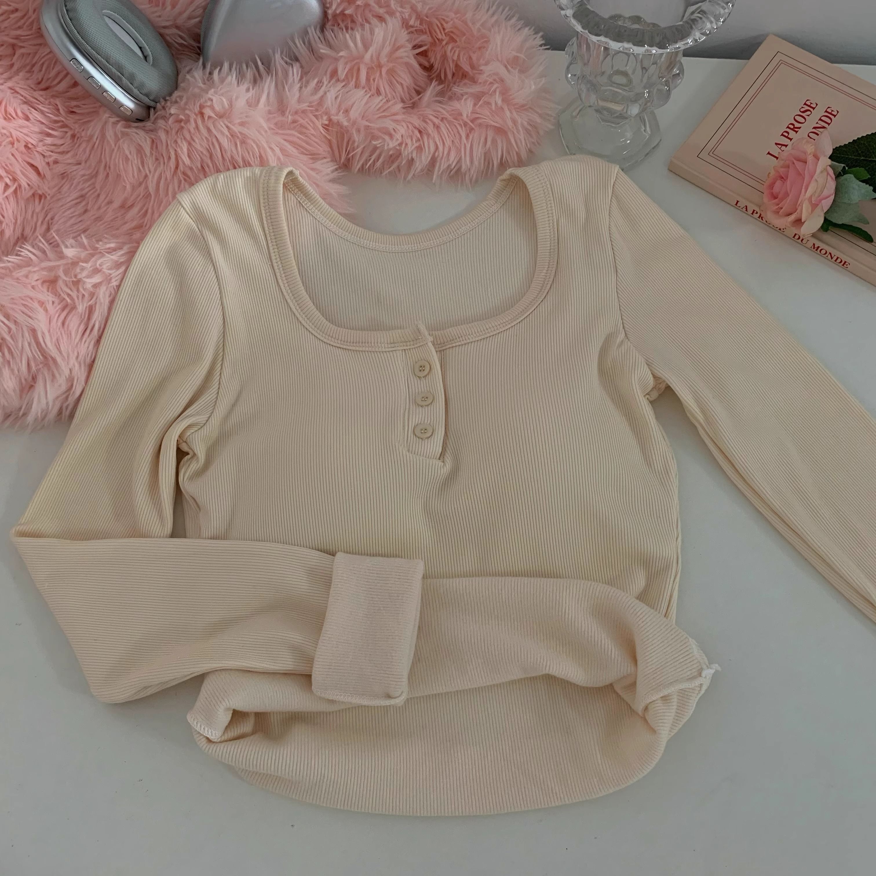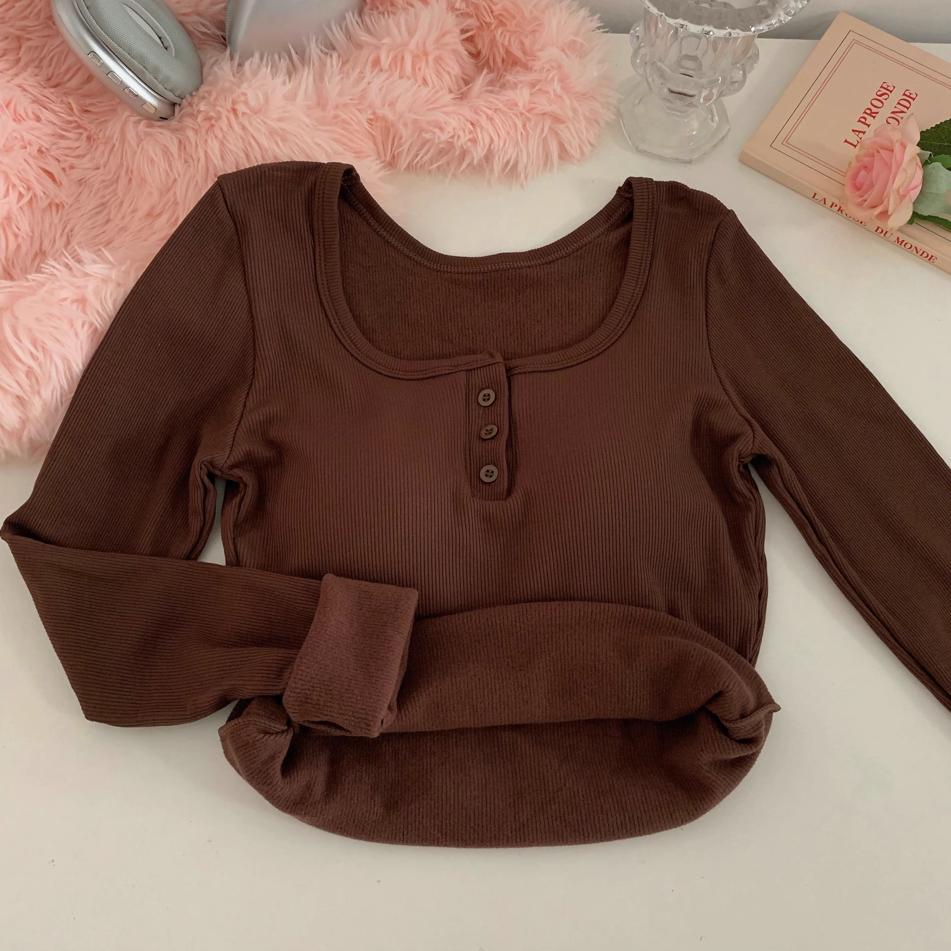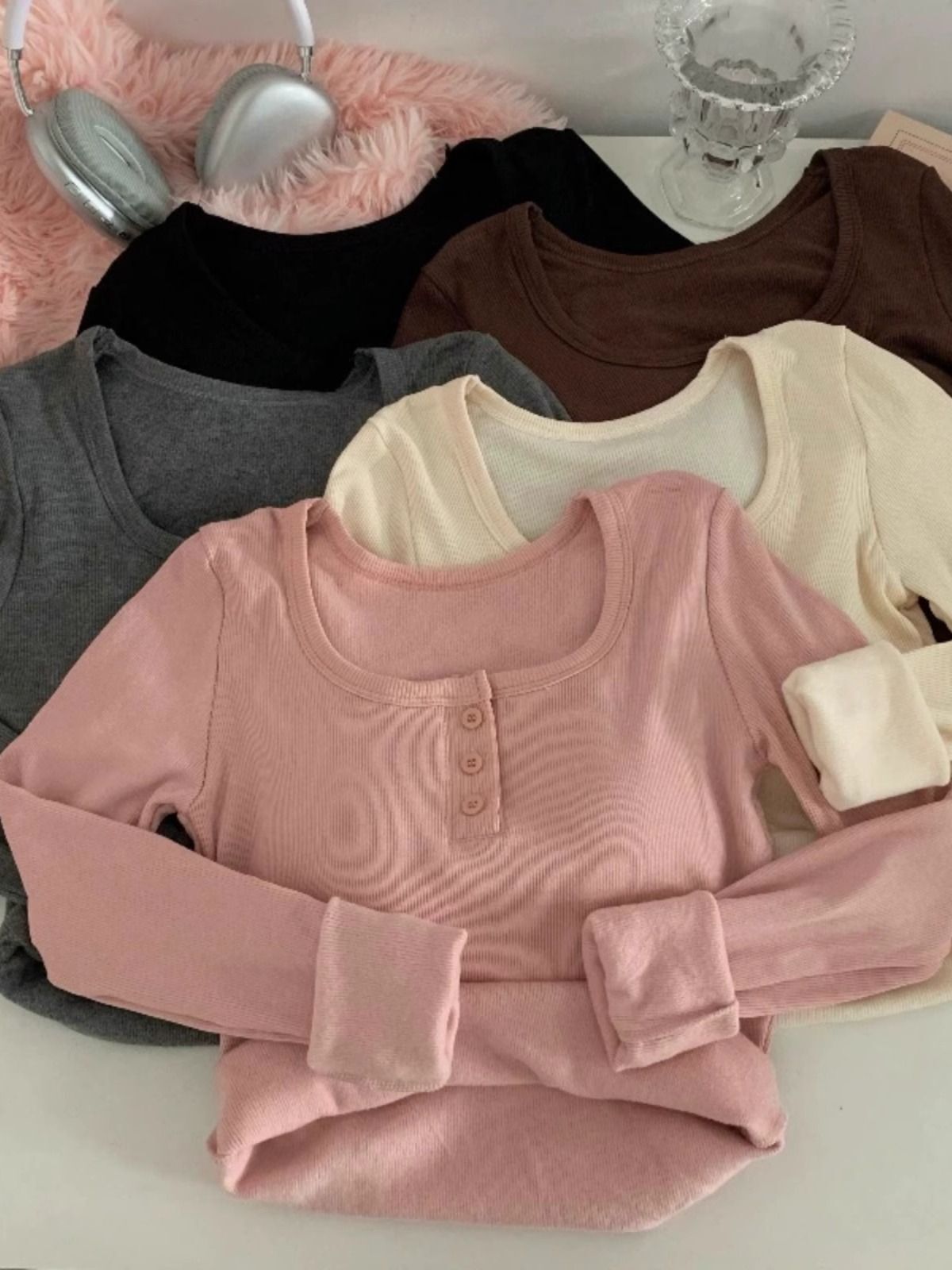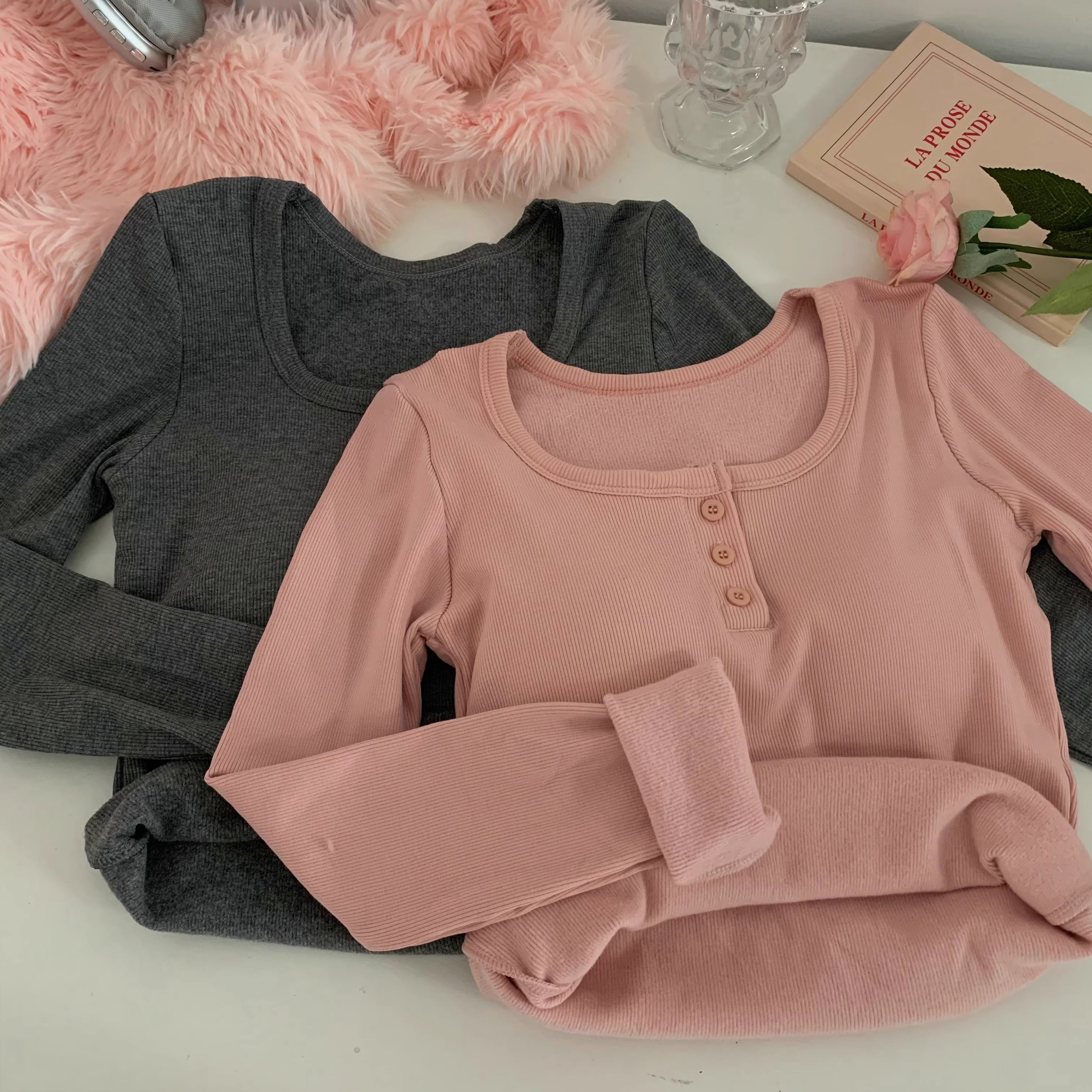 ![[With Chest Pads] Square Neck Fleece-Lined T-Shirt for Women, Autumn/Winter Slim Fit Warm Short-Sleeve Inner Layer Base Shirt](images/mrwg/mrwg729e_01.jpg)